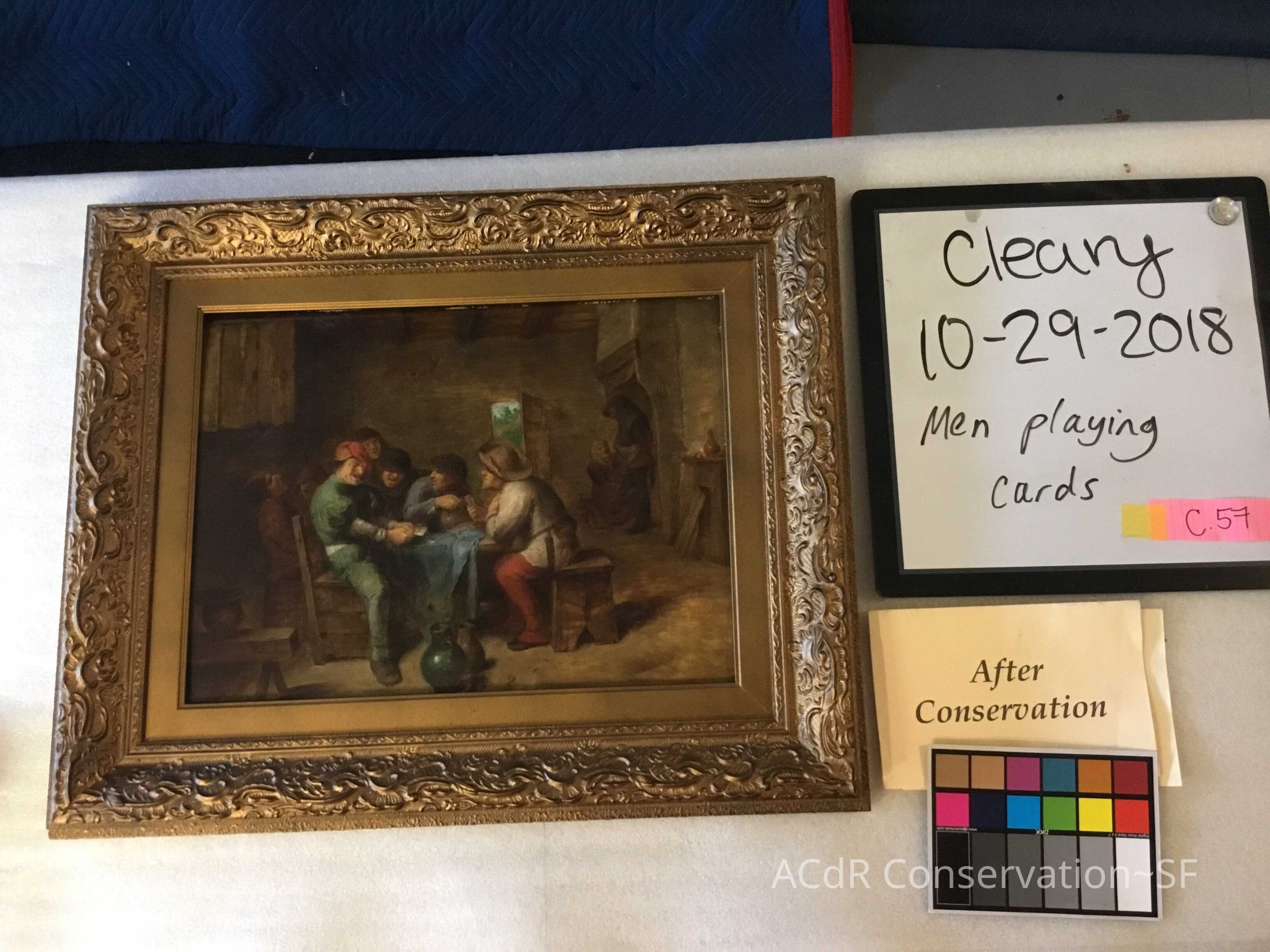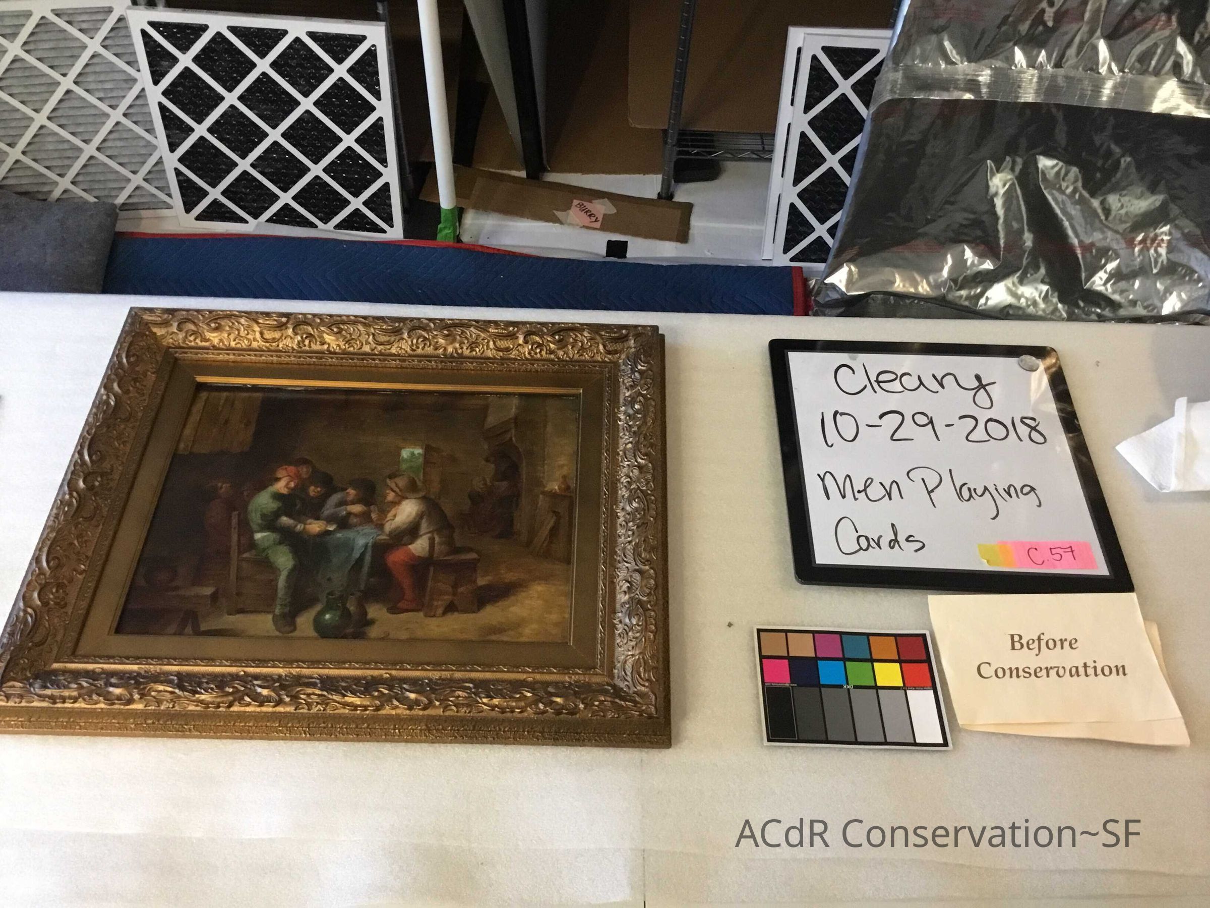Project Gallery Go back Prev Next Men playing cards PaintingEntry/Object ID#57ConservationConservation PurposeDisaster RecoveryTreatmentAcute TreatmentHepa-VacuumDate(s)Oct 29, 2018 - Oct 29, 2018