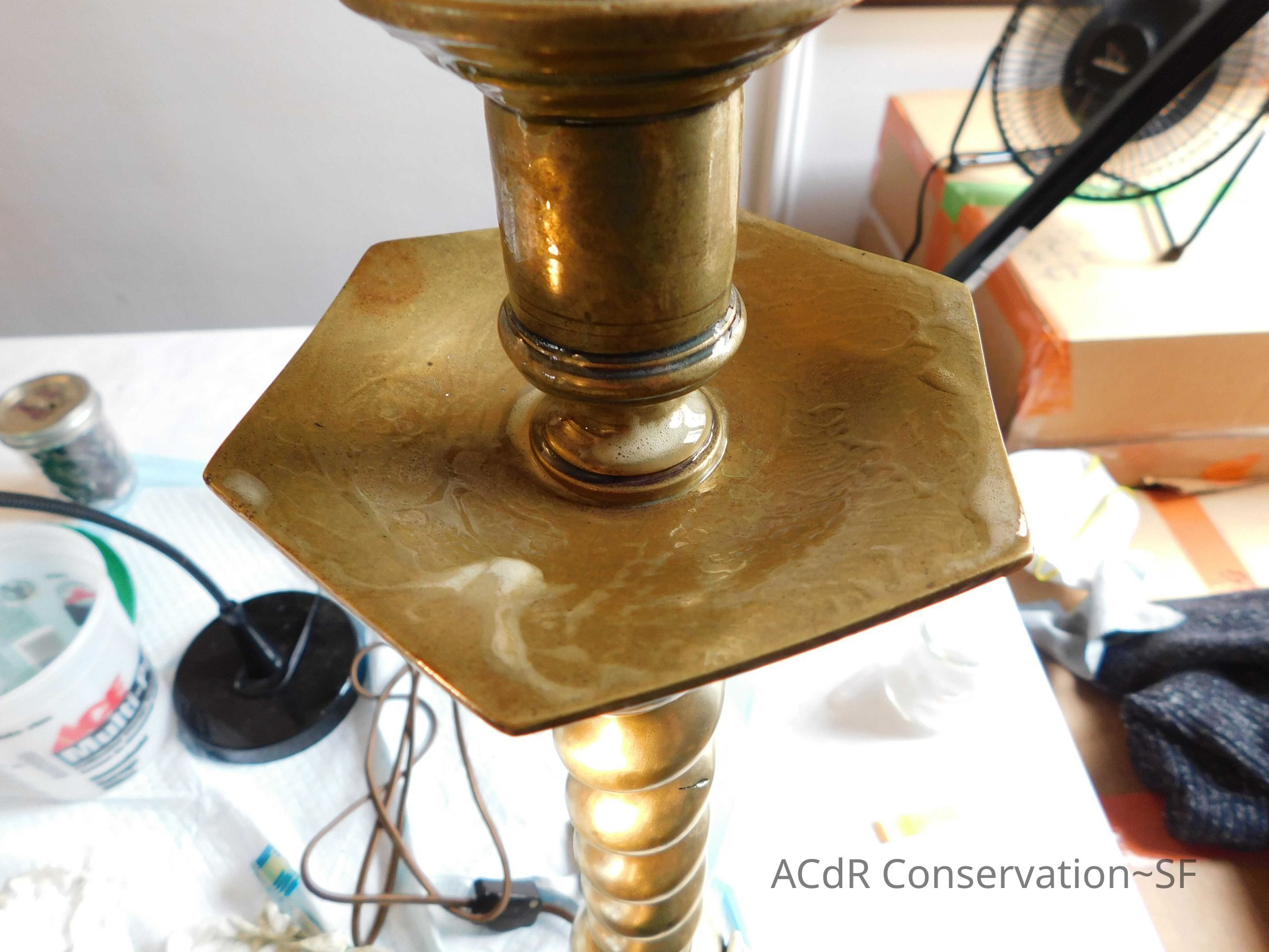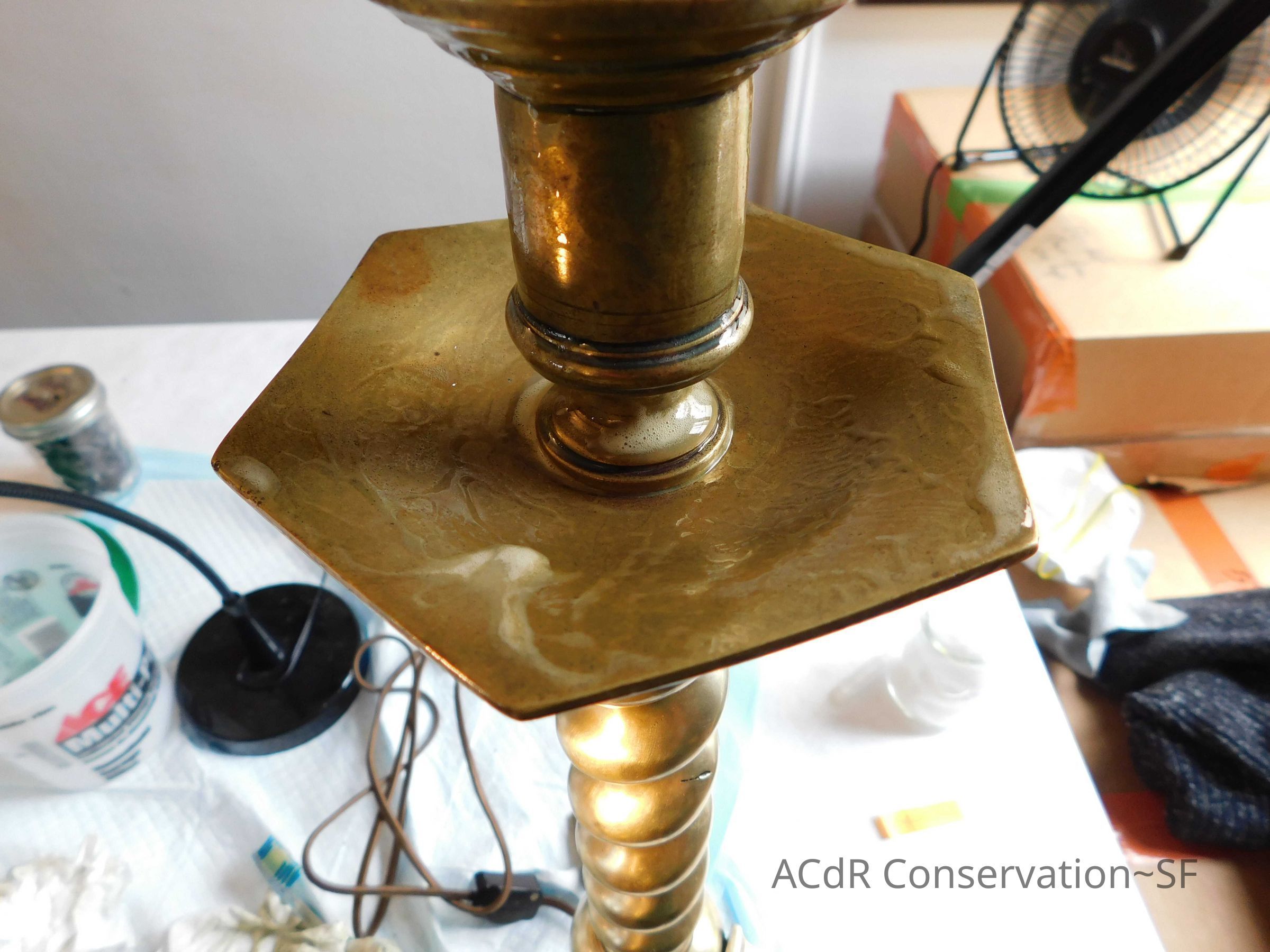 Project Gallery Go back Prev Next Brass candlestick lamps Object/ArtifactEntry/Object IDA-BConservationConservation PurposeDisaster RecoveryTreatmentAcute TreatmentGeneral CleaningDate(s)Sep 18, 2018