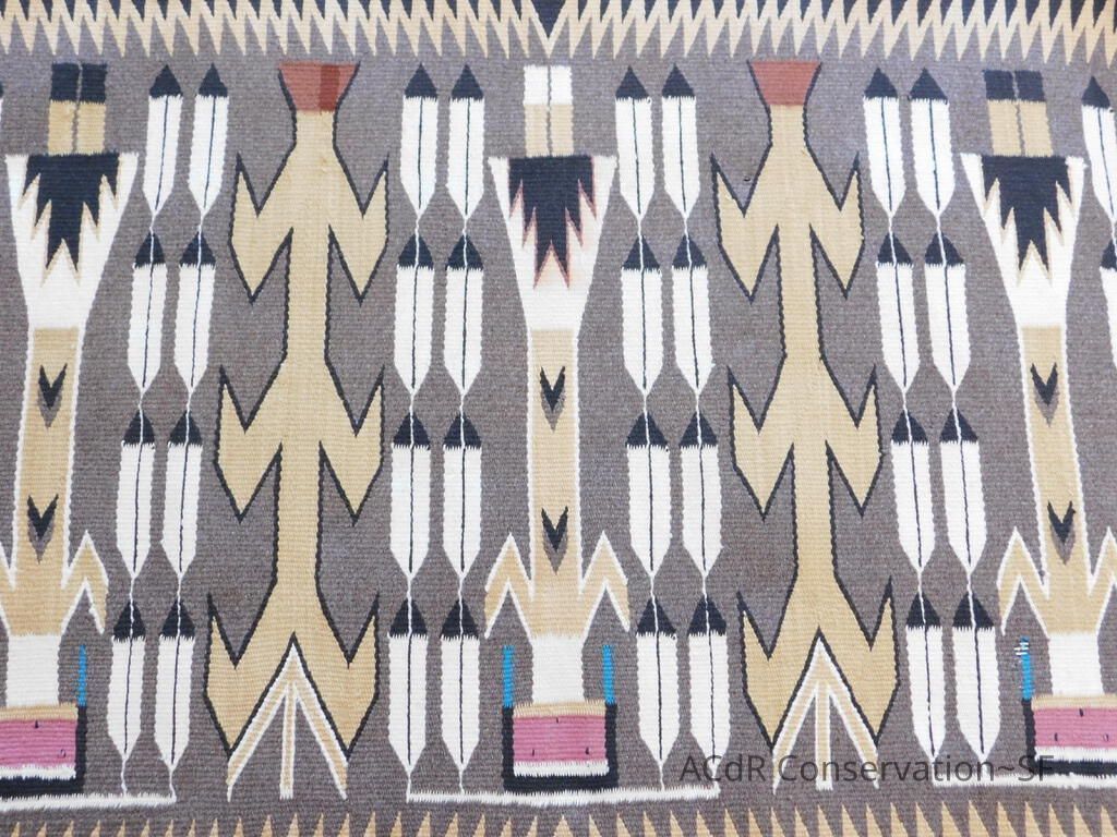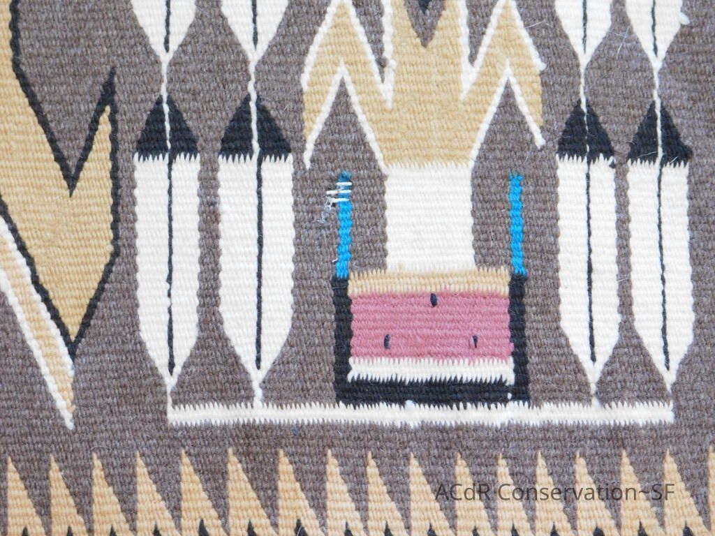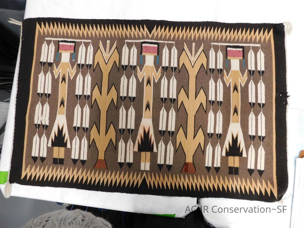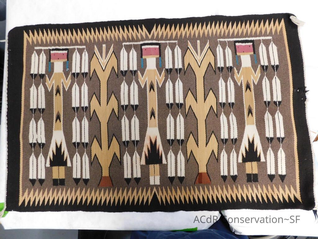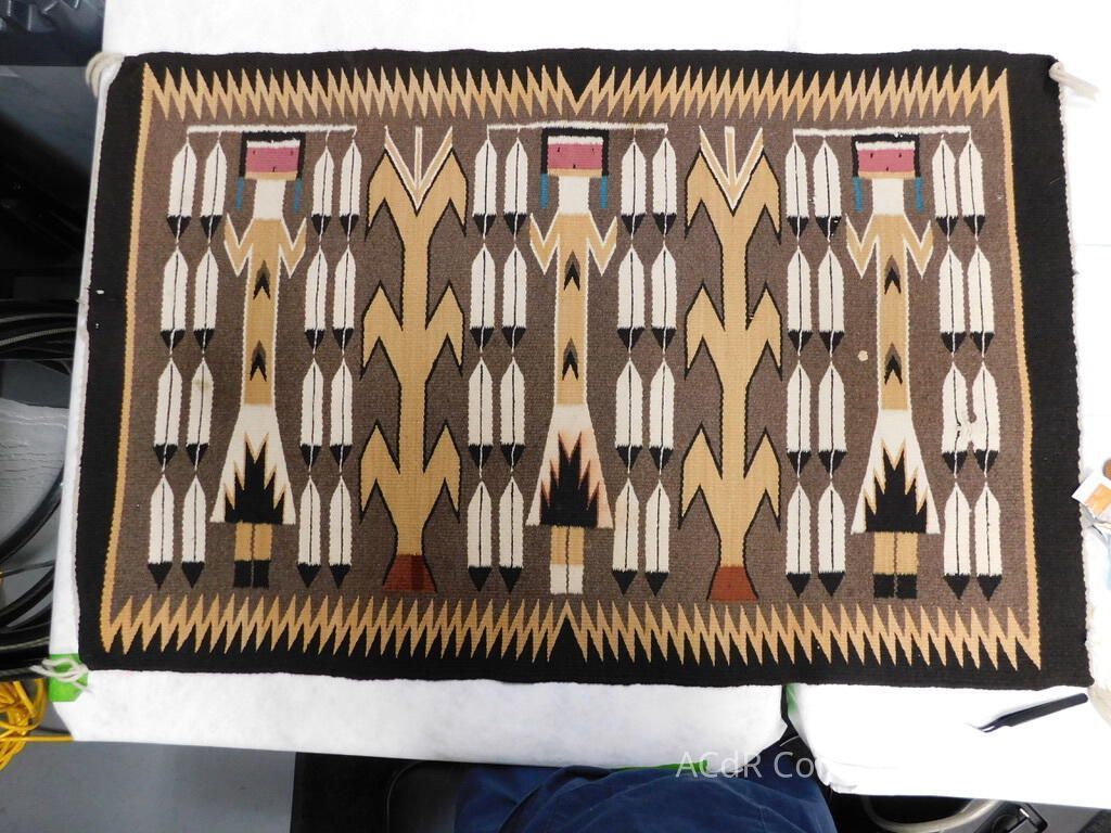 Project Gallery Go back Prev Next Navajo Rug Navajo Rug or TextileDescriptionThree figures and cornstalks with sawtooth borderEntry/Object ID#175