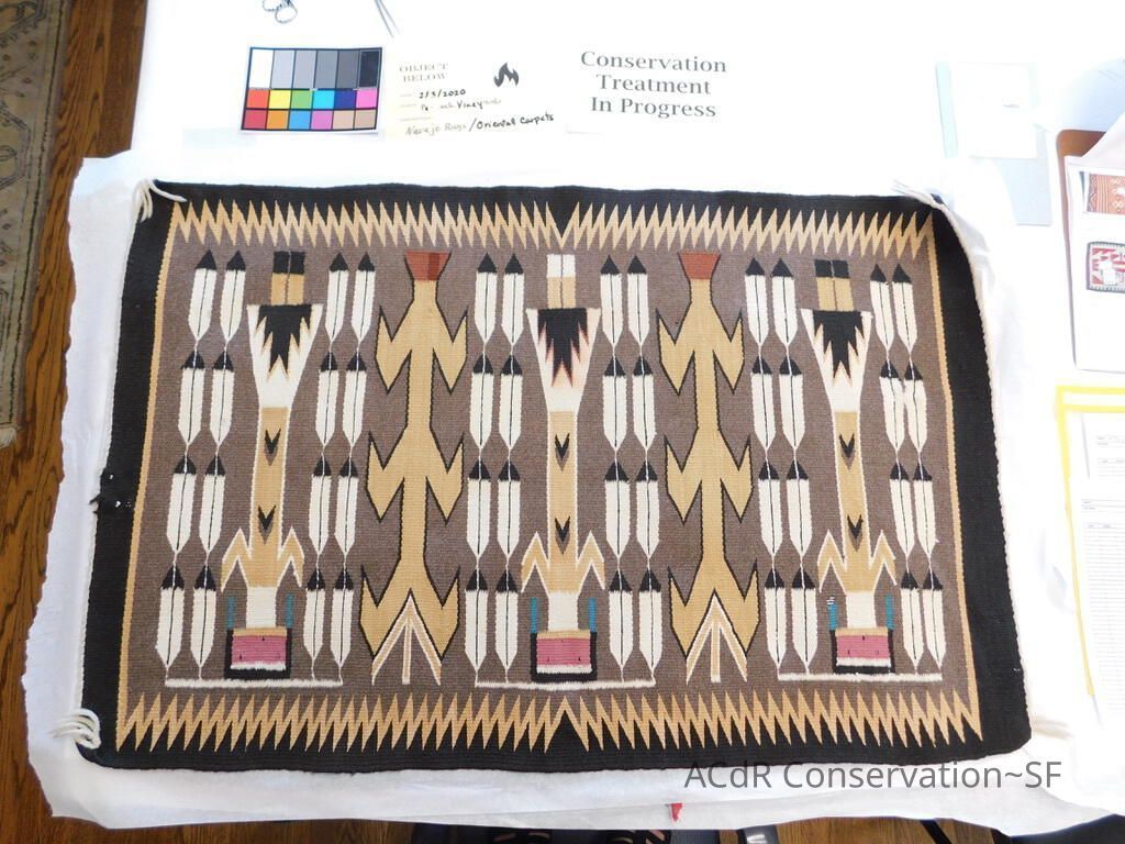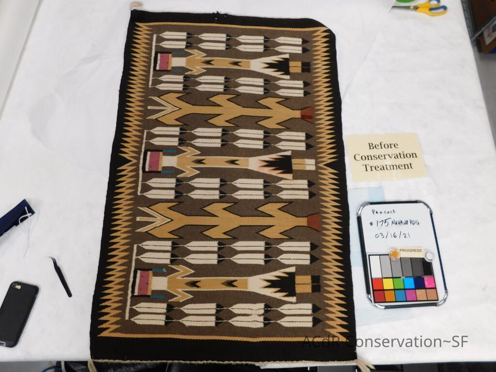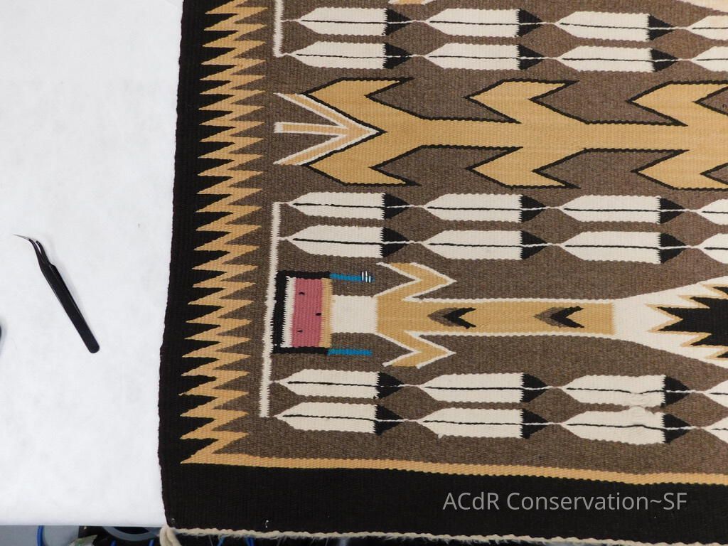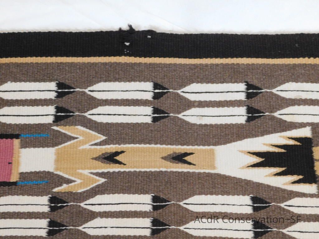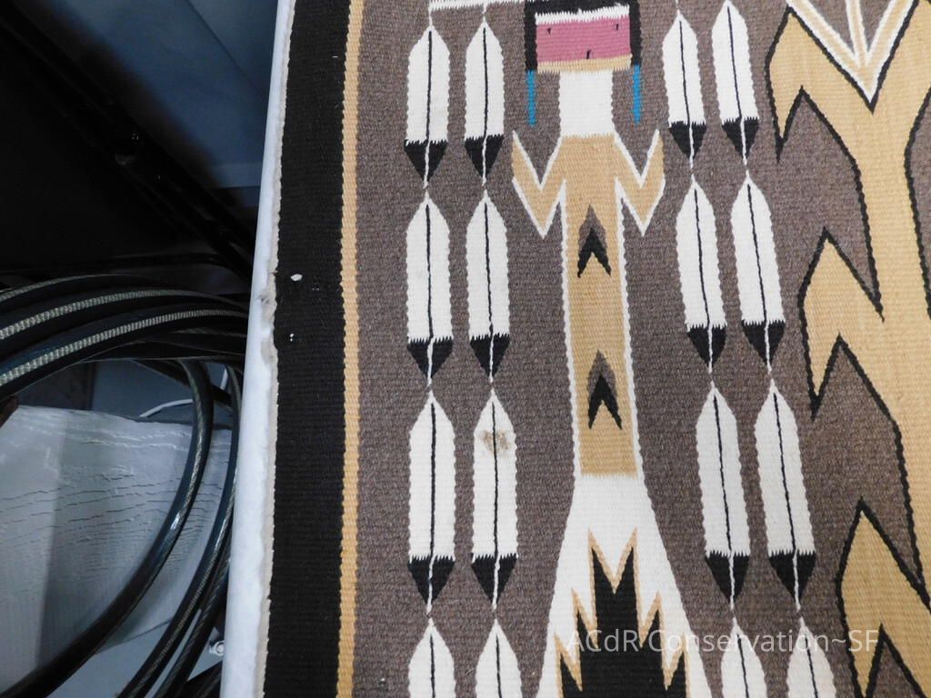 Project Gallery Go back Prev Next Navajo Rug Navajo Rug or TextileDescriptionThree figures and cornstalks with sawtooth borderEntry/Object ID#175