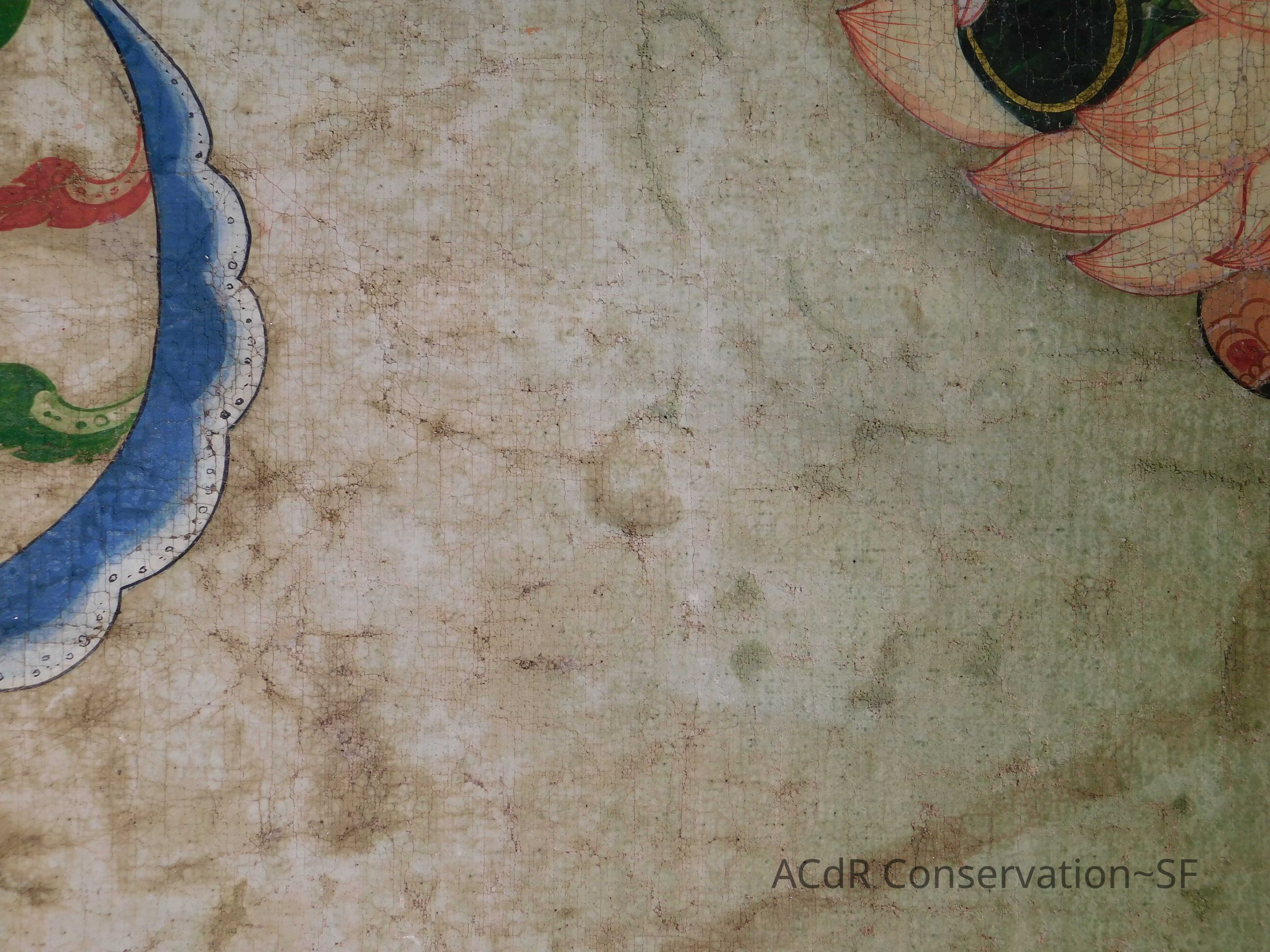 Retouching with watercolors, filling. Removing in painting on the lower right corner using water and filling with clear gesso.