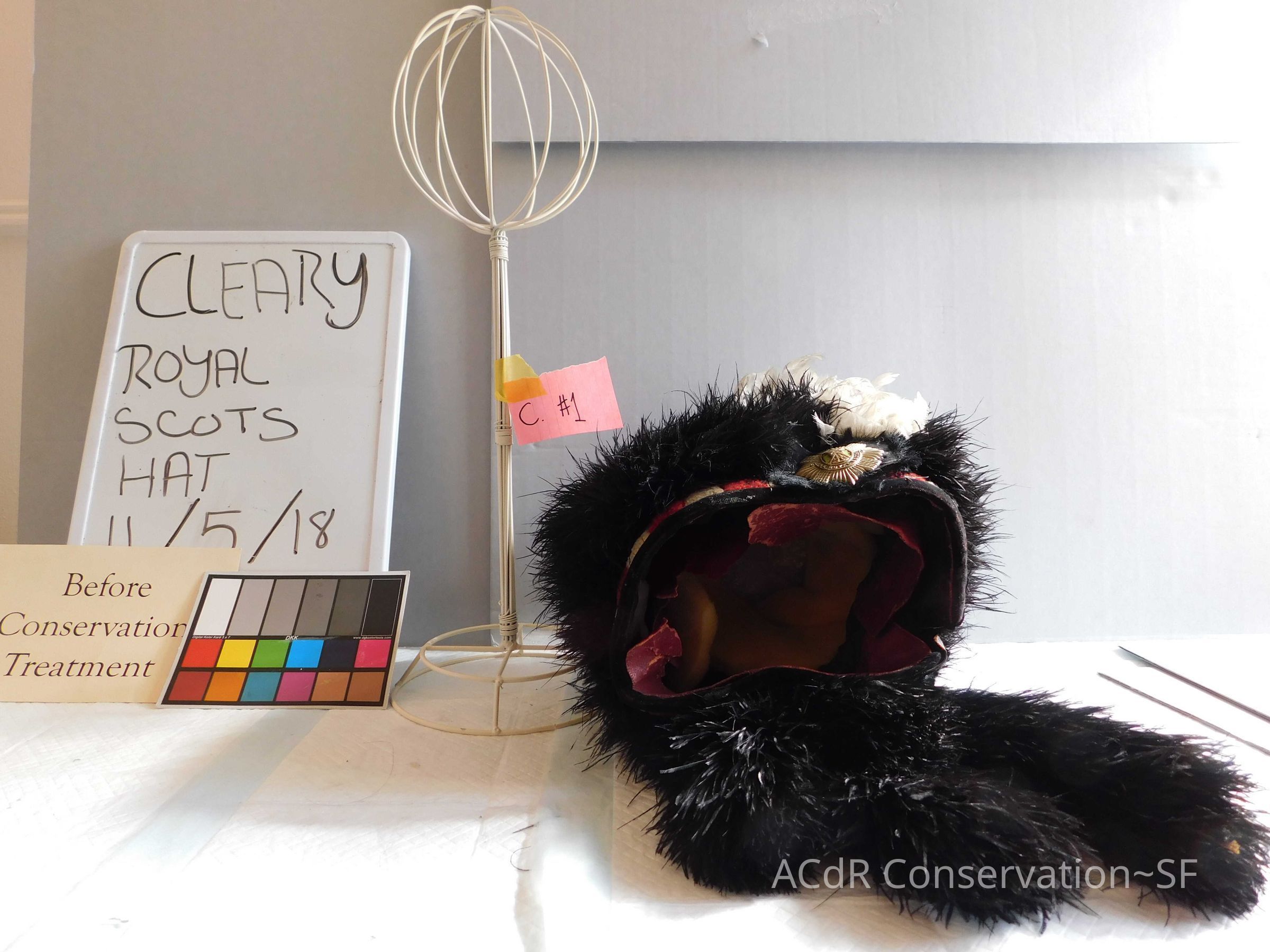 Project Gallery Go back Prev Next Royal Scots Hat TextileEntry/Object ID#1ConservationConservation PurposeDisaster RecoveryTreatmentAcute TreatmentGeneral CleaningDate(s)Nov 5, 2018