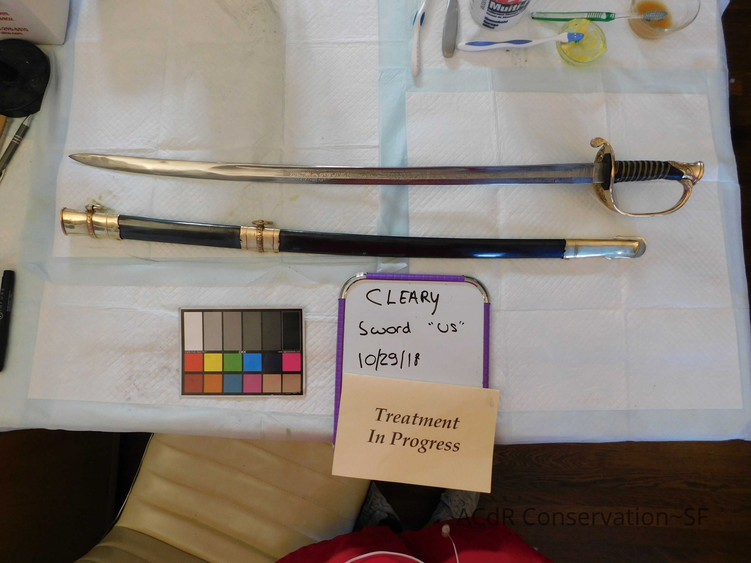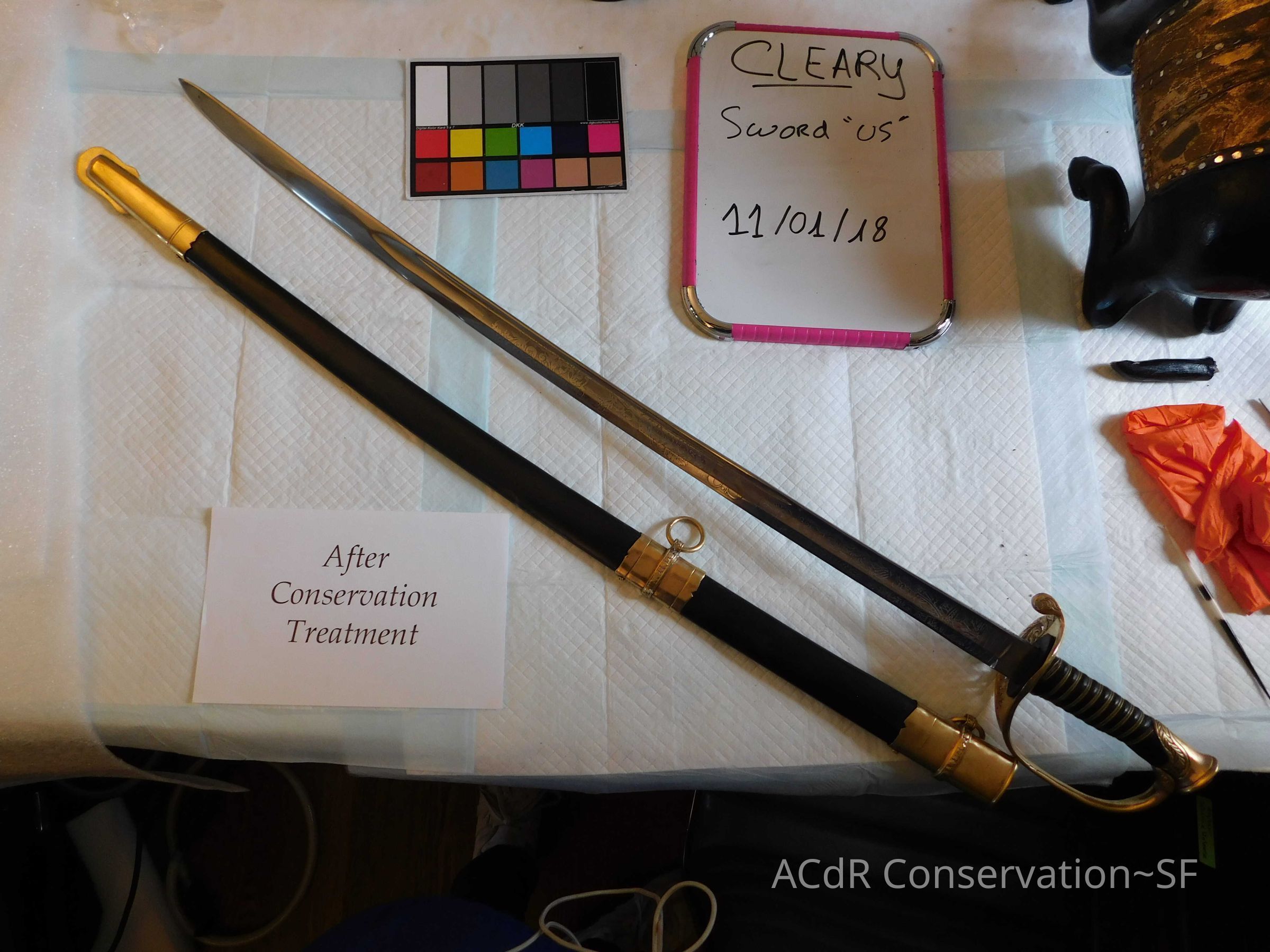 Project Gallery Go back Prev Next Sword "U.S." Object/ArtifactConservationConservation PurposeDisaster RecoveryTreatmentAcute TreatmentGeneral CleaningDate(s)Oct 19, 2018 - Nov 1, 2018