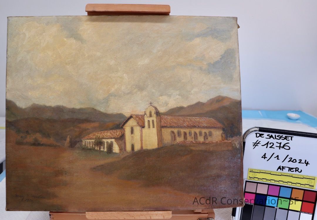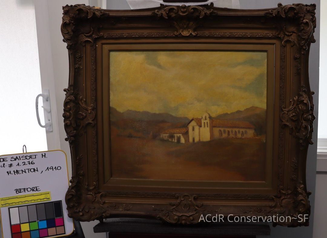Project Gallery Go back Prev Next San Inez Mission PaintingDescriptionoil on canvas, frame: wood painted goldEntry/Object ID1.276ConservationConservation PurposeDisaster RecoveryTreatmentAcute TreatmentSurface Clean