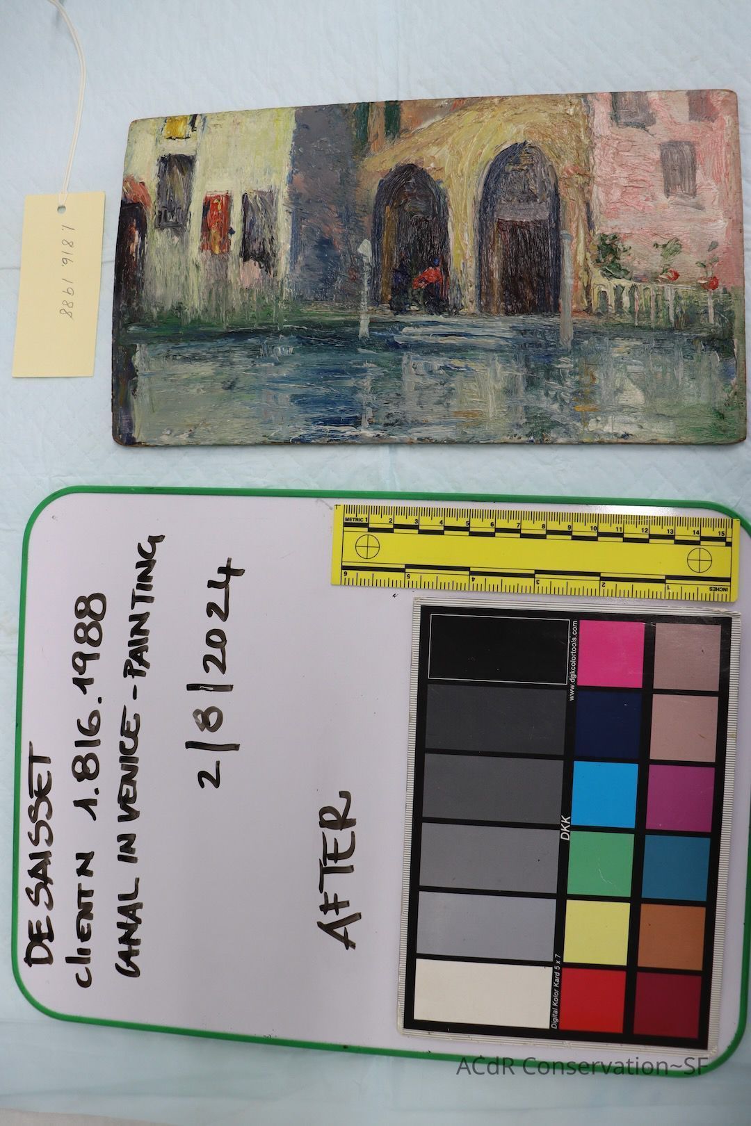 Project Gallery Go back Prev Next Untitled (Canal in Venice) PaintingDescriptionoil on panelEntry/Object ID1.816.1988ConservationConservation PurposeDisaster RecoveryTreatmentAcute TreatmentSurface Clean