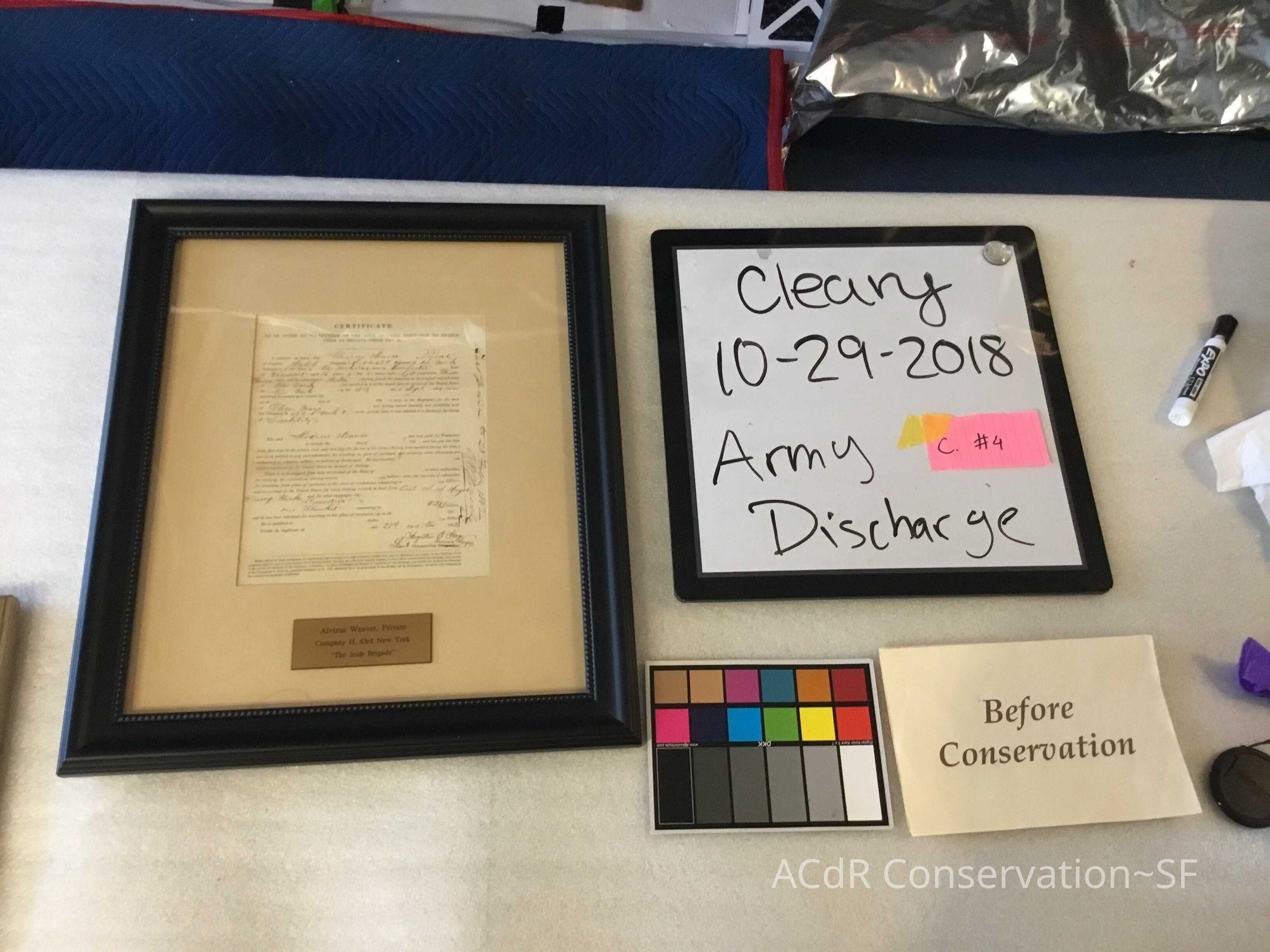Project Gallery Go back Prev Next Army Discharge PrintEntry/Object ID#4ConservationConservation PurposeDisaster RecoveryTreatmentAcute TreatmentHepa-VacuumDate(s)Oct 29, 2018 - Oct 29, 2018