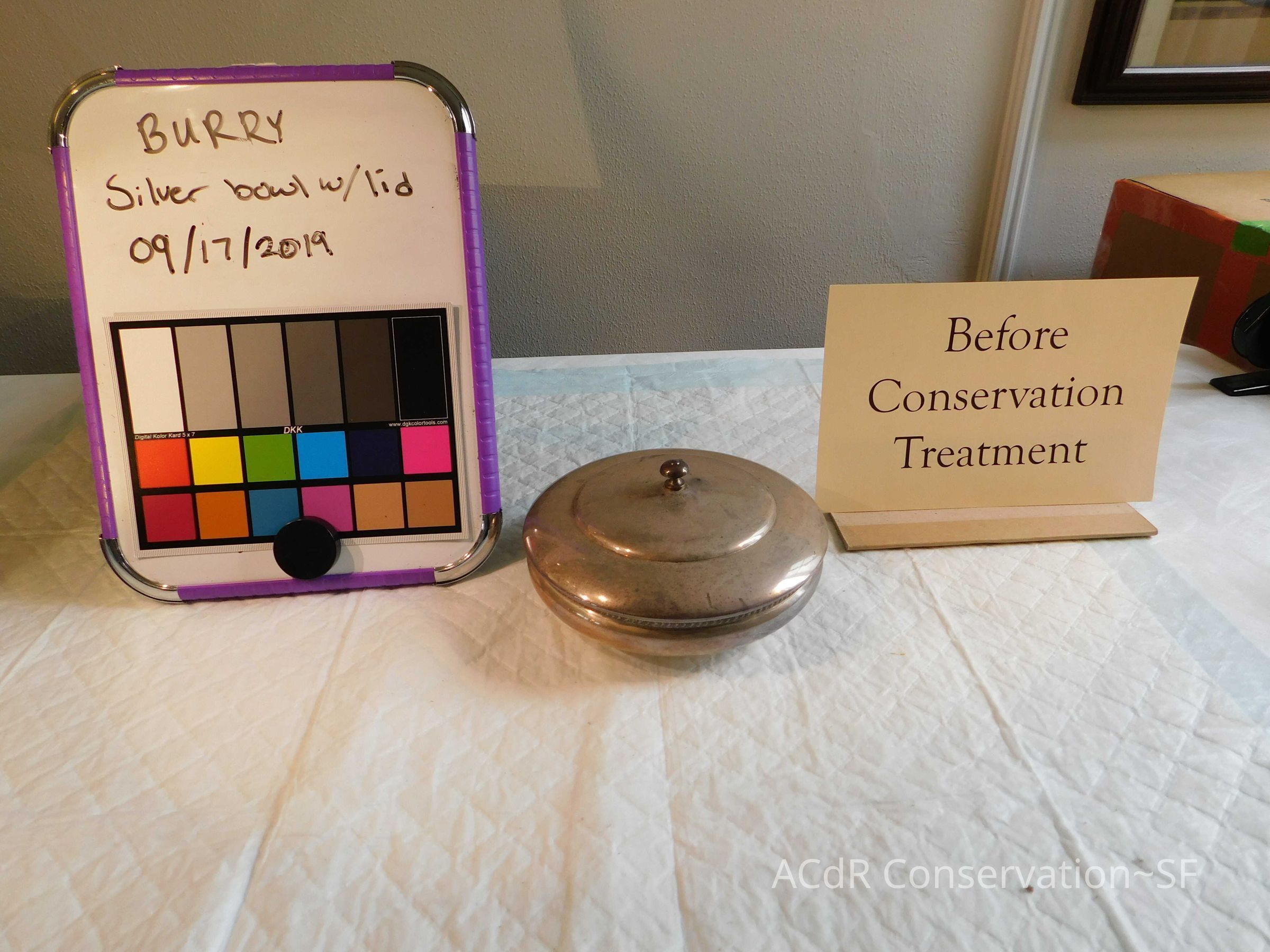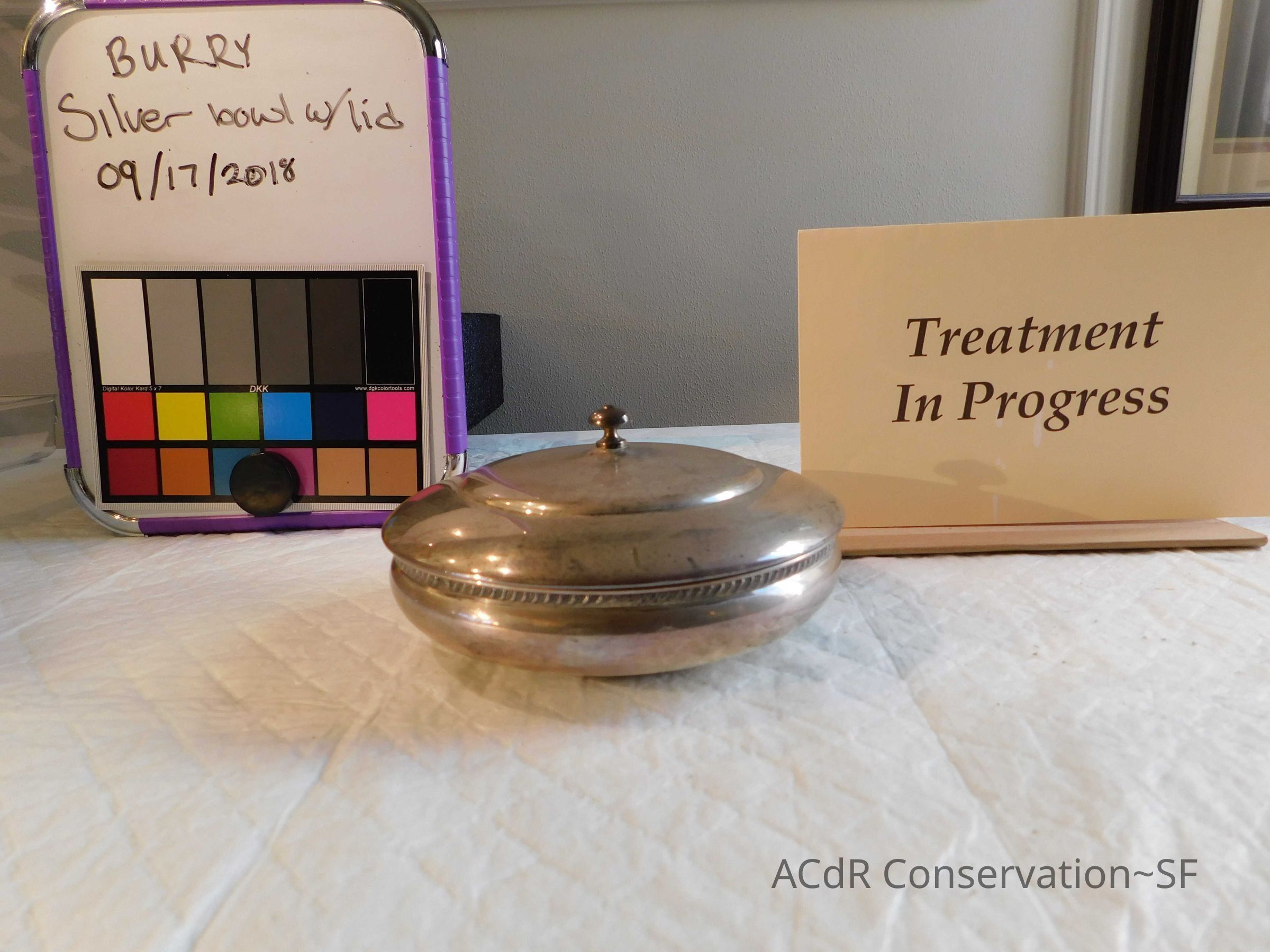 Project Gallery Go back Prev Next Silver Bowl with Lid Object/ArtifactConservationConservation PurposeDisaster RecoveryTreatmentAcute TreatmentGeneral CleaningDate(s)Sep 17, 2018