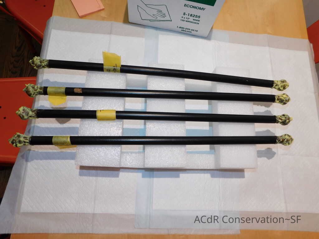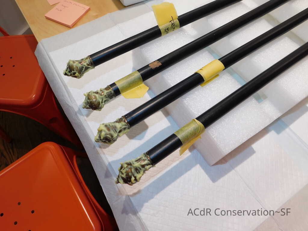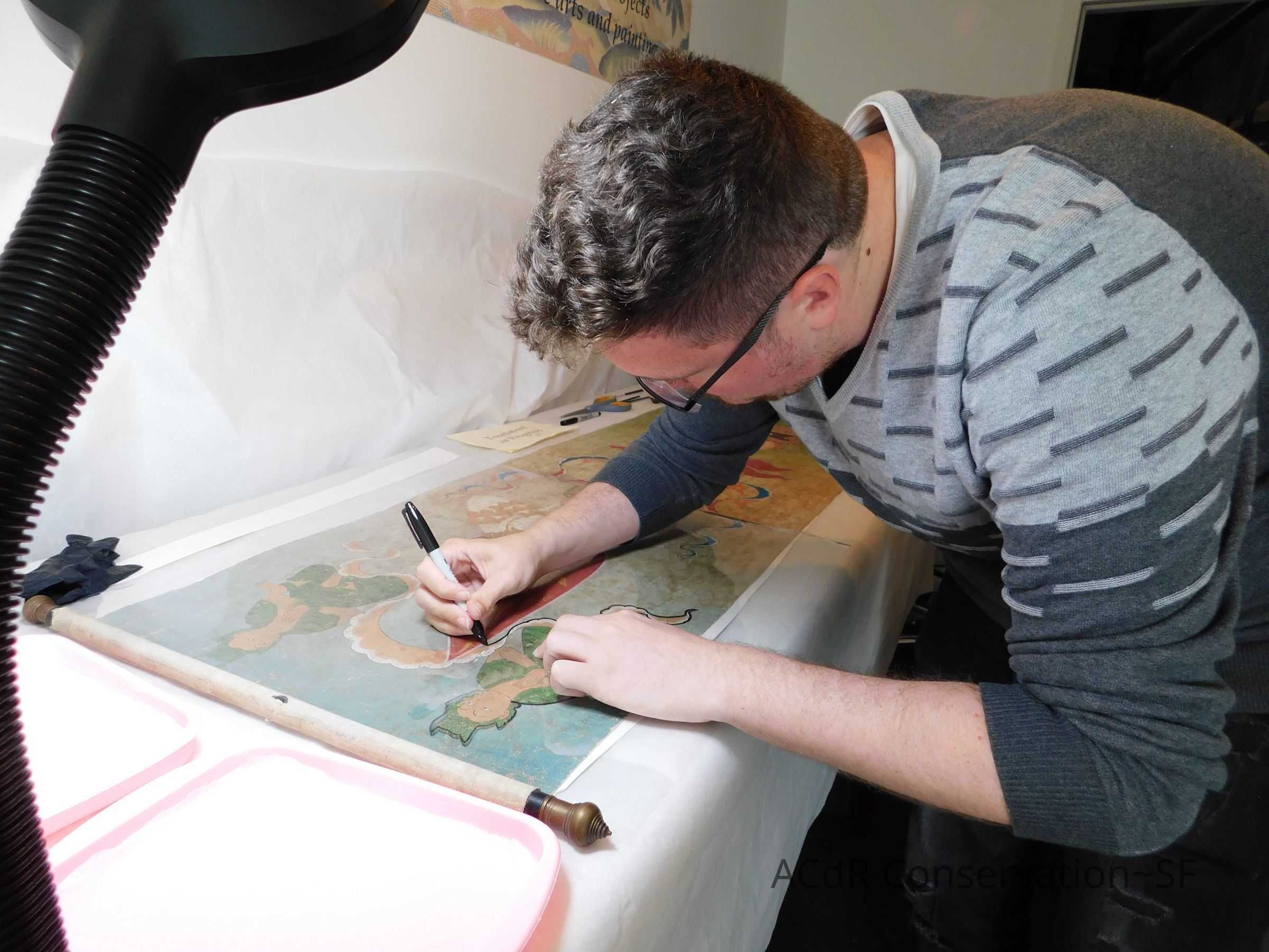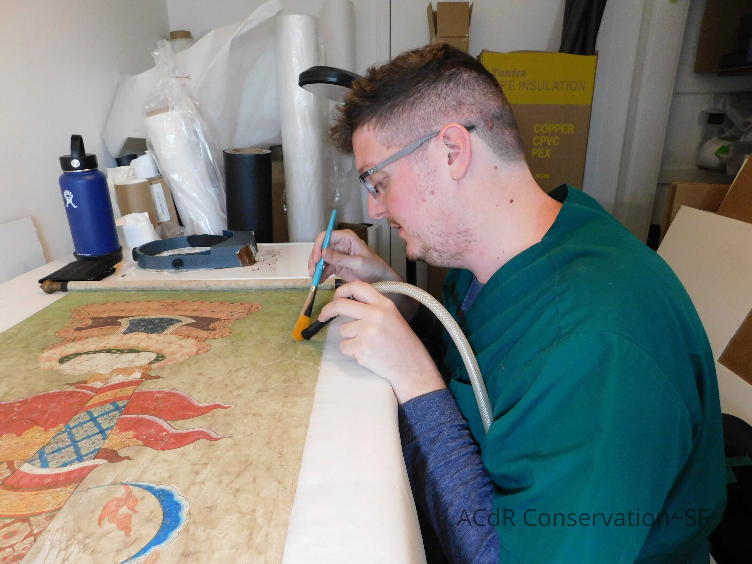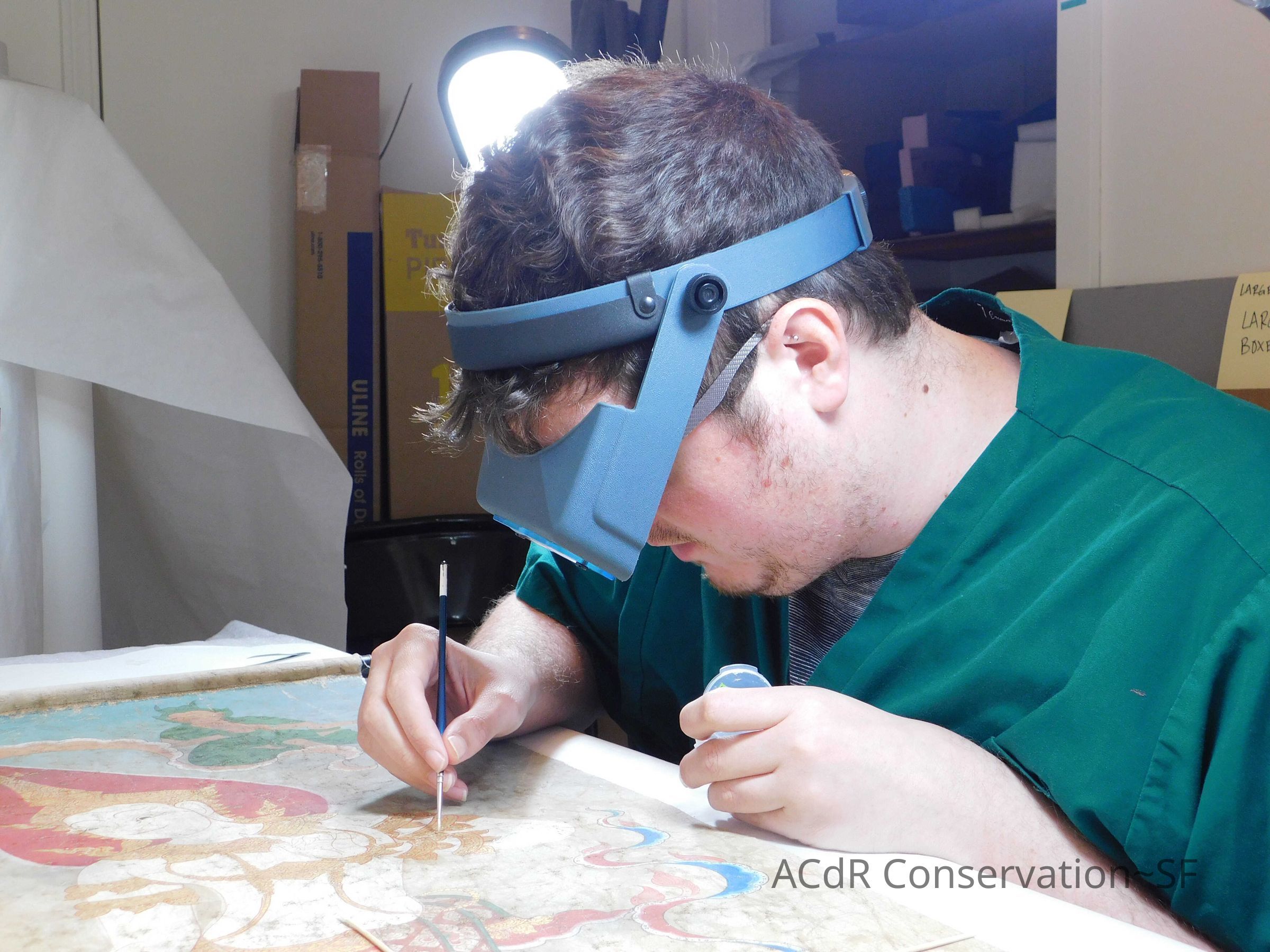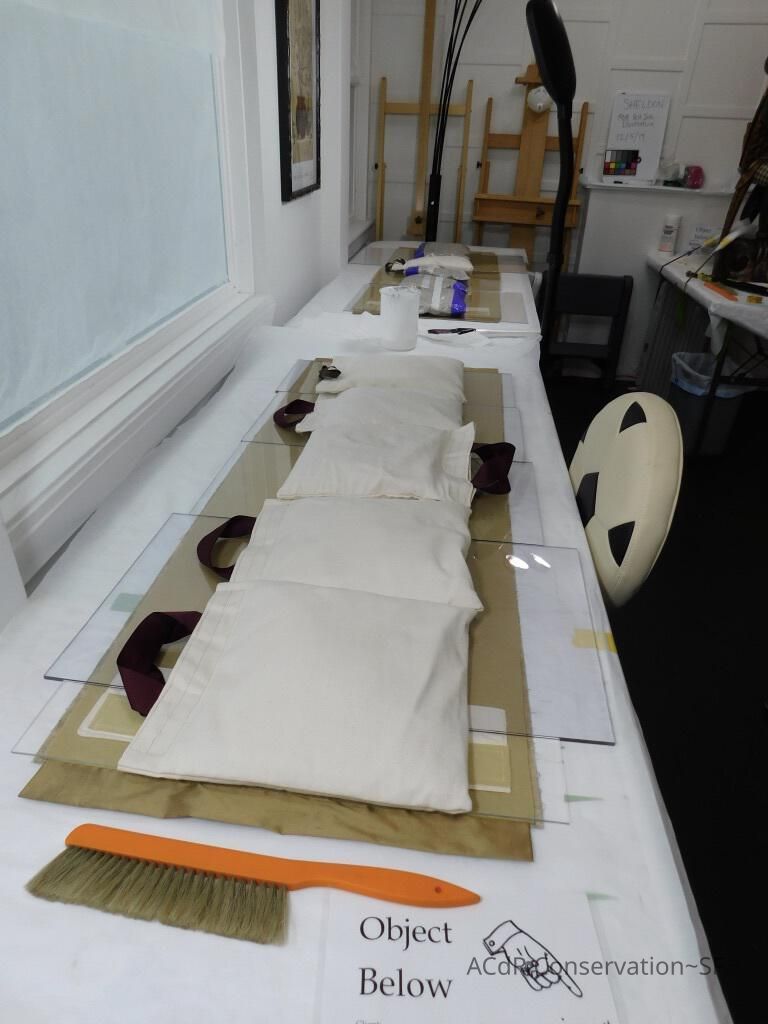 Paint layer consolidation with 3% Klucel in isoproyl on stand and feet area.