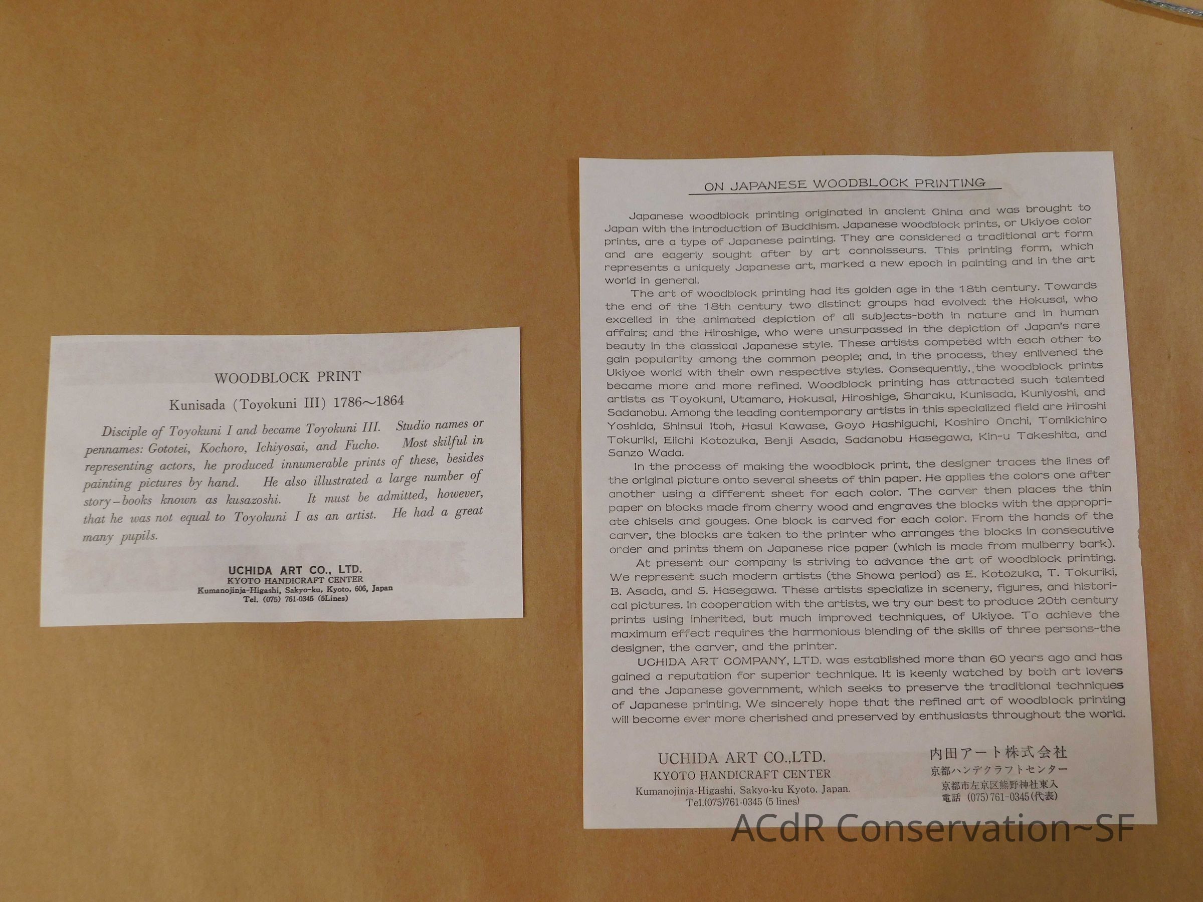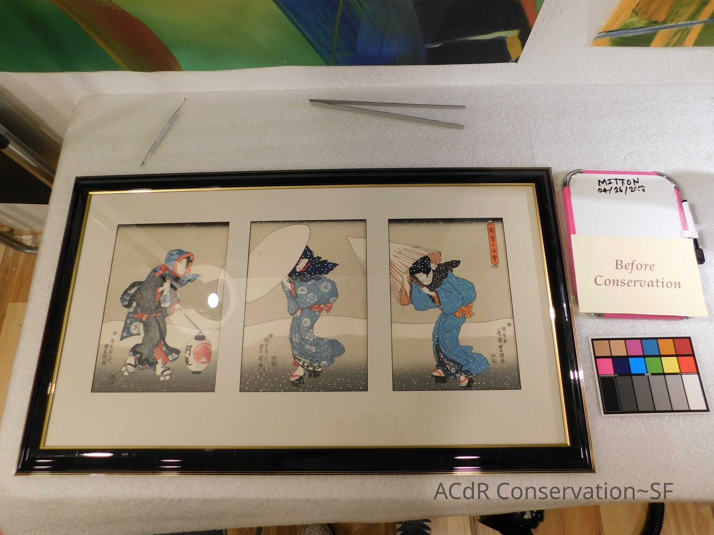 Project Gallery Go back Prev Next "Kunisada" tryptich PrintConservationConservation PurposeDisaster RecoveryTreatmentAcute TreatmentGeneral CleaningDate(s)Apr 26, 2018