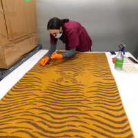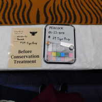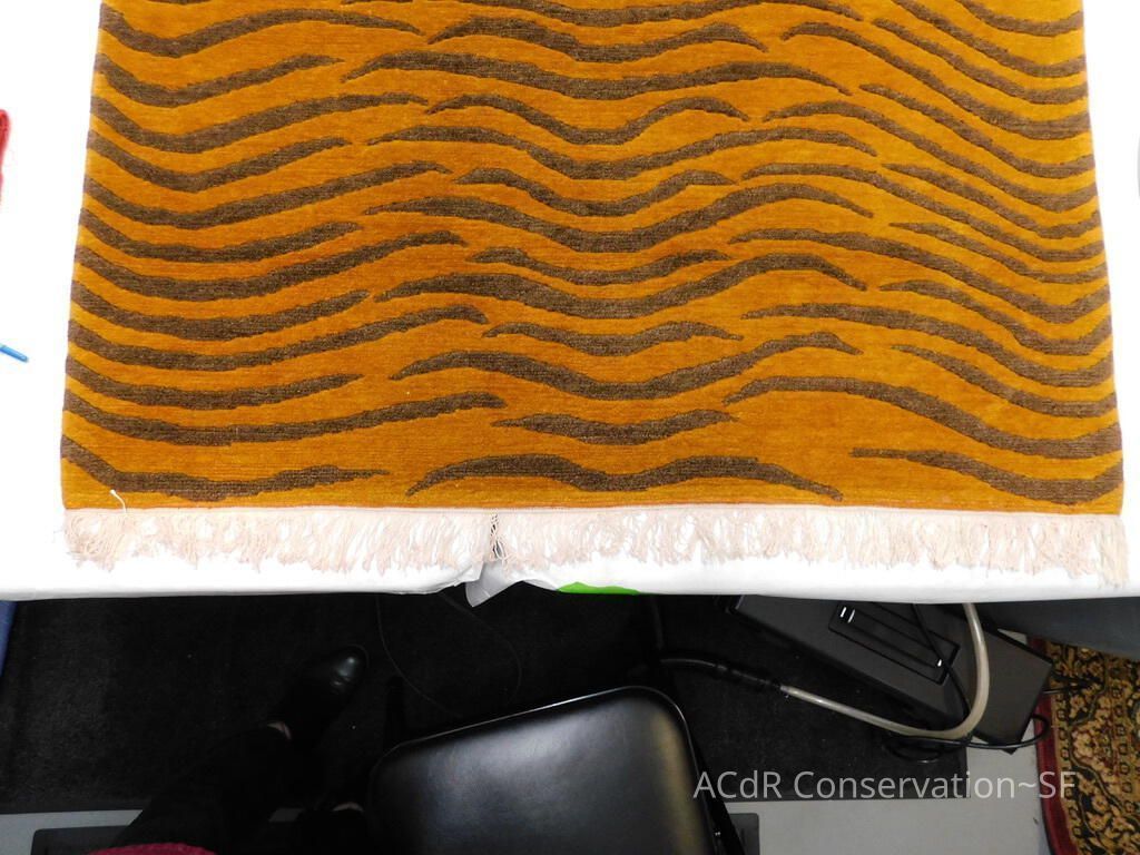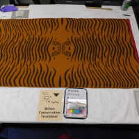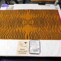 Project Gallery Go back Prev Next Tibetan or Chinese textile TextileDescriptionGold/yellow with brown tiger stripesEntry/Object ID#79