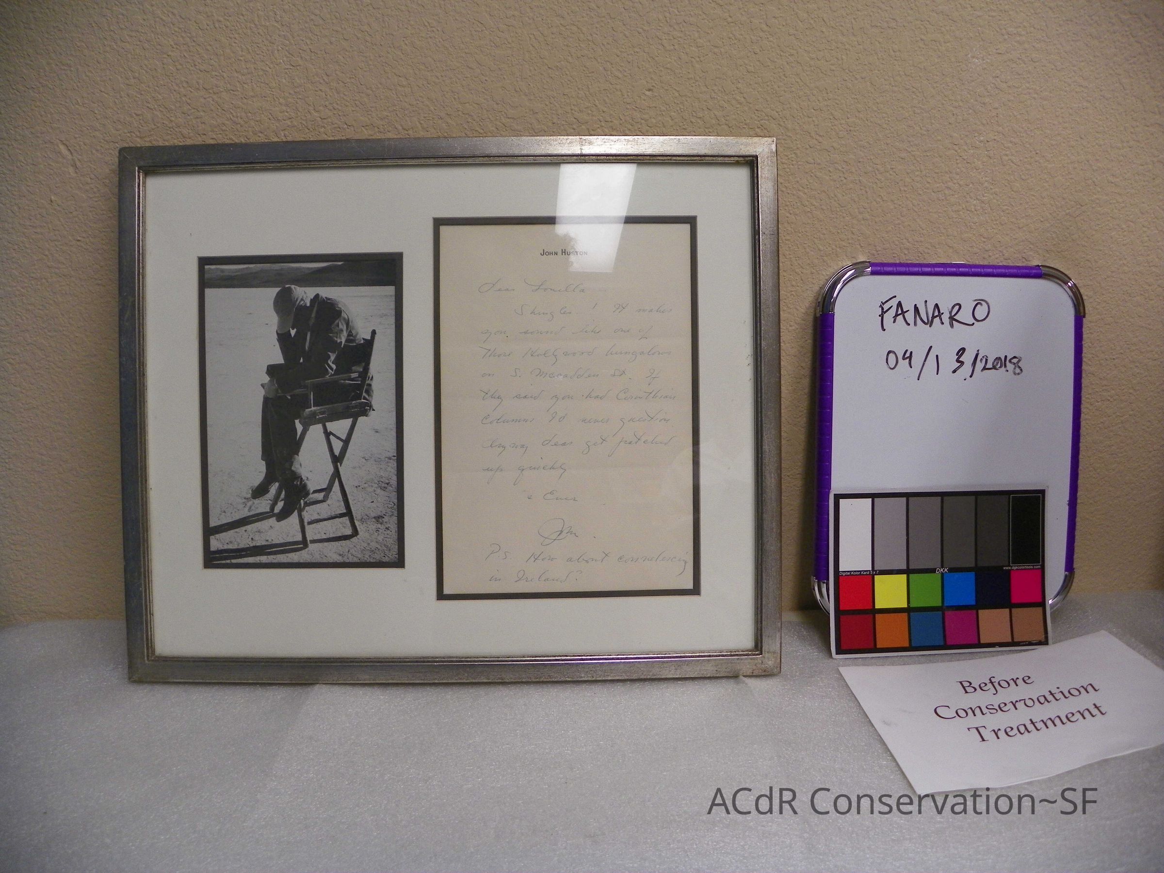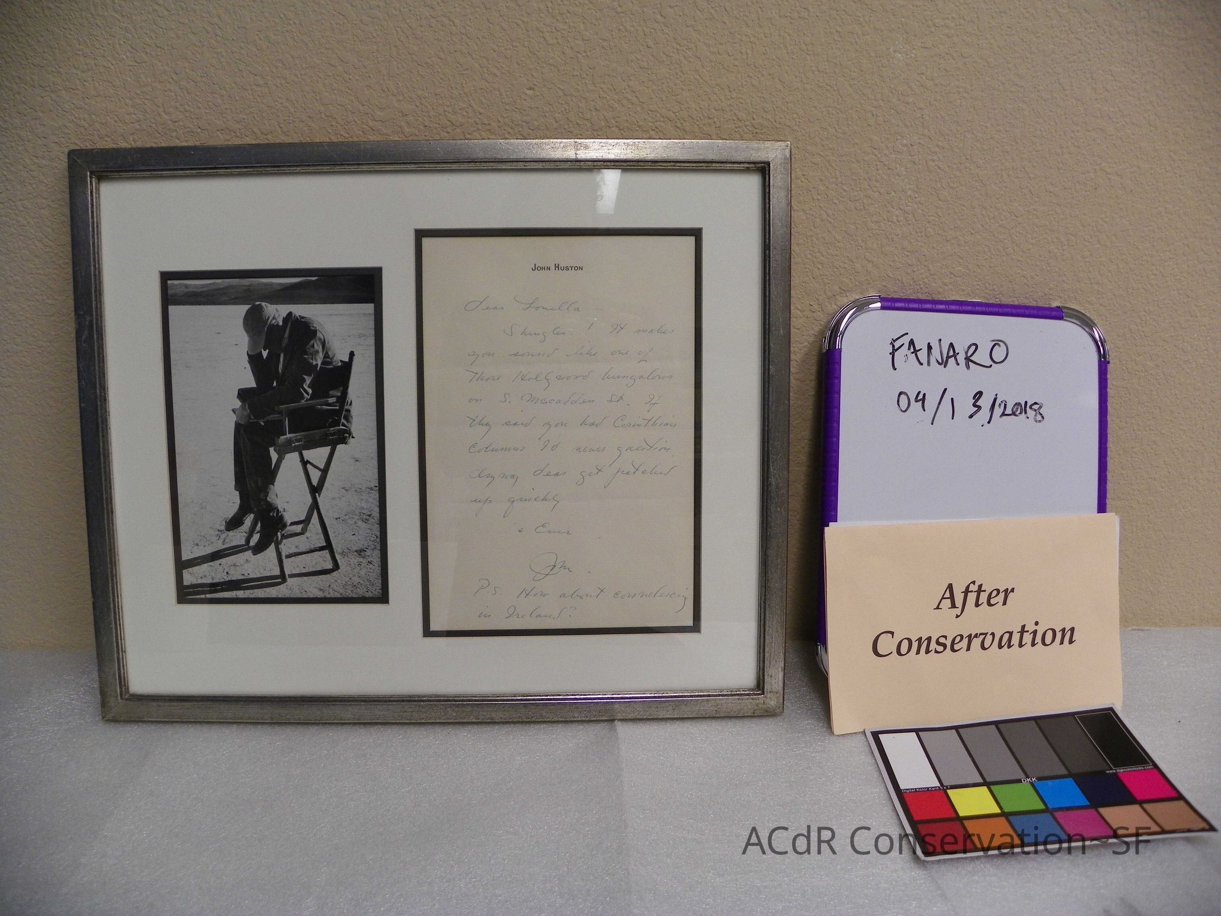 Project Gallery Go back Prev Next In the Director's Chair and Letter PhotographConservationConservation PurposeDisaster RecoveryTreatmentAcute TreatmentGeneral CleaningDate(s)Apr 13, 2018