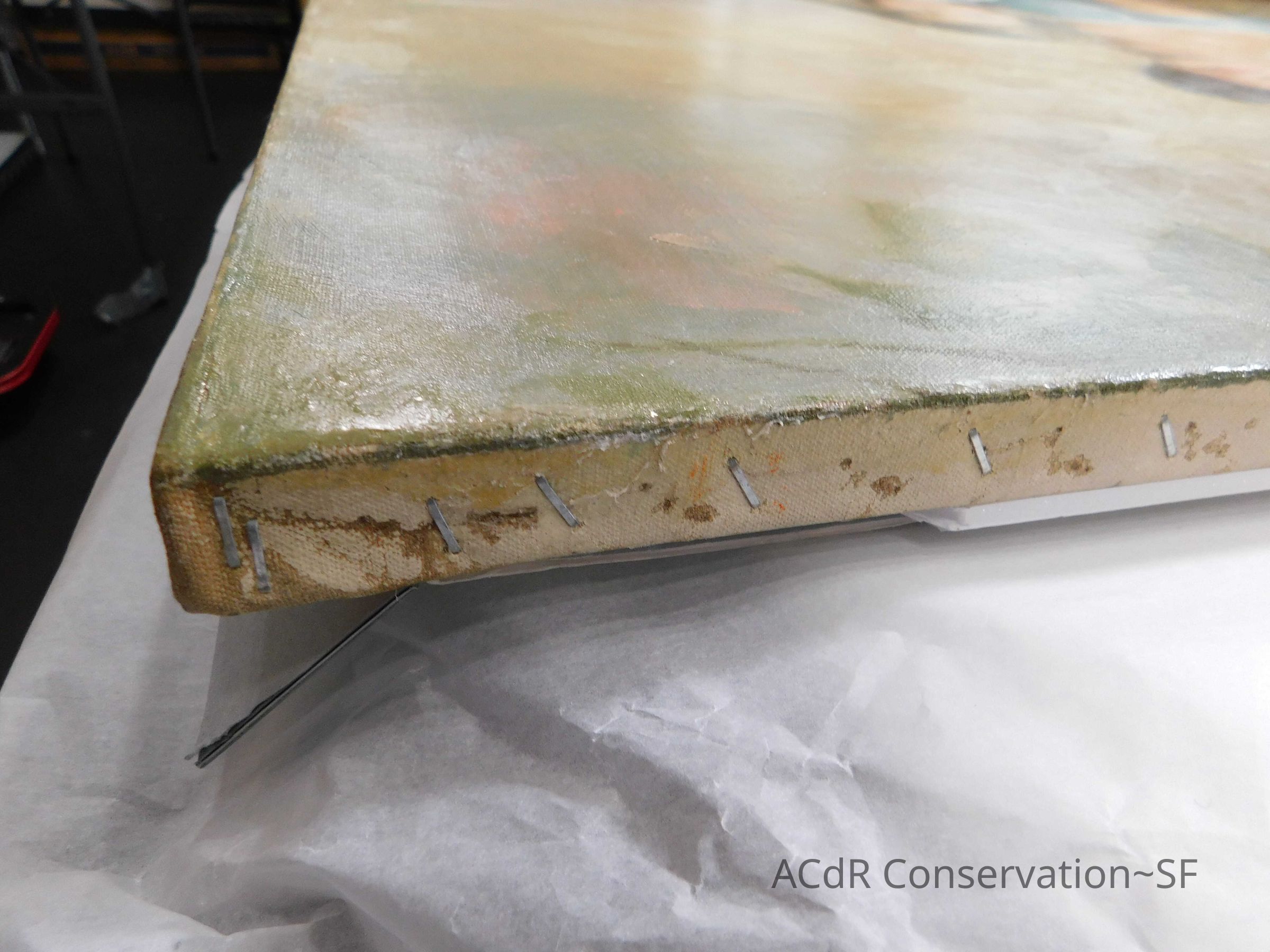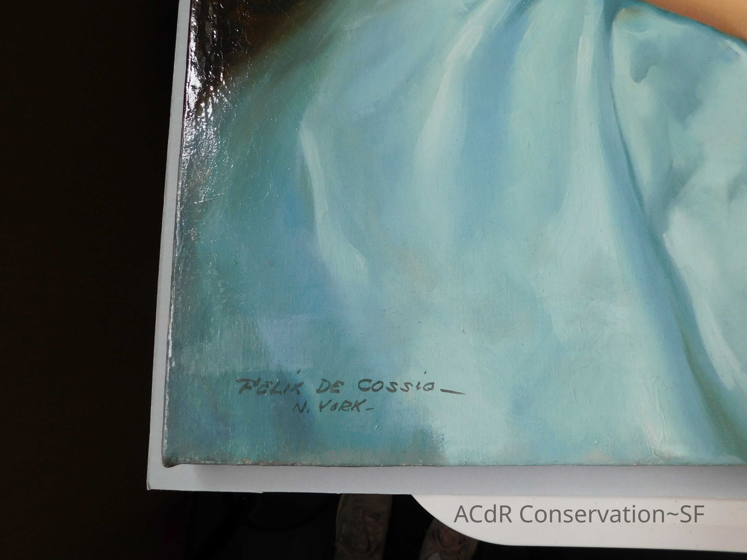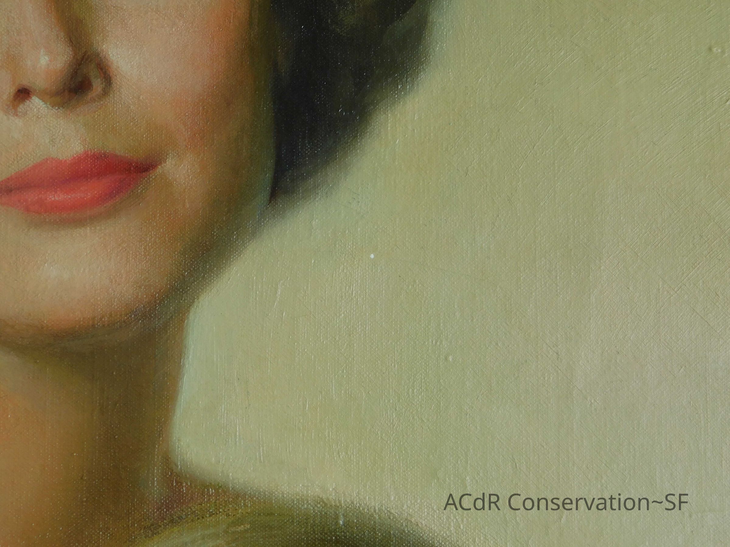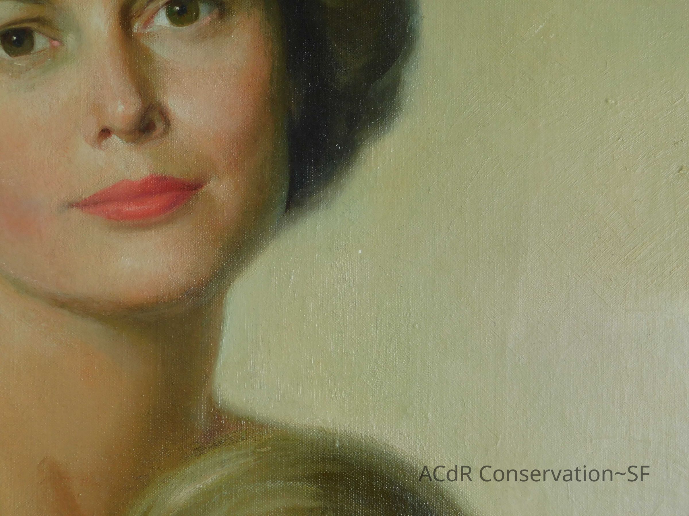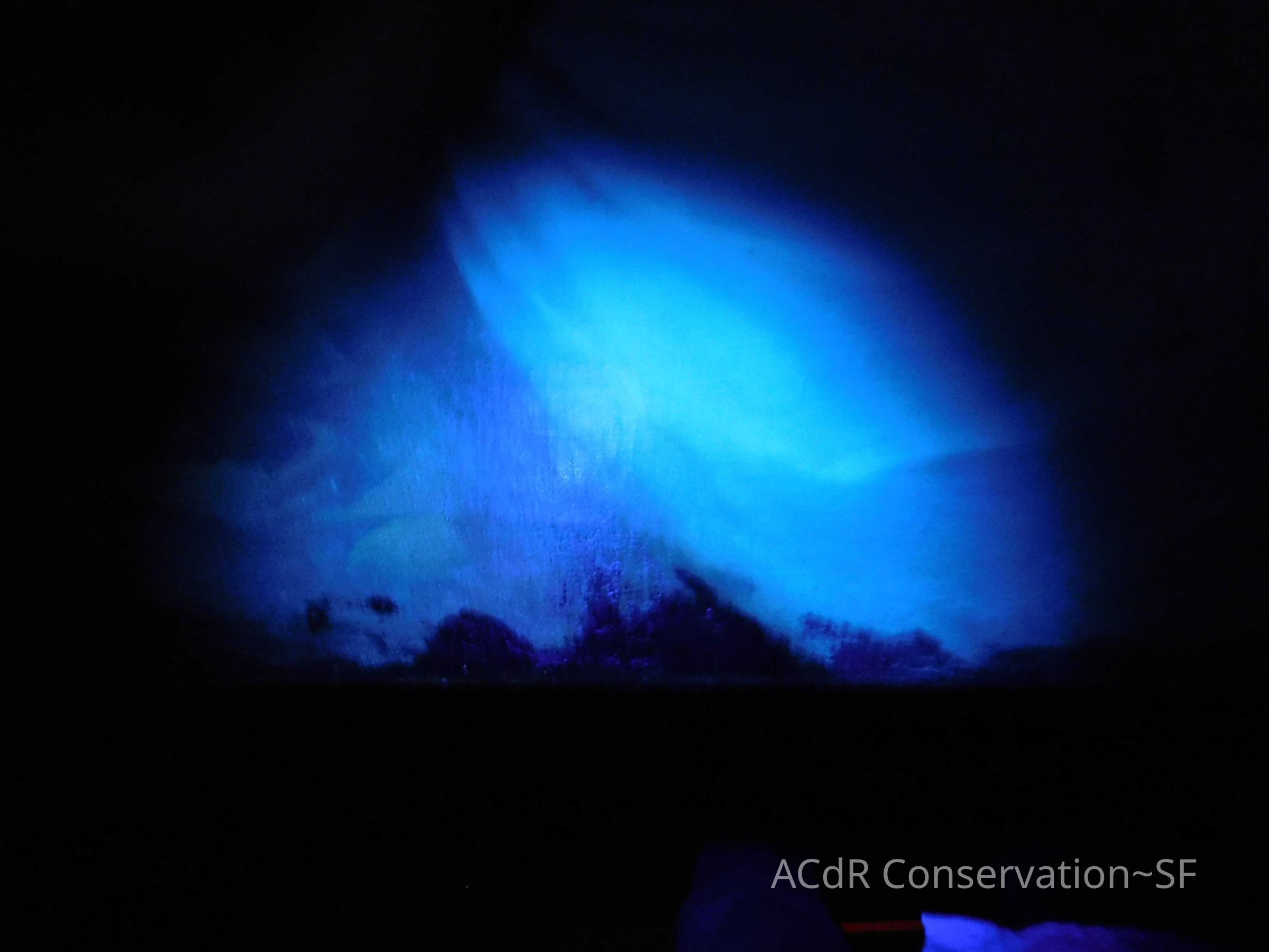 Remove varnish using solvent, especially areas of pooled varnish and where cracks are lifting to remove lint and trapped flyspecks and other materials in varnish. Added matte varnish. Potential for further consolidation.