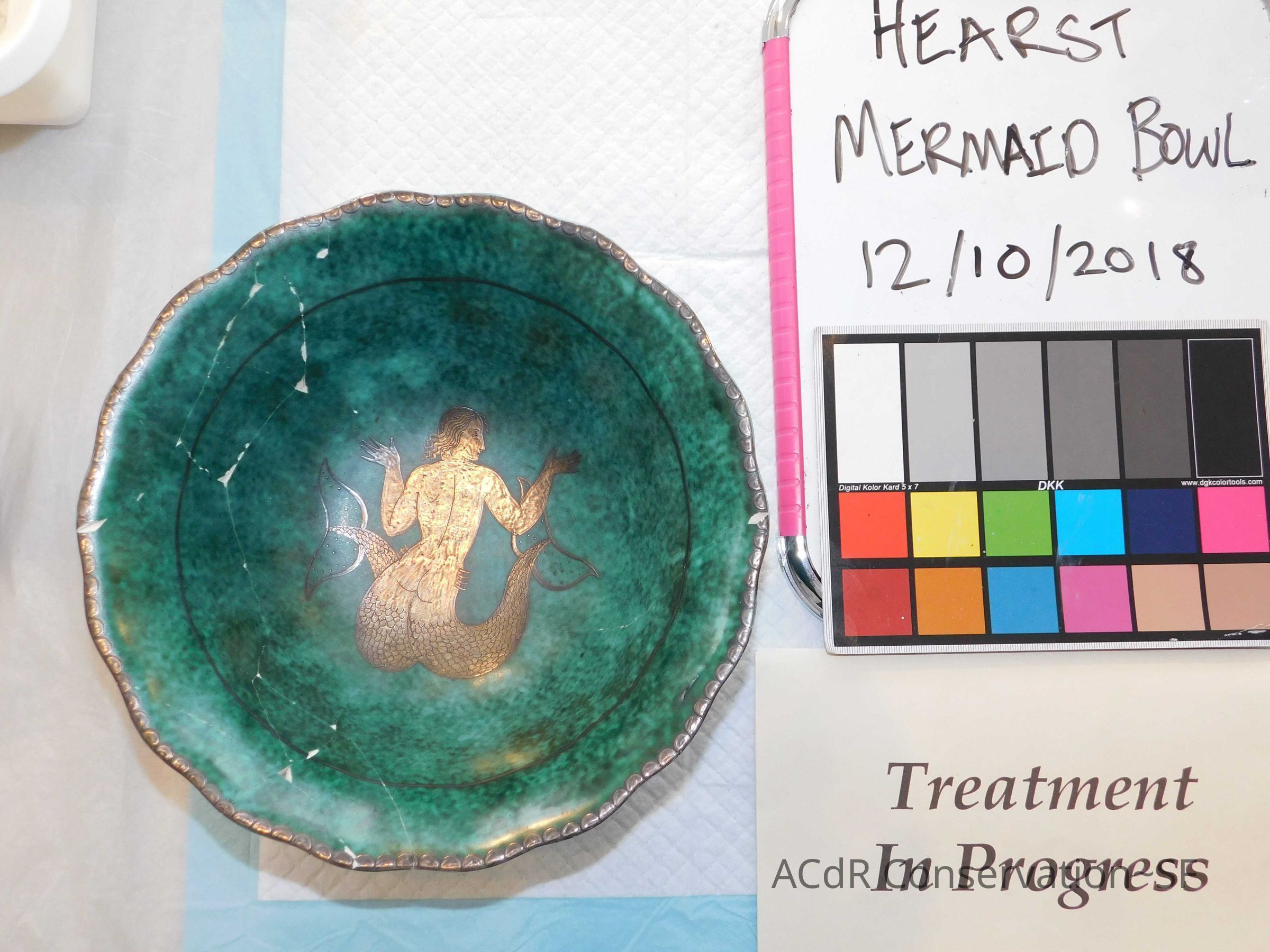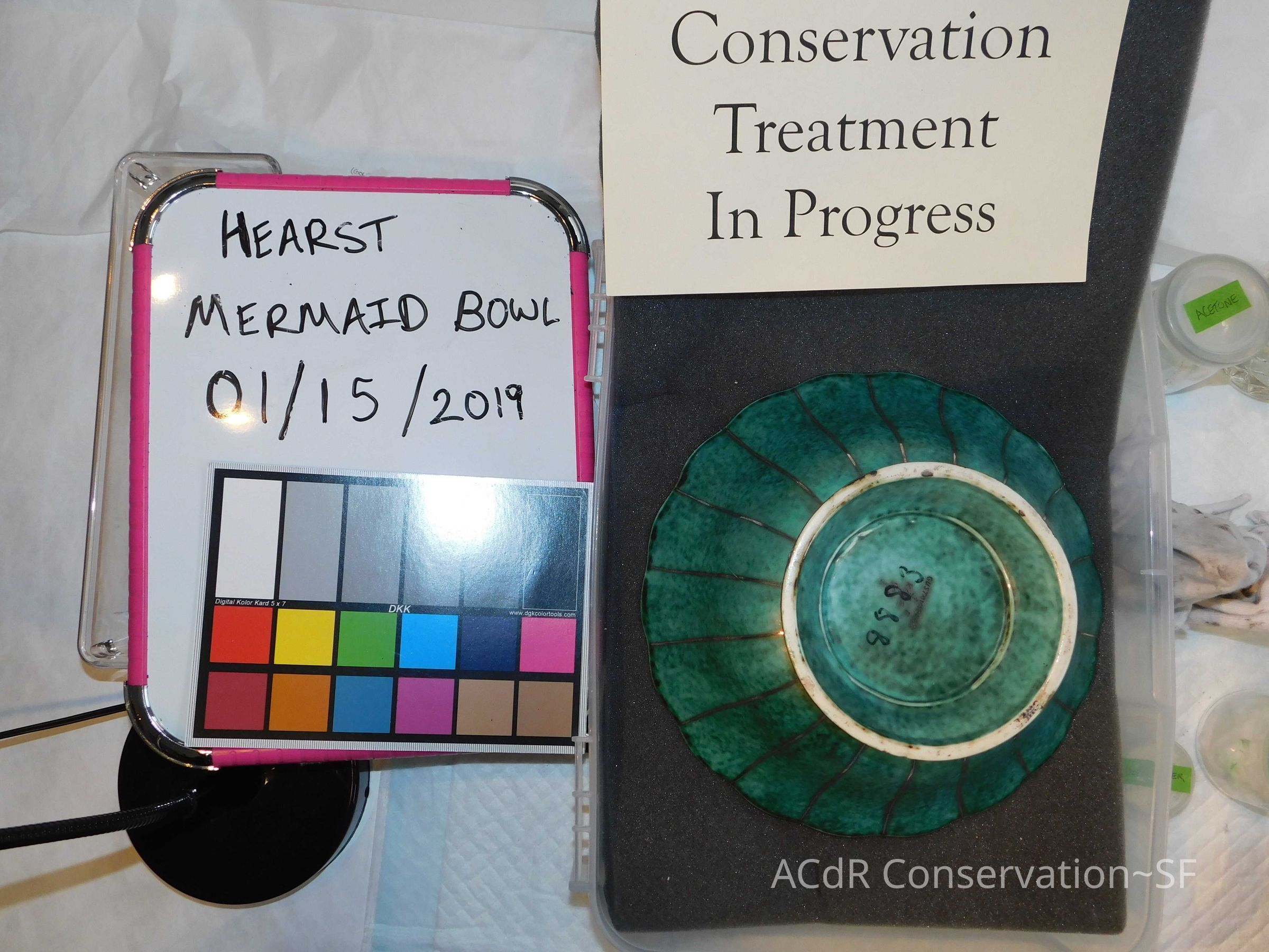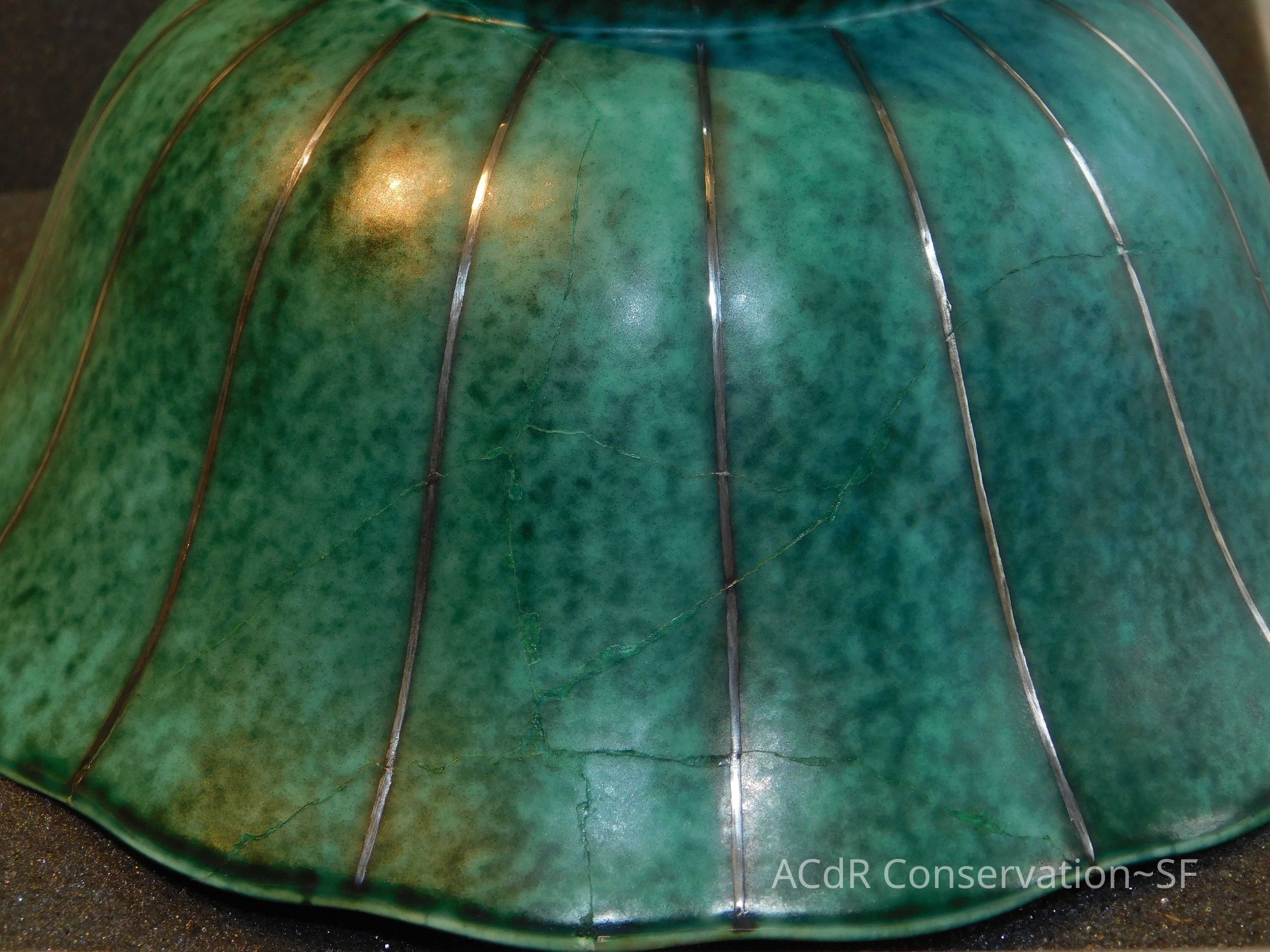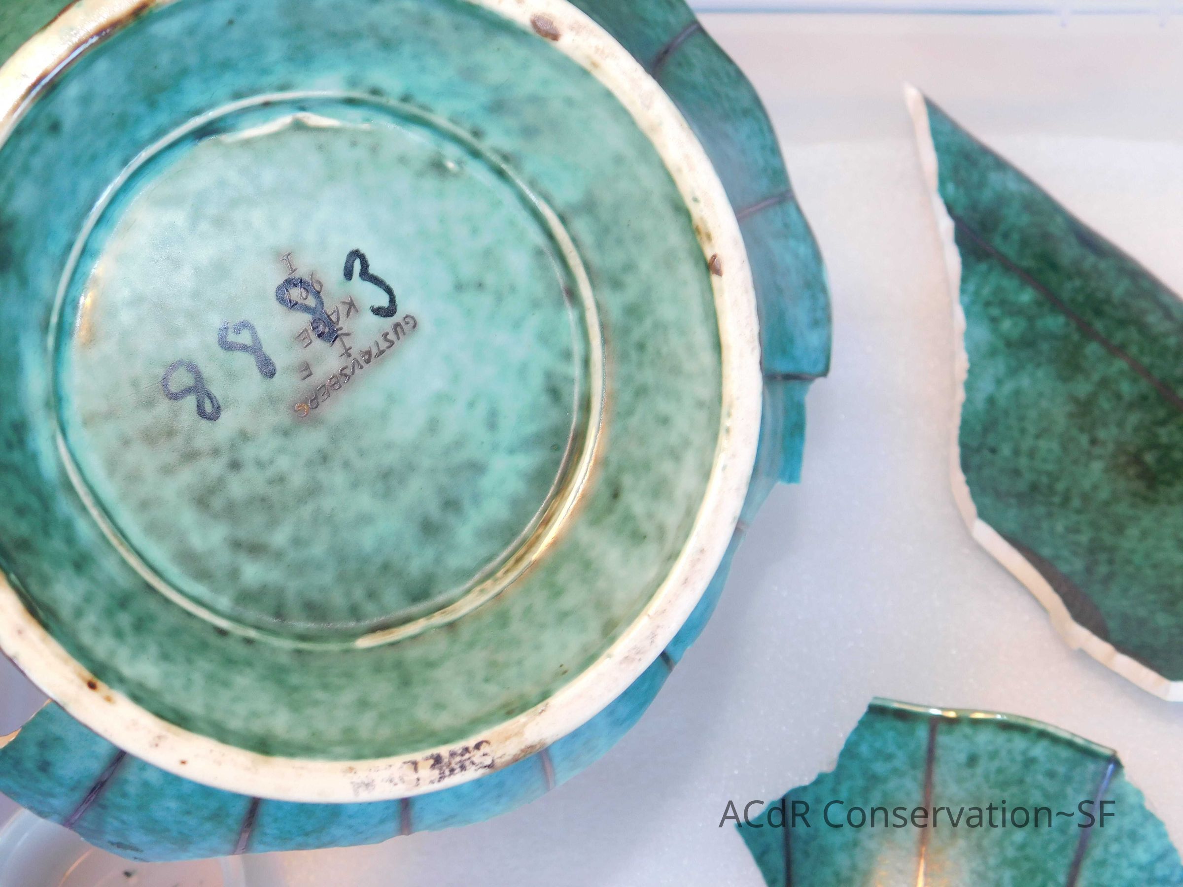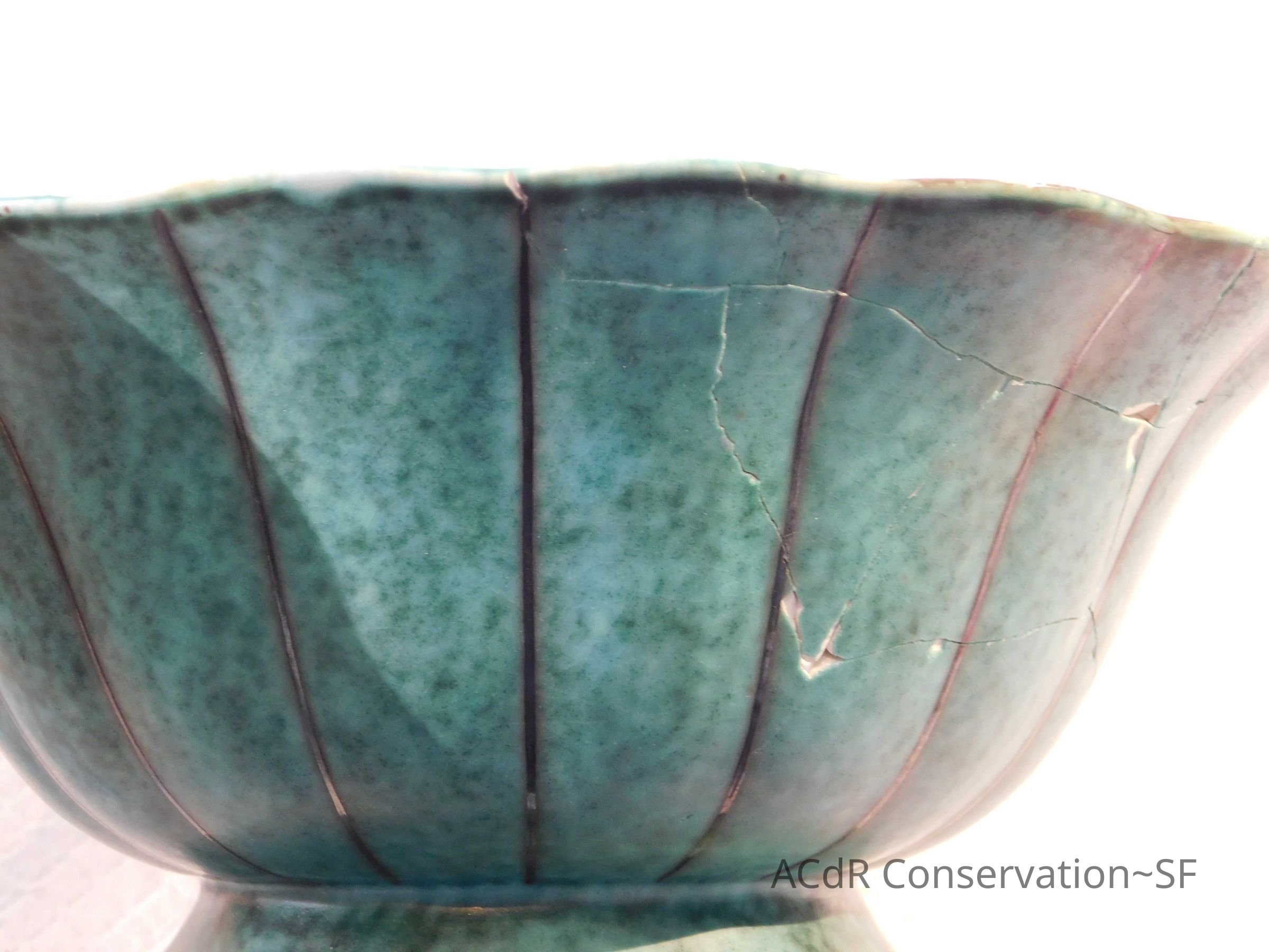 Applied barrier B-72 layer to edges with #4 Filbert “Snap” brush. Took photos. Began reassembly with B-72 and paint brush. In-filling with modostuc. Fills done and two chips re-adhered with suction tweezers. Fill touch-ups and sealing with B-72. Cleaned excess B-72