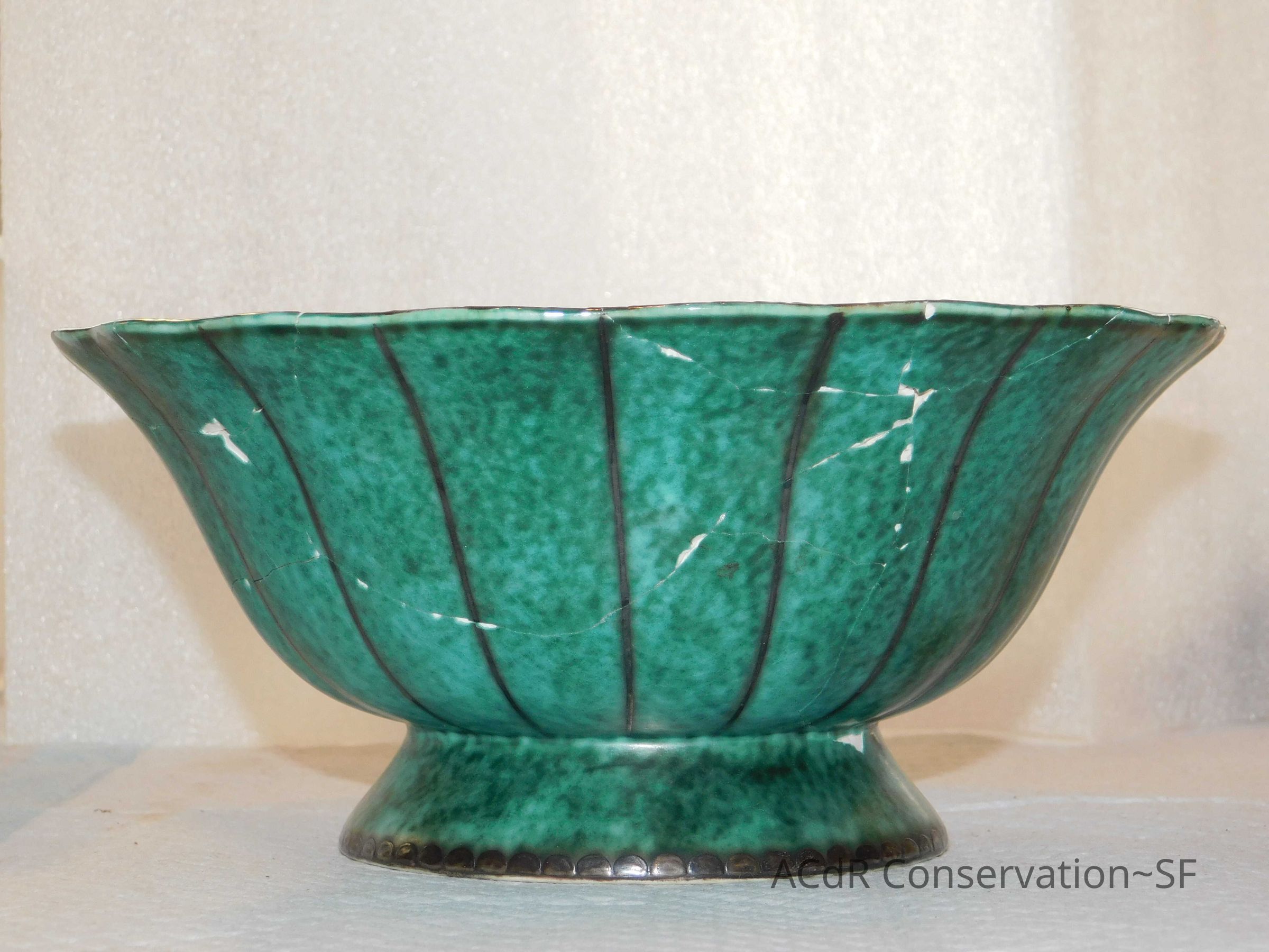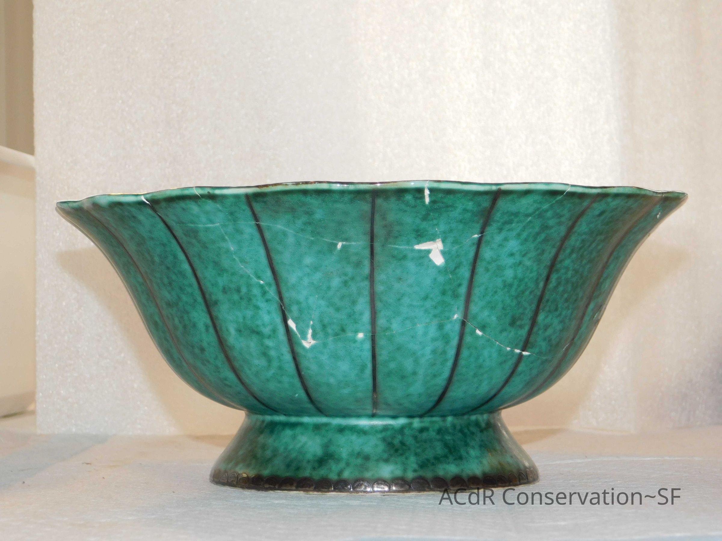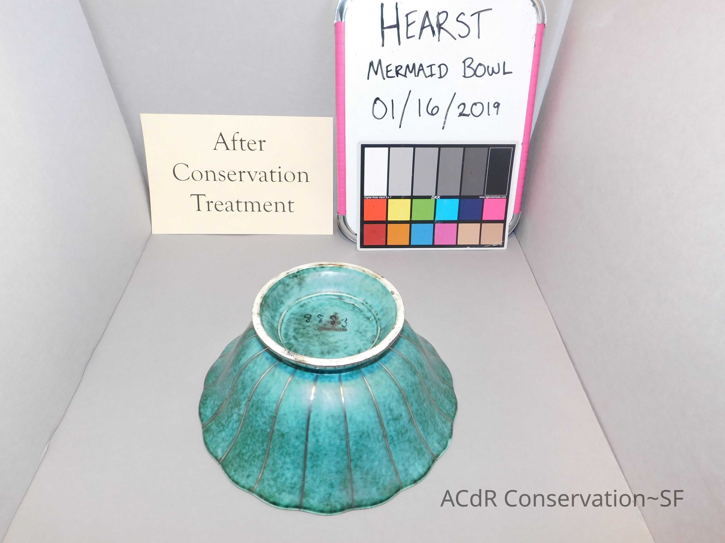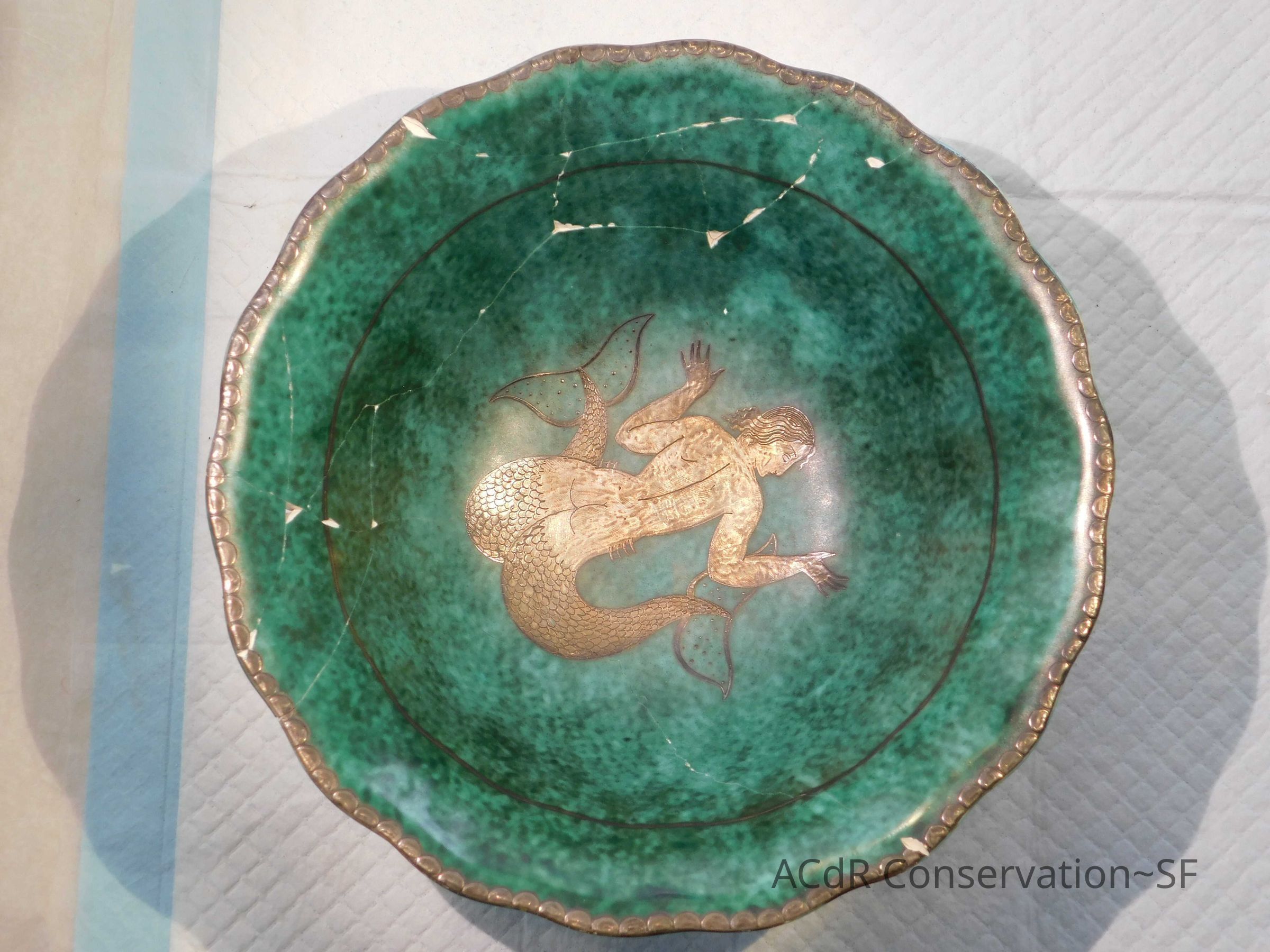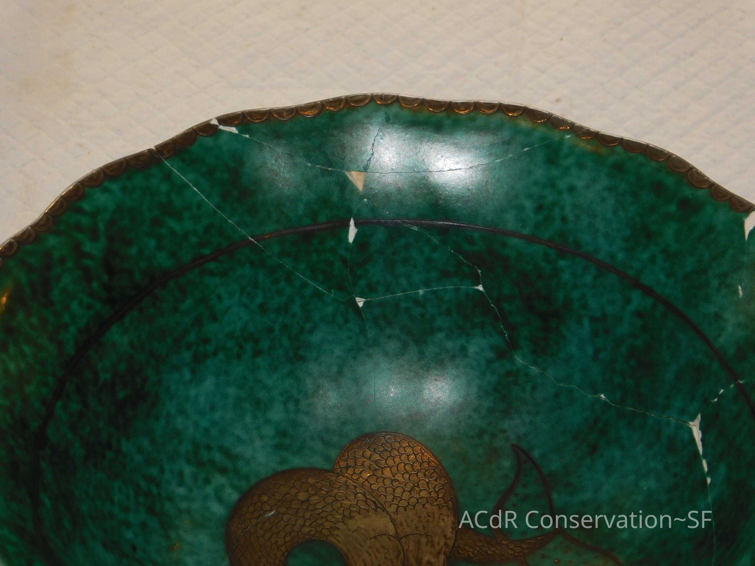 Applied barrier B-72 layer to edges with #4 Filbert “Snap” brush. Took photos. Began reassembly with B-72 and paint brush. In-filling with modostuc. Fills done and two chips re-adhered with suction tweezers. Fill touch-ups and sealing with B-72. Cleaned excess B-72