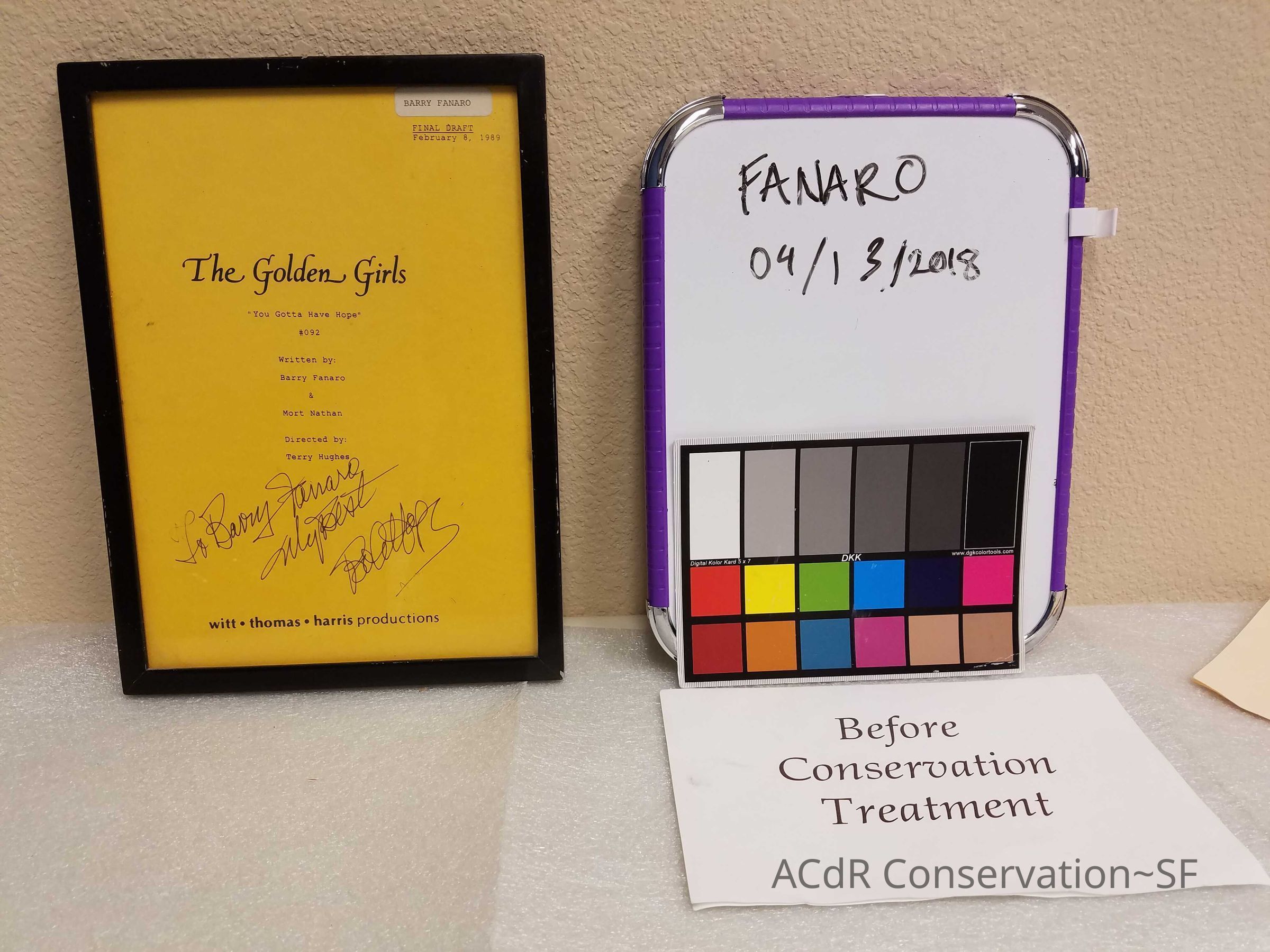 Project Gallery Go back Prev Next Golden girls framed title Object/ArtifactConservationTreatmentAcute TreatmentGeneral RepairDate(s)Apr 13, 2018