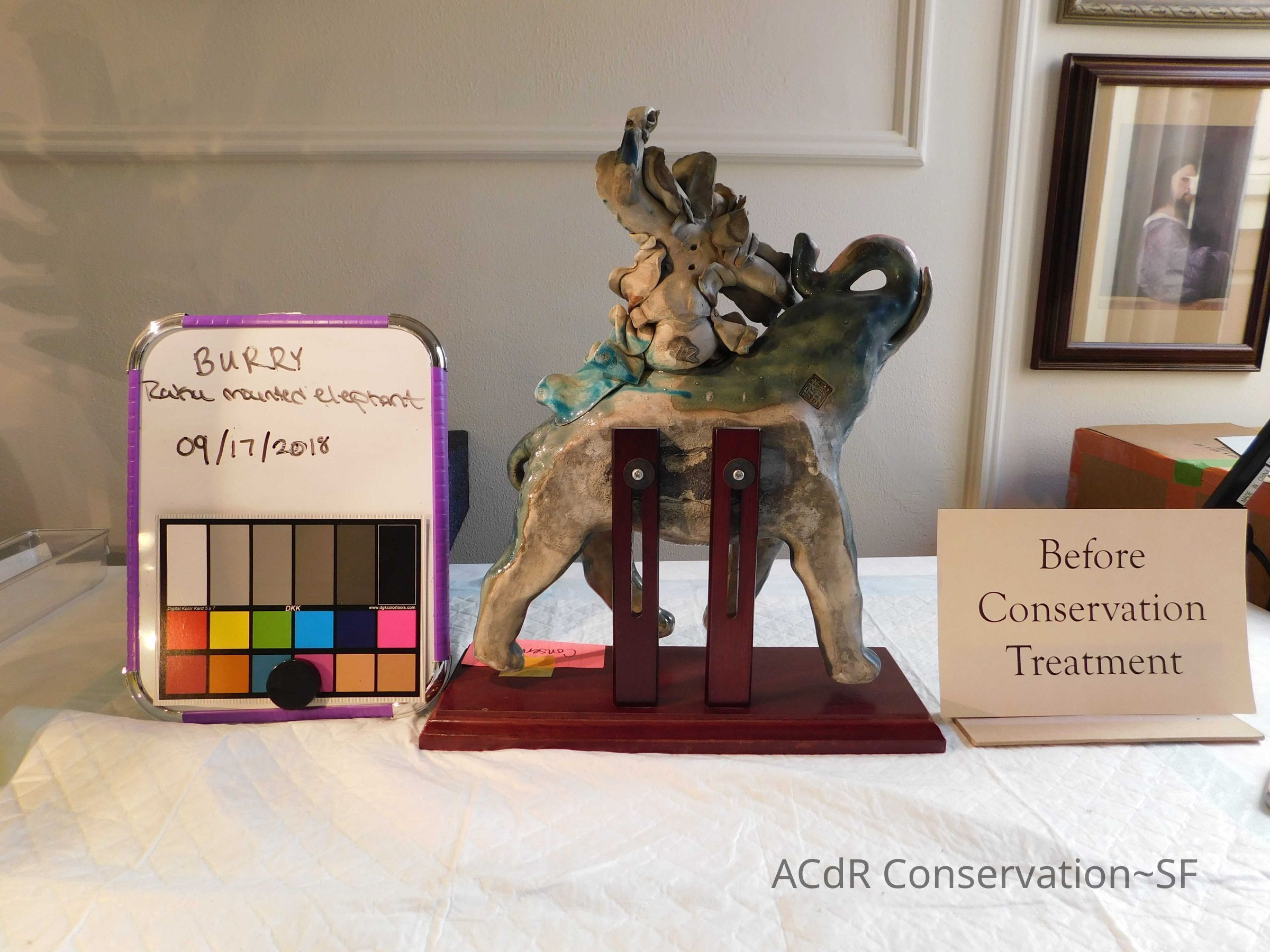 Project Gallery Go back Prev Next Raku Mounted Elephant CeramicConservationConservation PurposeDisaster RecoveryTreatmentAcute TreatmentGeneral CleaningDate(s)Sep 17, 2018