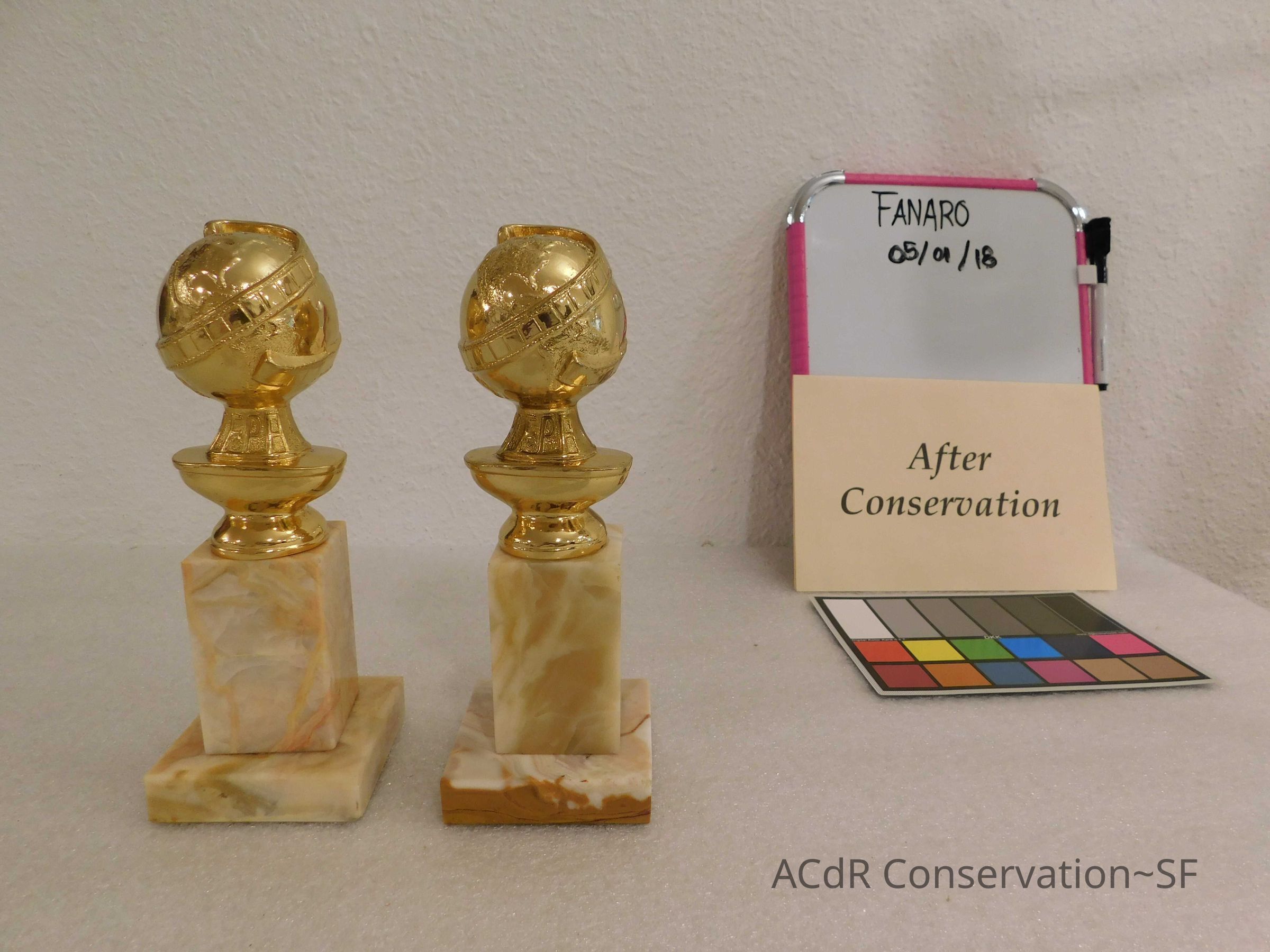 Project Gallery Go back Prev Next Emmy with two golden globes Object/ArtifactConservationConservation PurposeDisaster RecoveryTreatmentAcute TreatmentGeneral CleaningDate(s)Apr 18, 2018