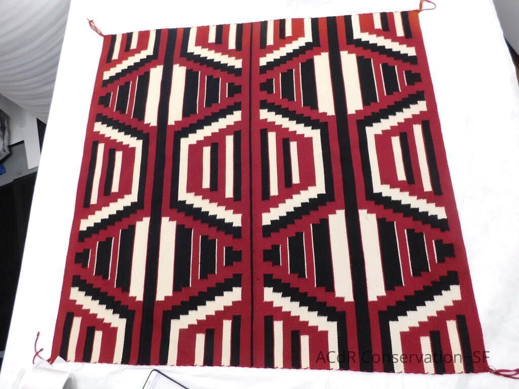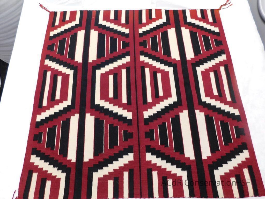 Project Gallery Go back Navajo Rug Navajo Rug or TextileDescriptionDeep red/black/white shirt stripes & diamondsEntry/Object ID#82