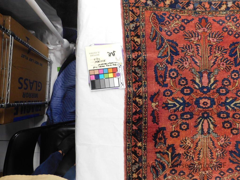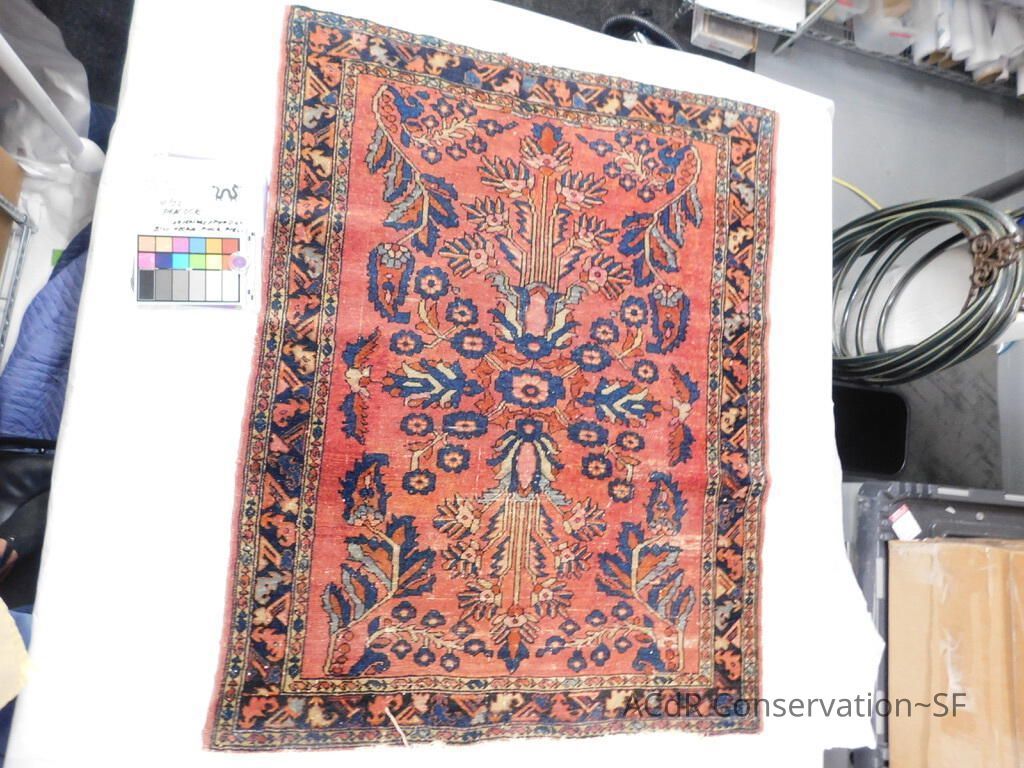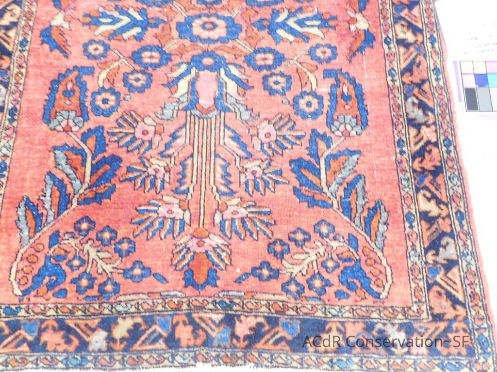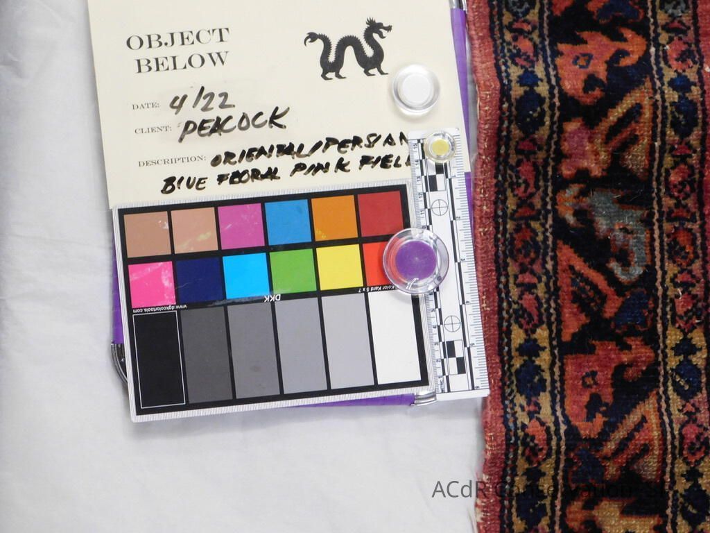 Project Gallery Go back Prev Next Oriental Rug TextileDescriptionPink/red with blue flowers and leaves, short fringeEntry/Object ID#174