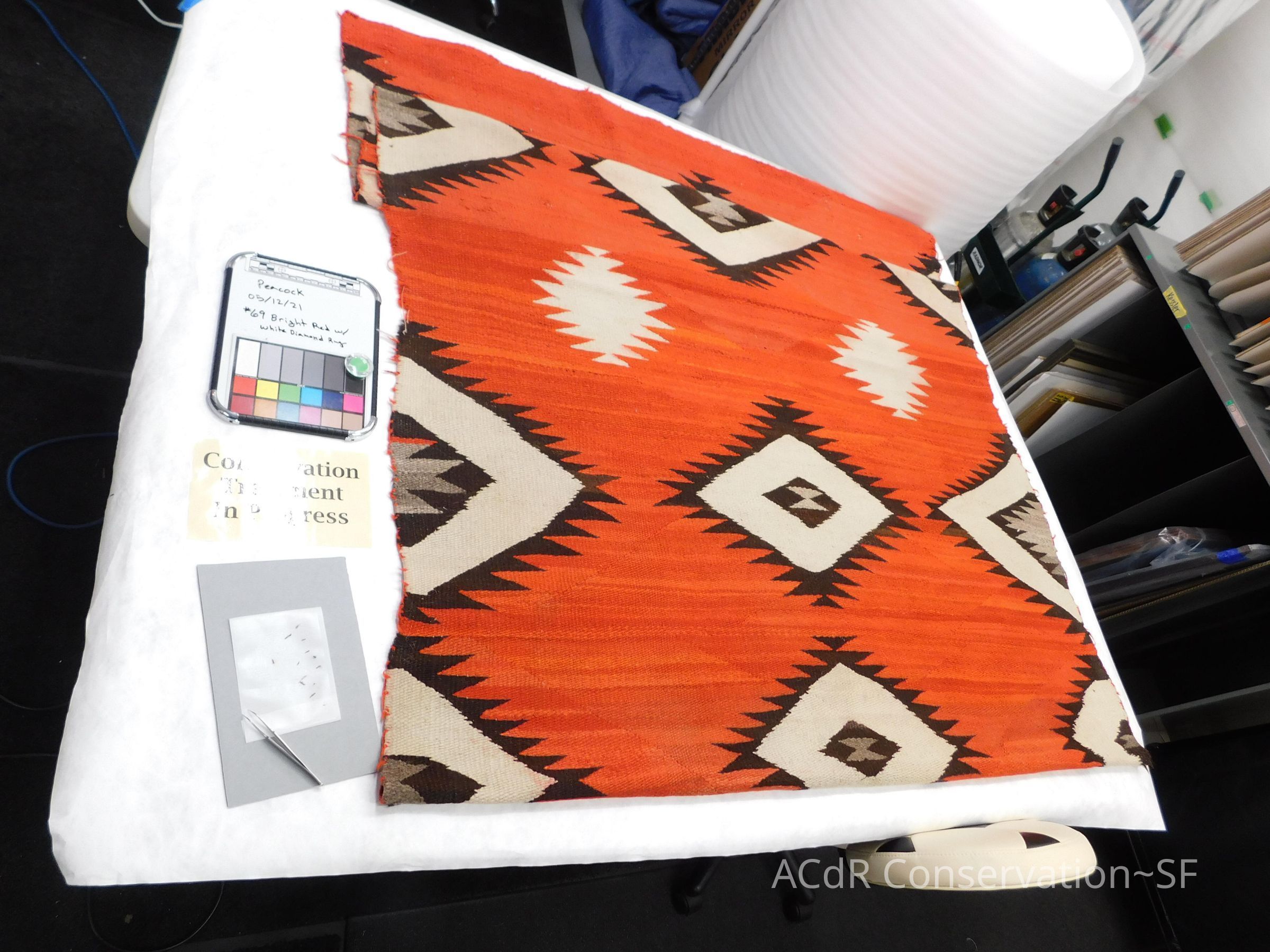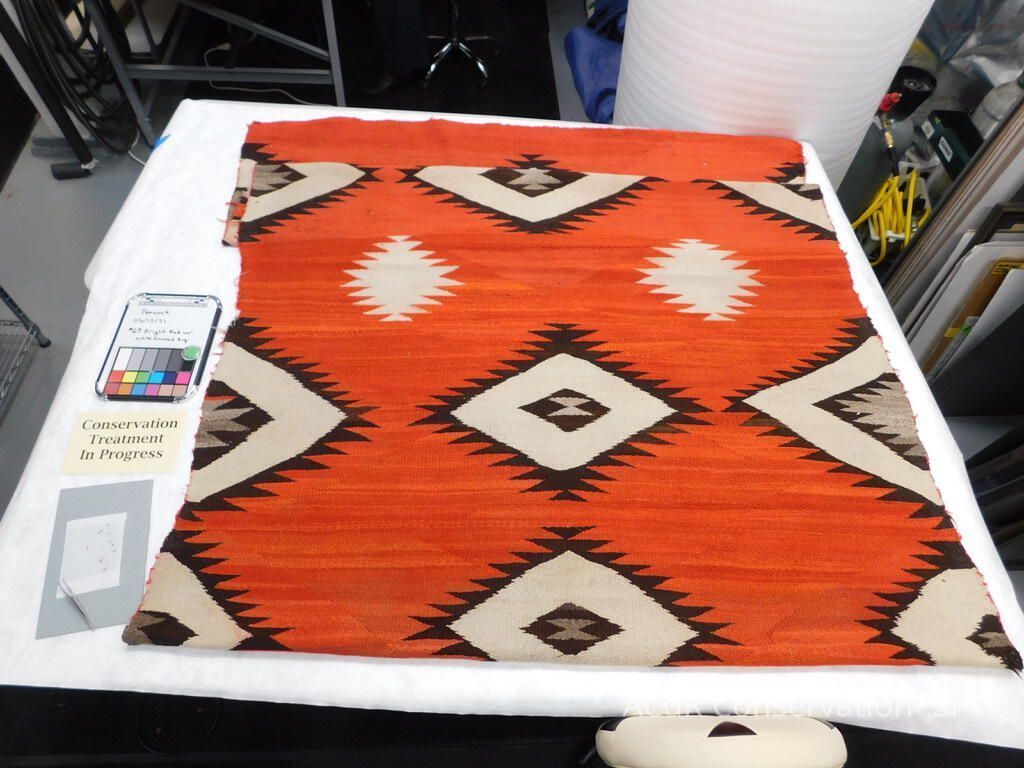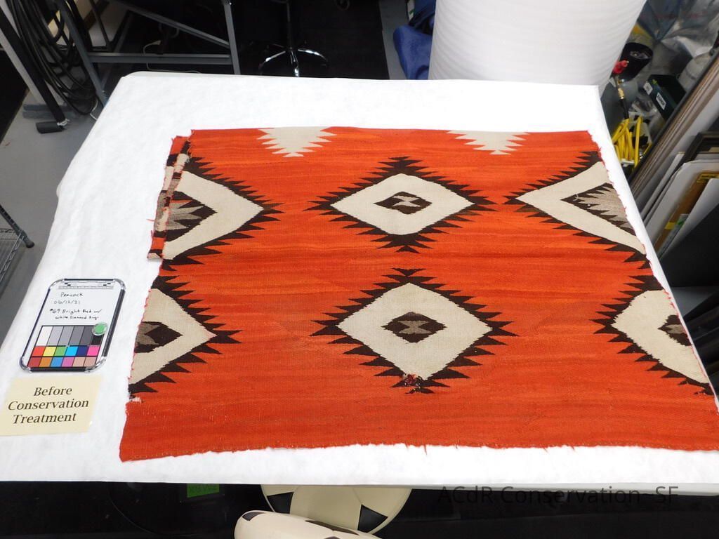 Project Gallery Go back Prev Next Navajo Rug Navajo Rug or TextileDescriptionBright red field with white diamonds with. Brown zigzag edgesEntry/Object ID#69