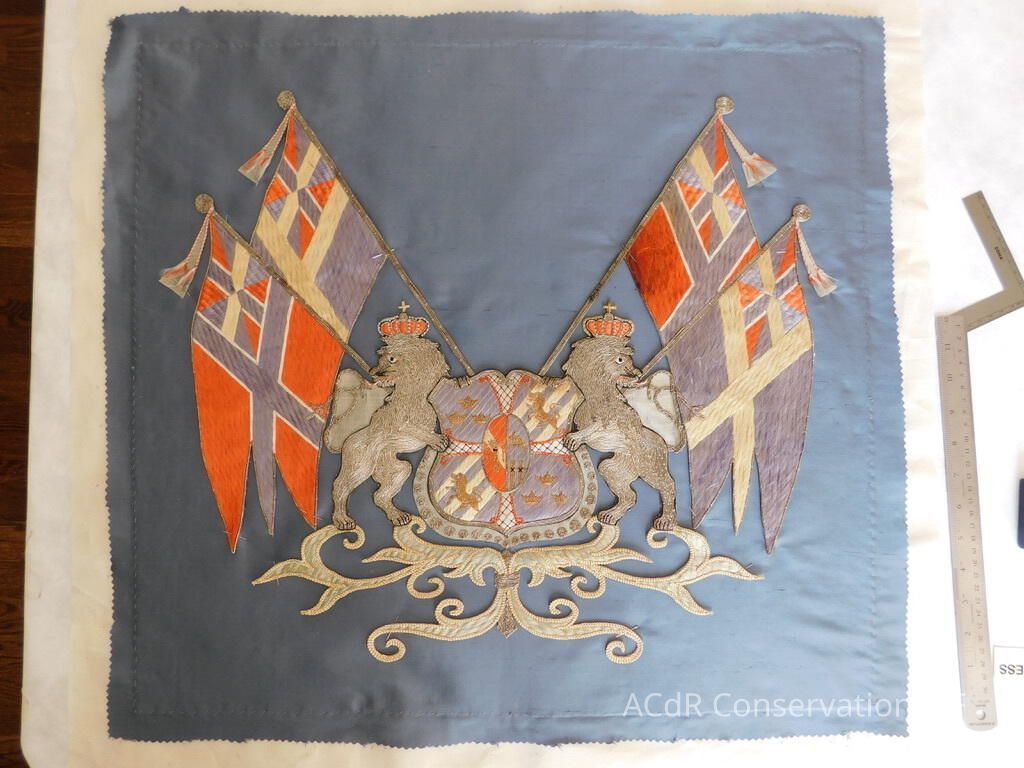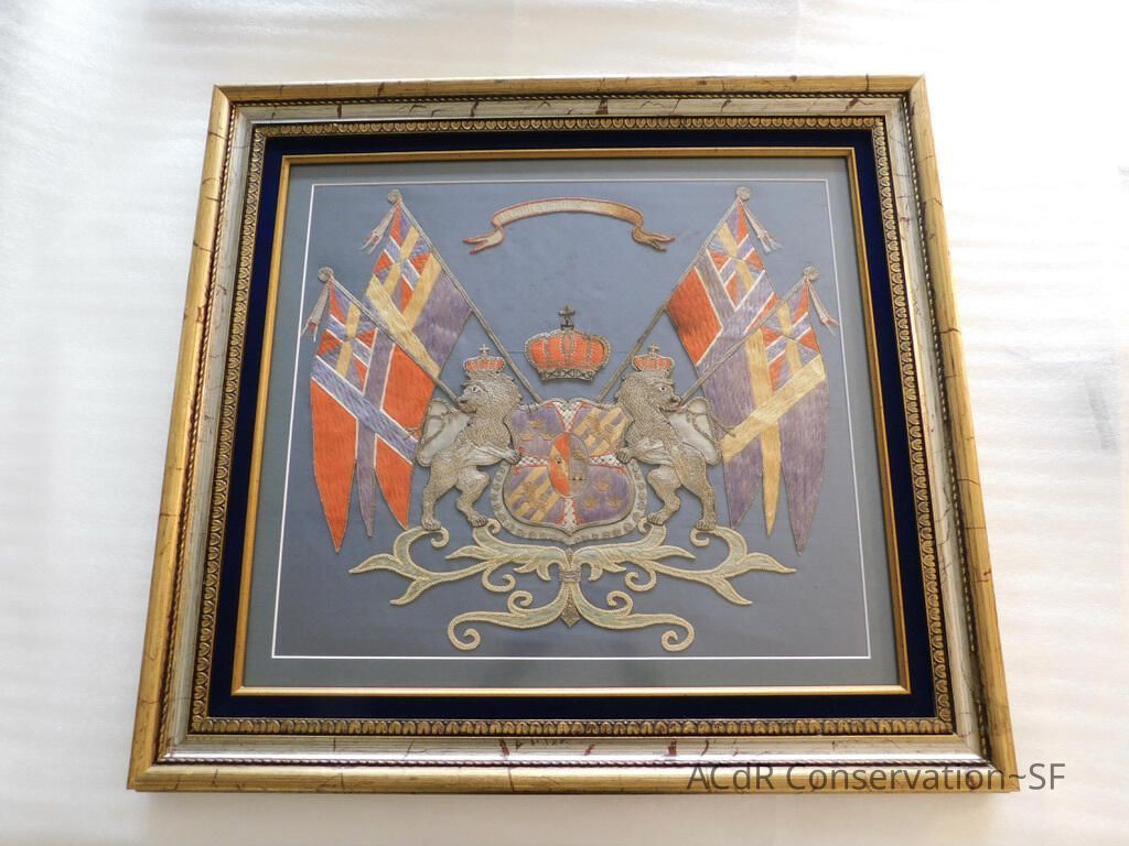 Project Gallery Go back Prev Next Client: Sondeno. Item: Swedish Royal Coat of Arms embroidery Textile