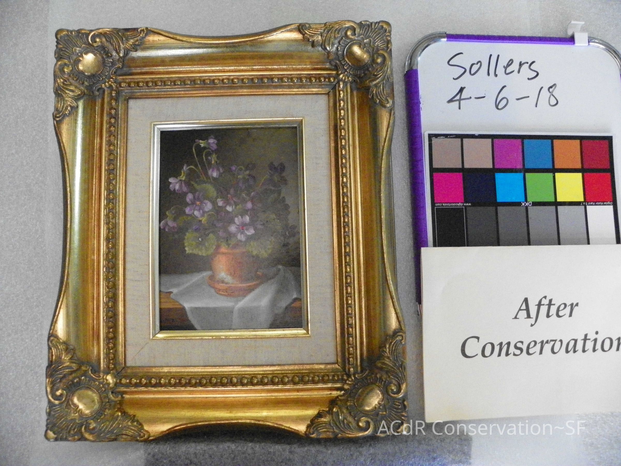 Project Gallery Go back Prev Next Violets PaintingConservationConservation PurposeDisaster RecoveryTreatmentAcute TreatmentGeneral RepairDate(s)Apr 9, 2018