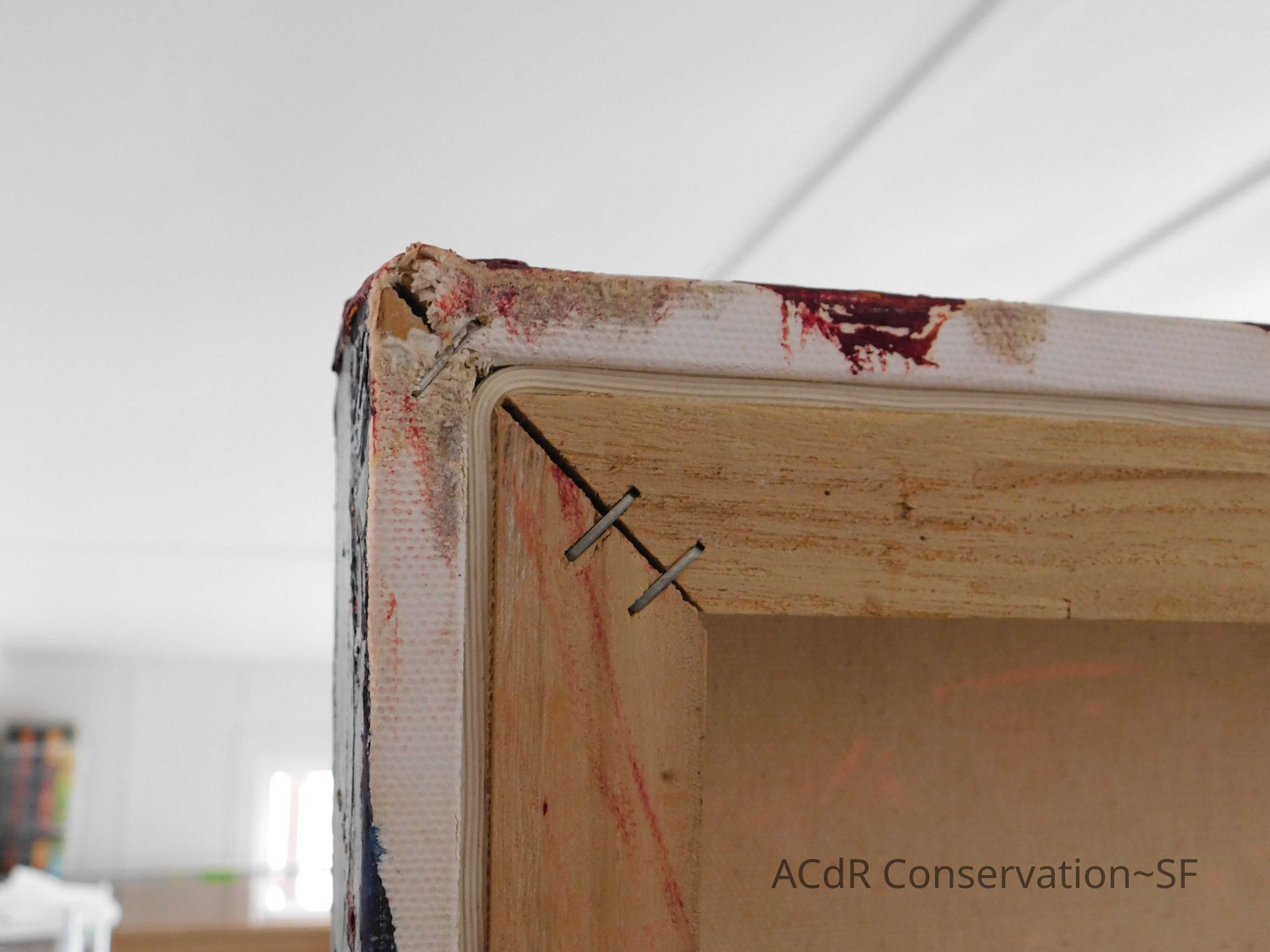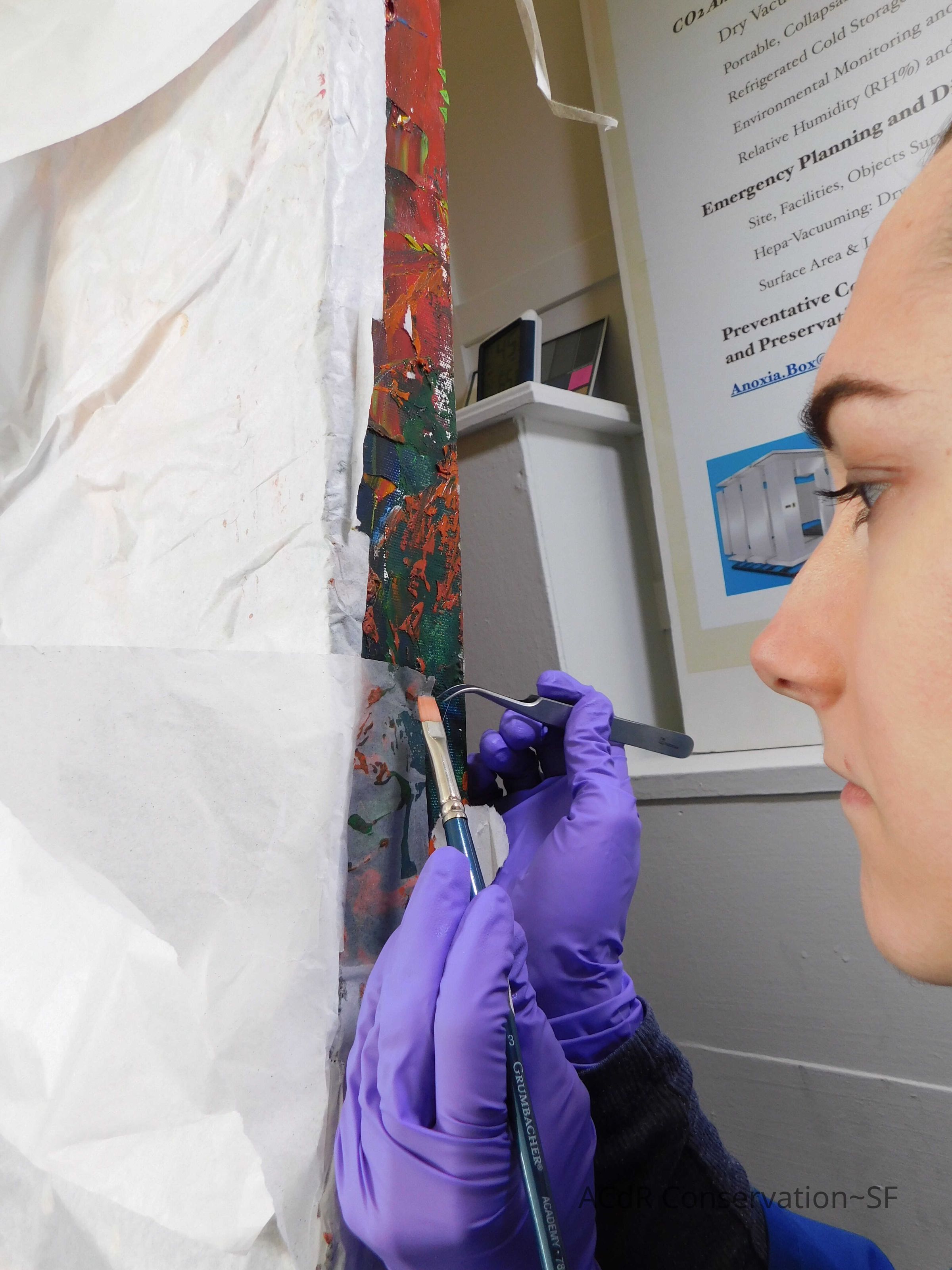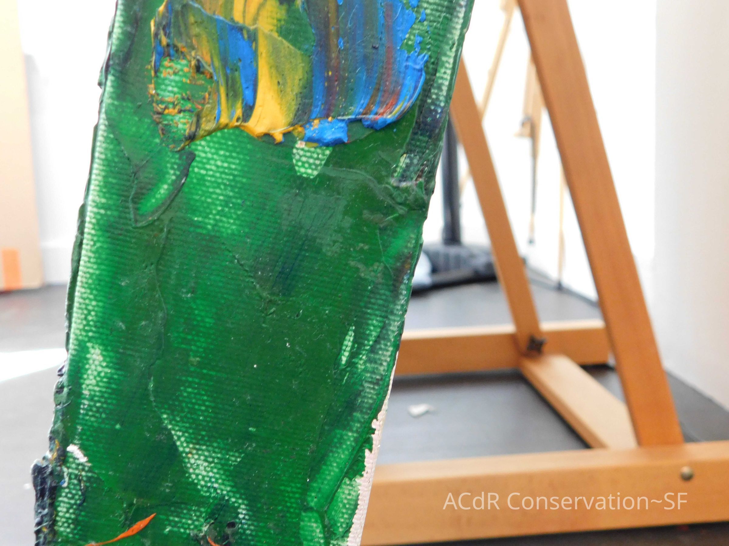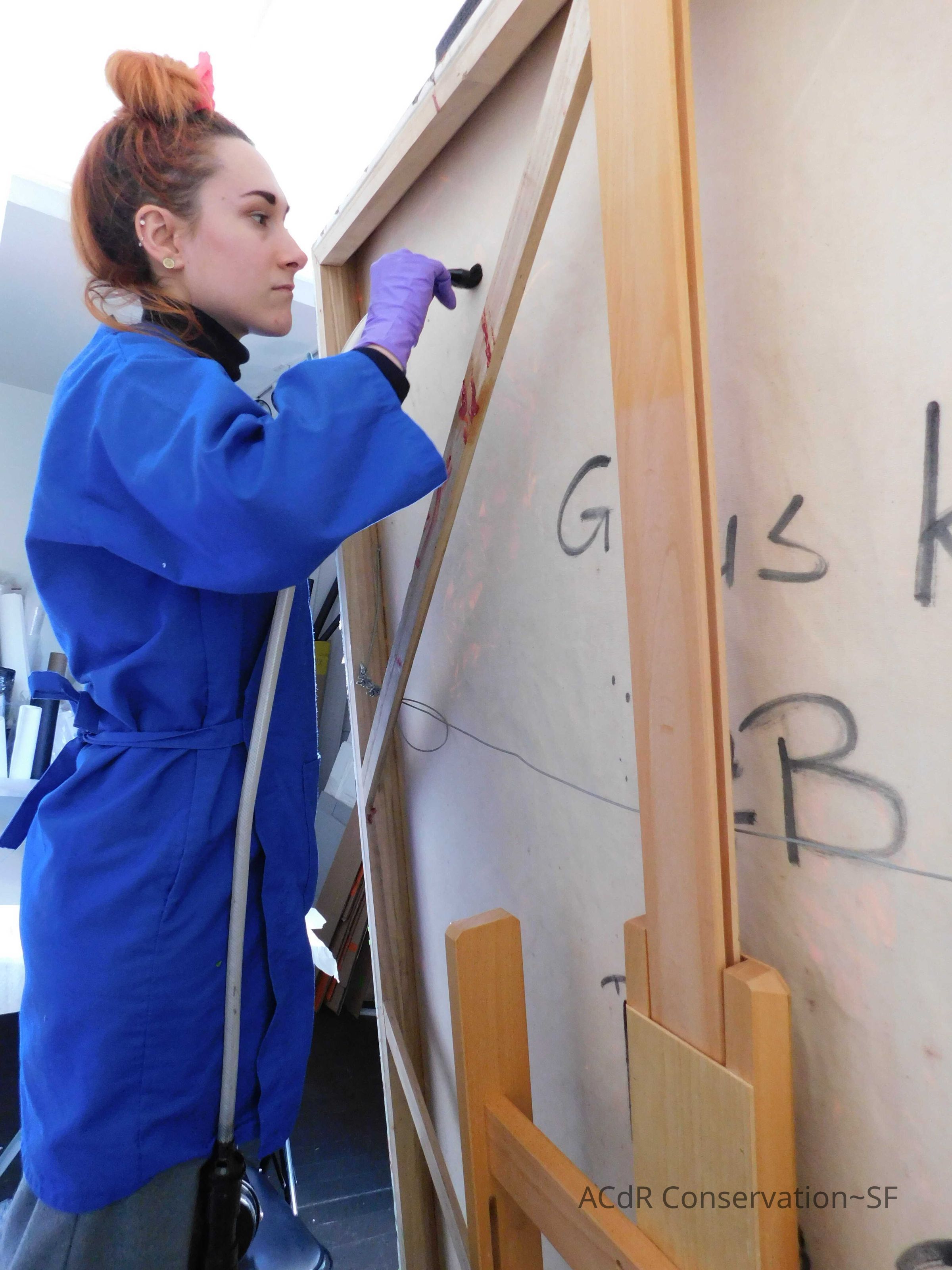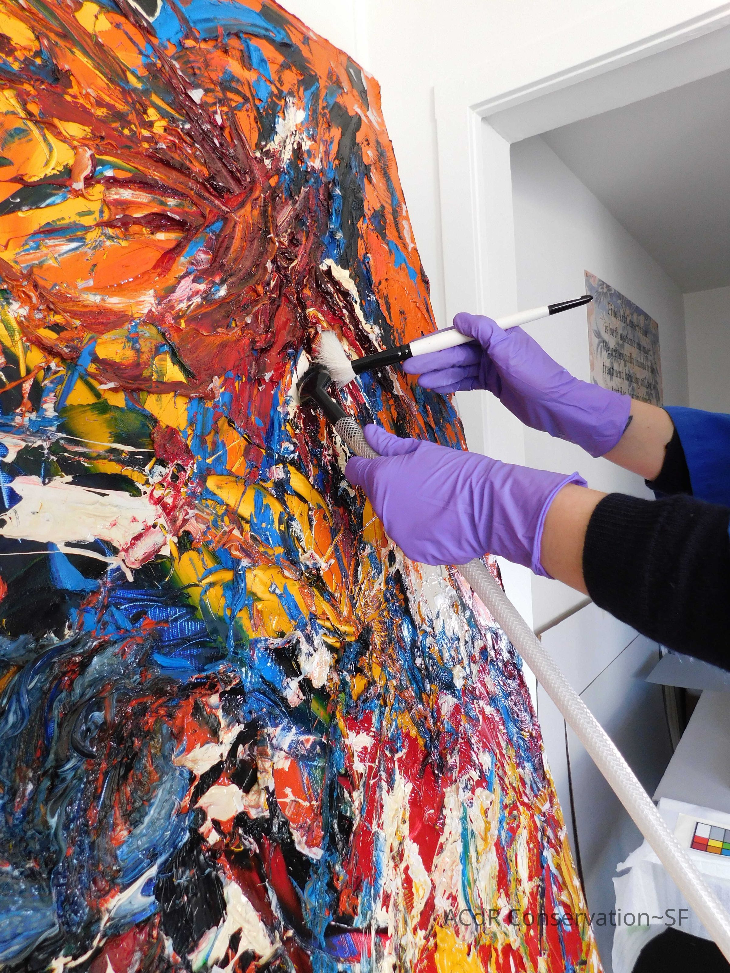 Brush vacuumed front an back of canvas/painting.