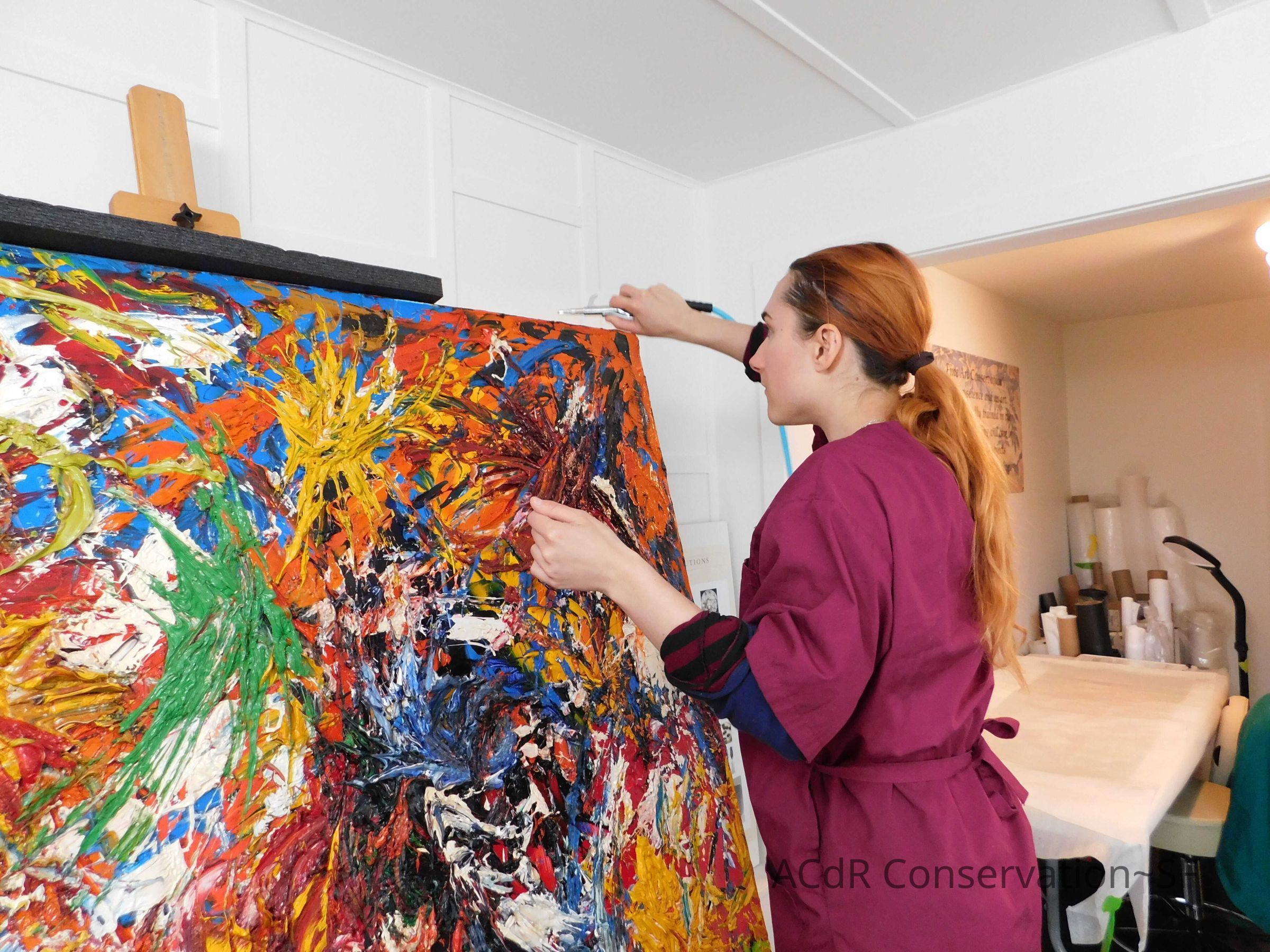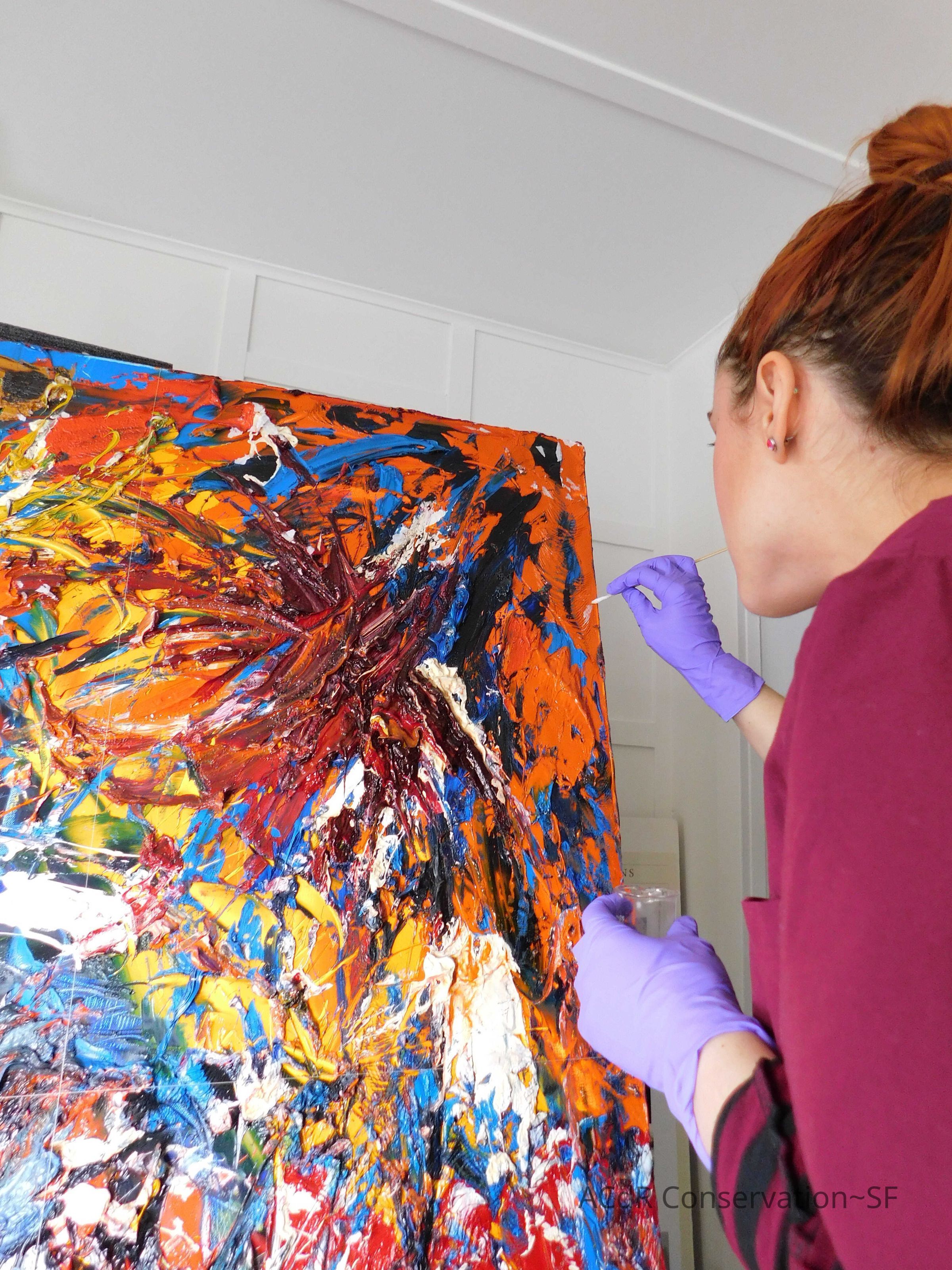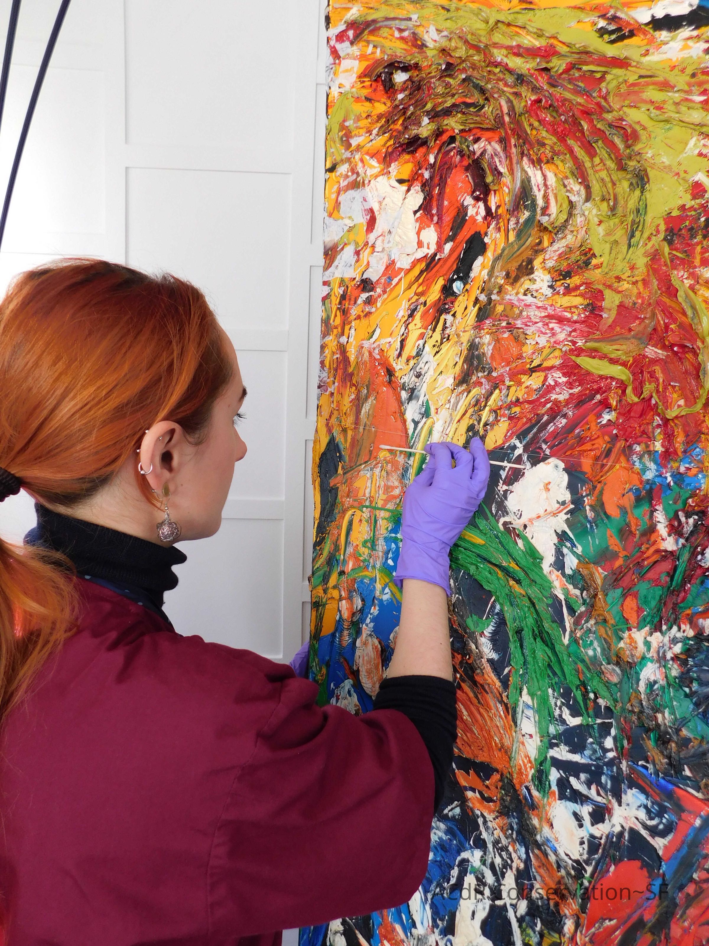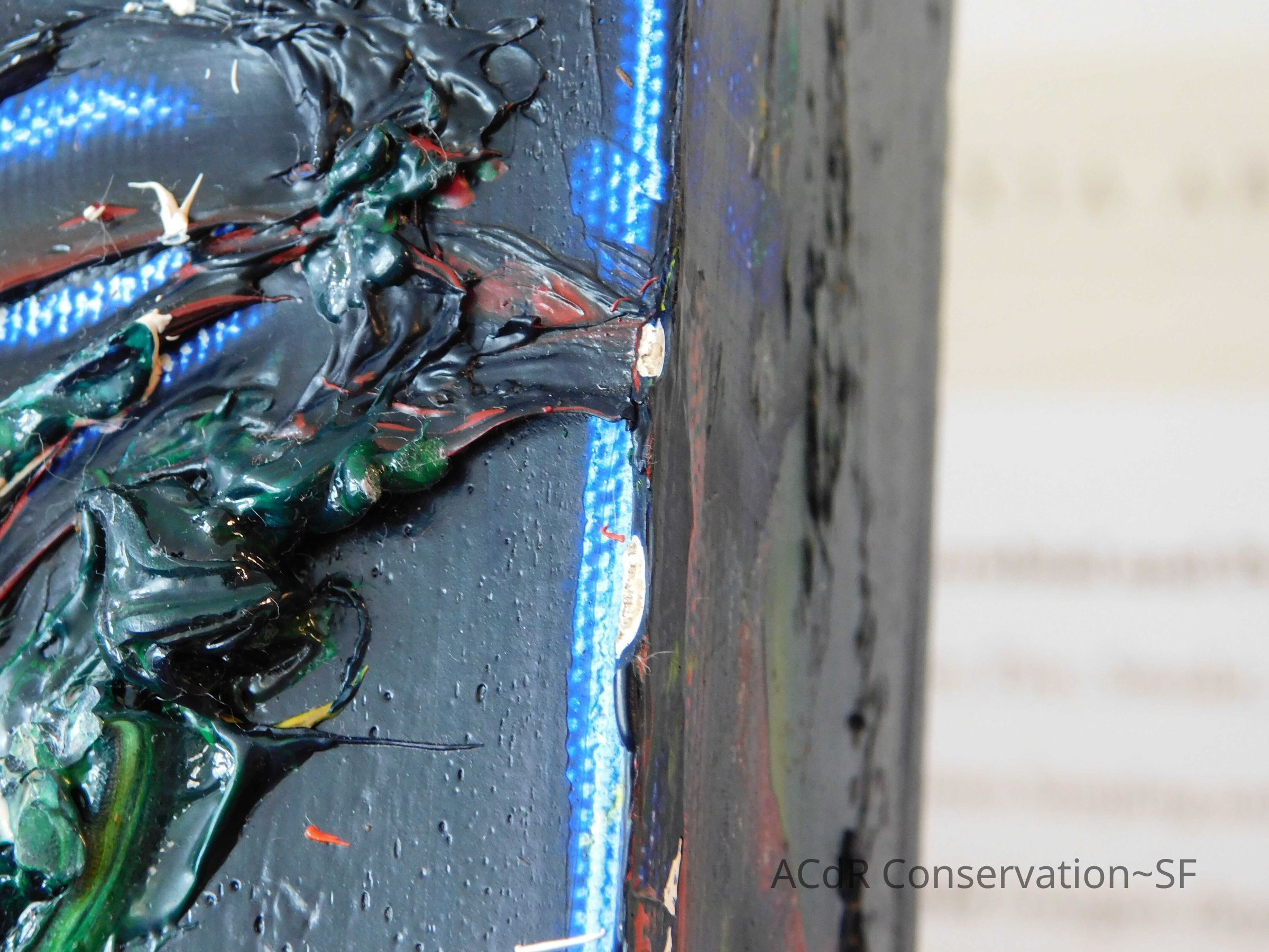 Brush vacuumed front an back of canvas/painting.