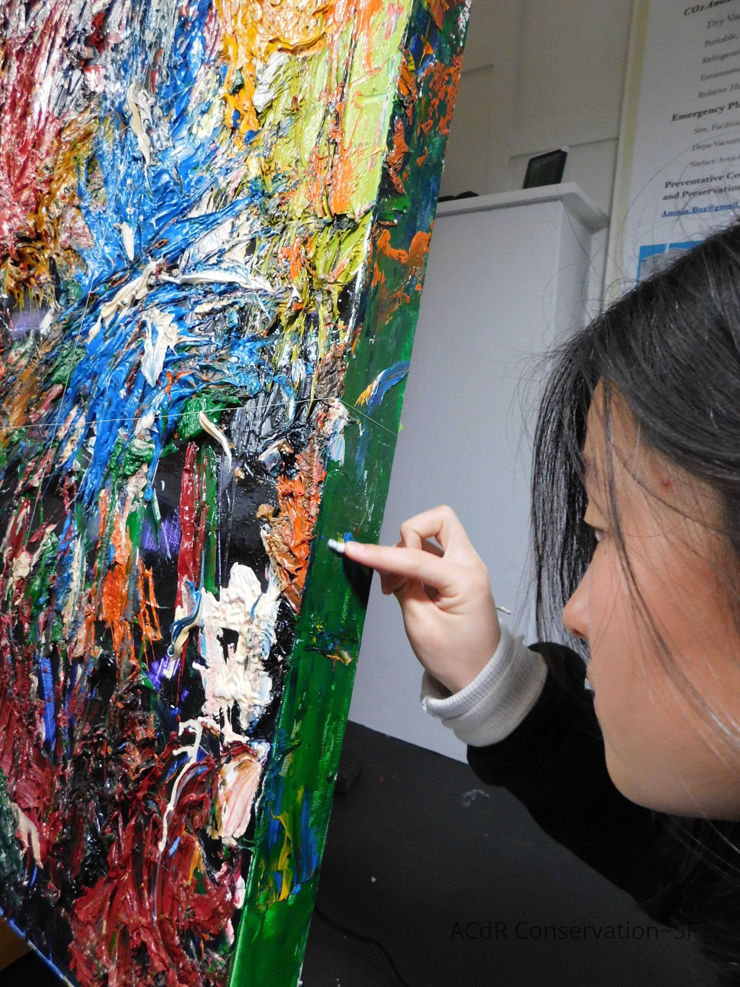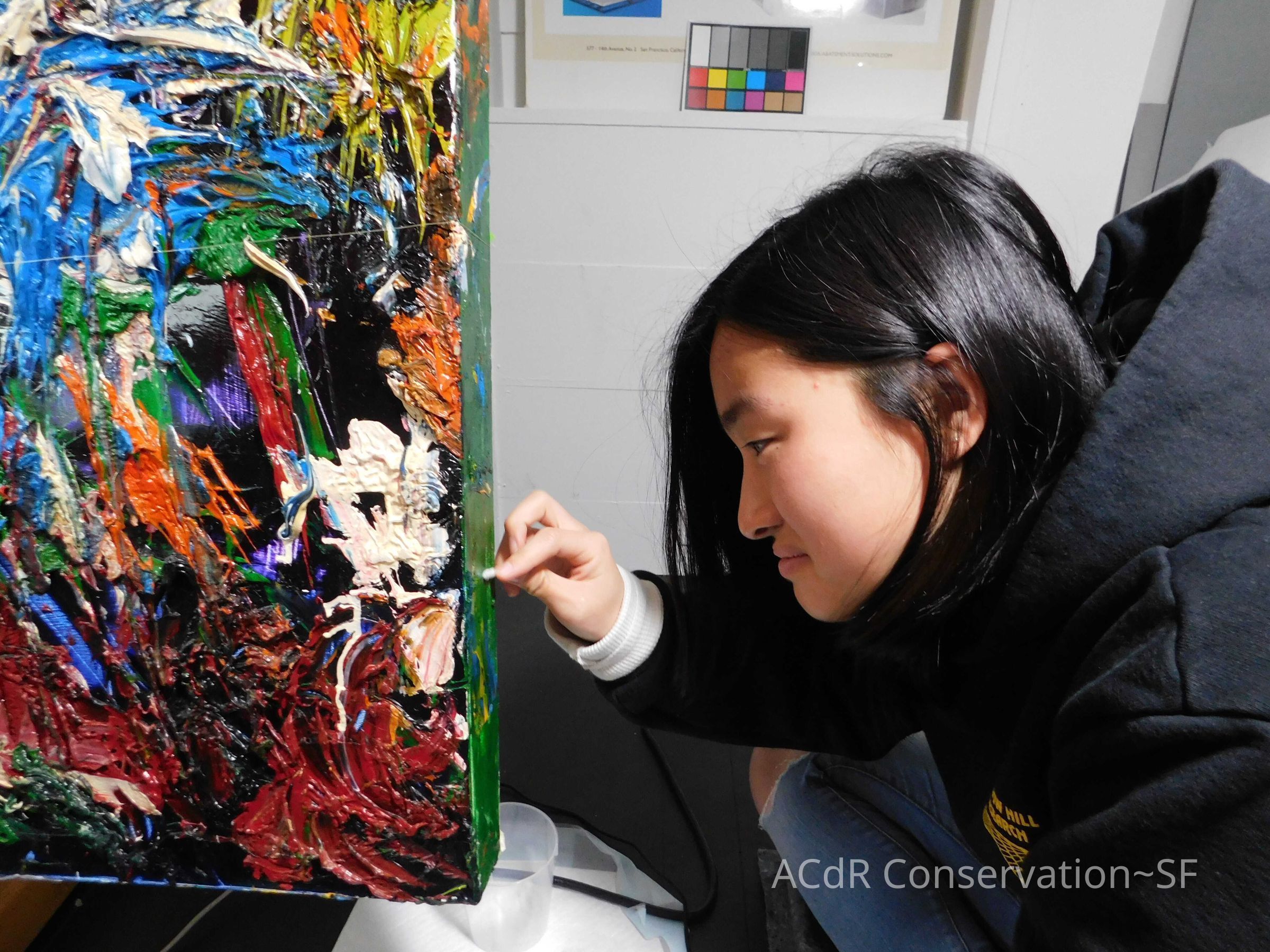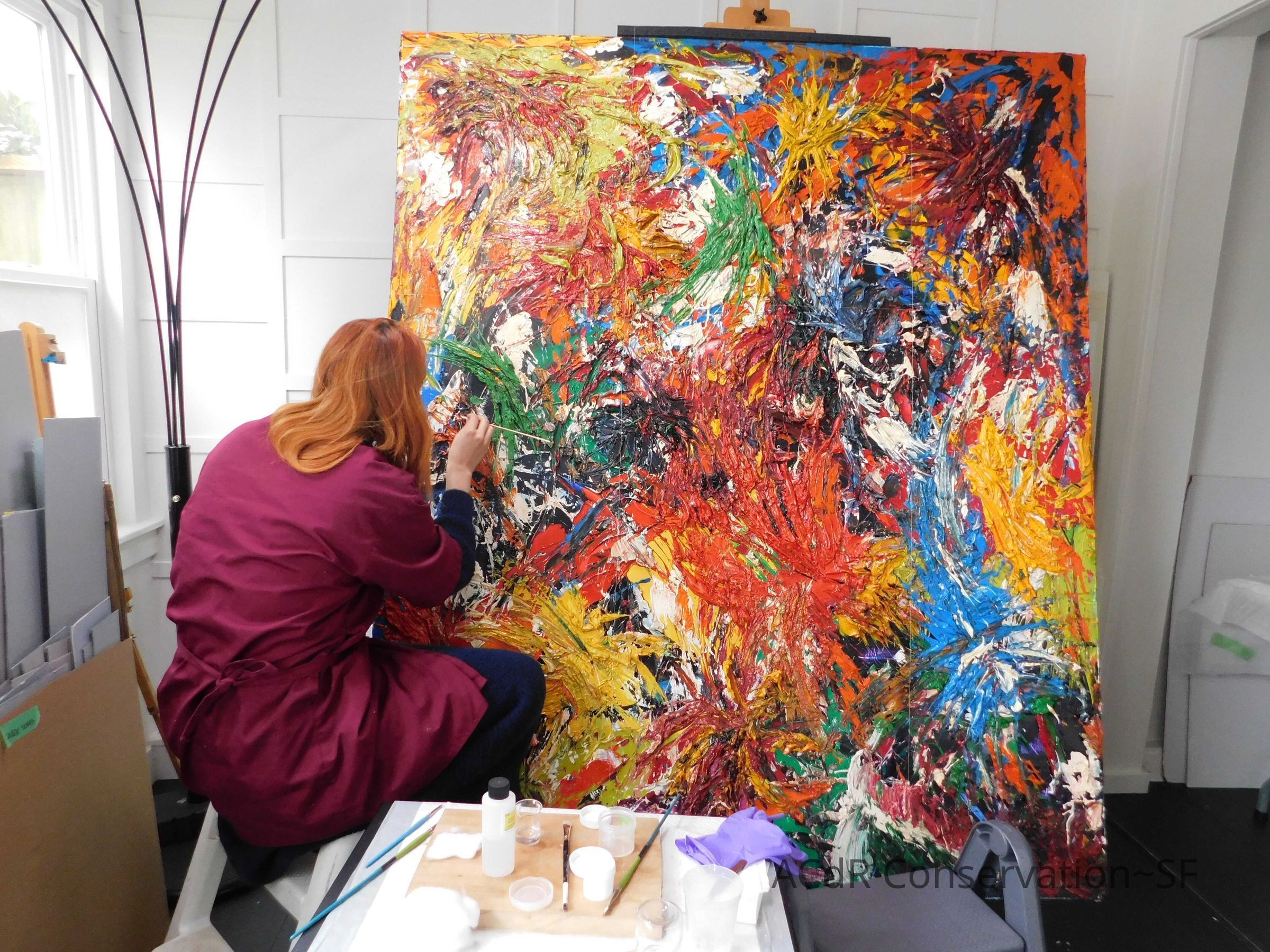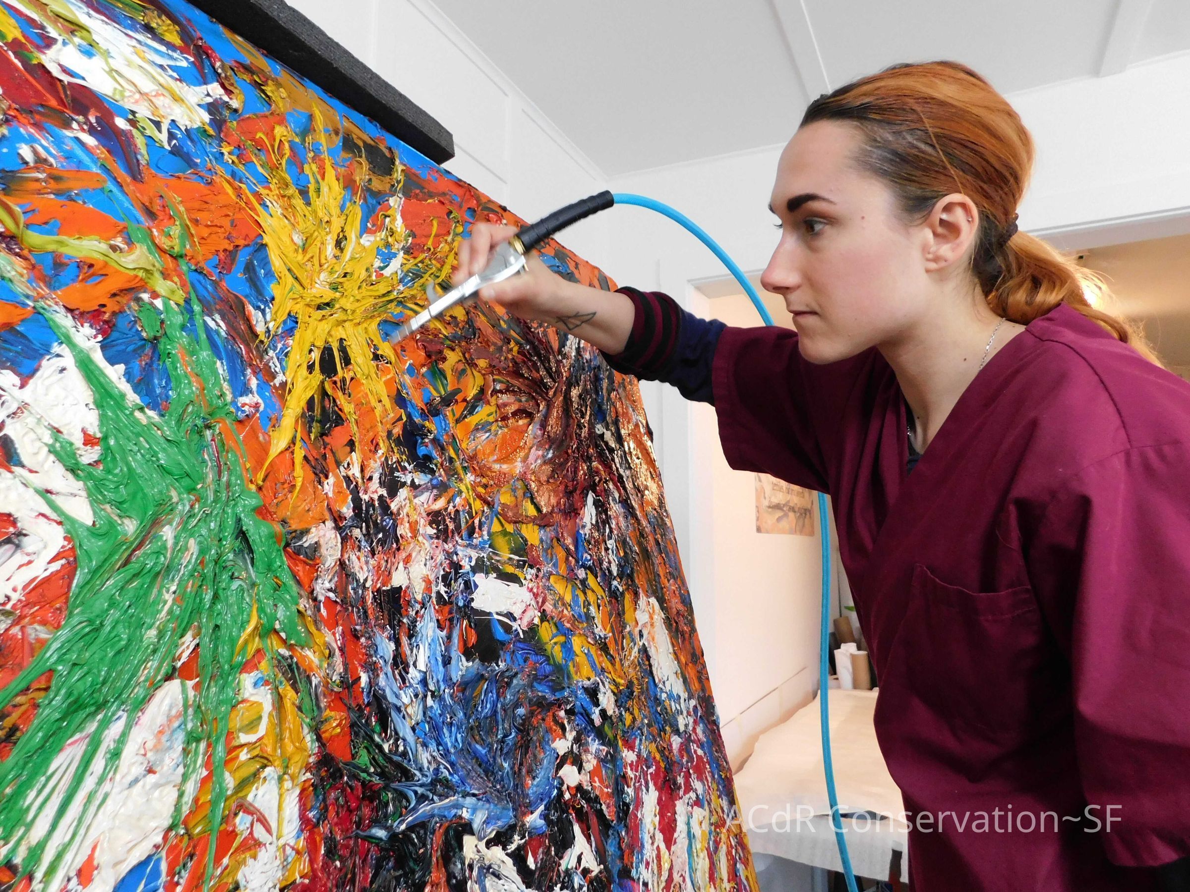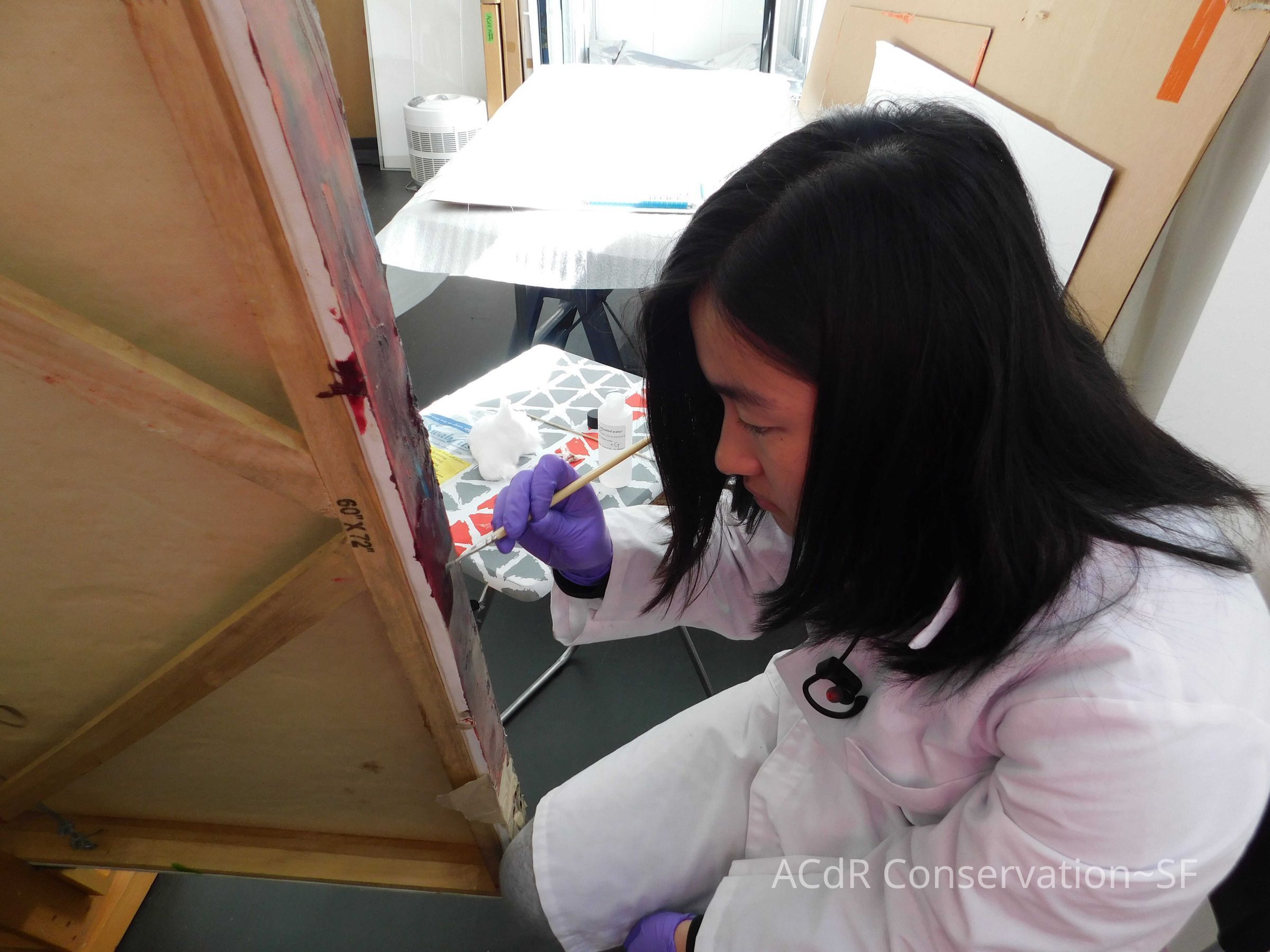 Brush vacuumed front an back of canvas/painting.