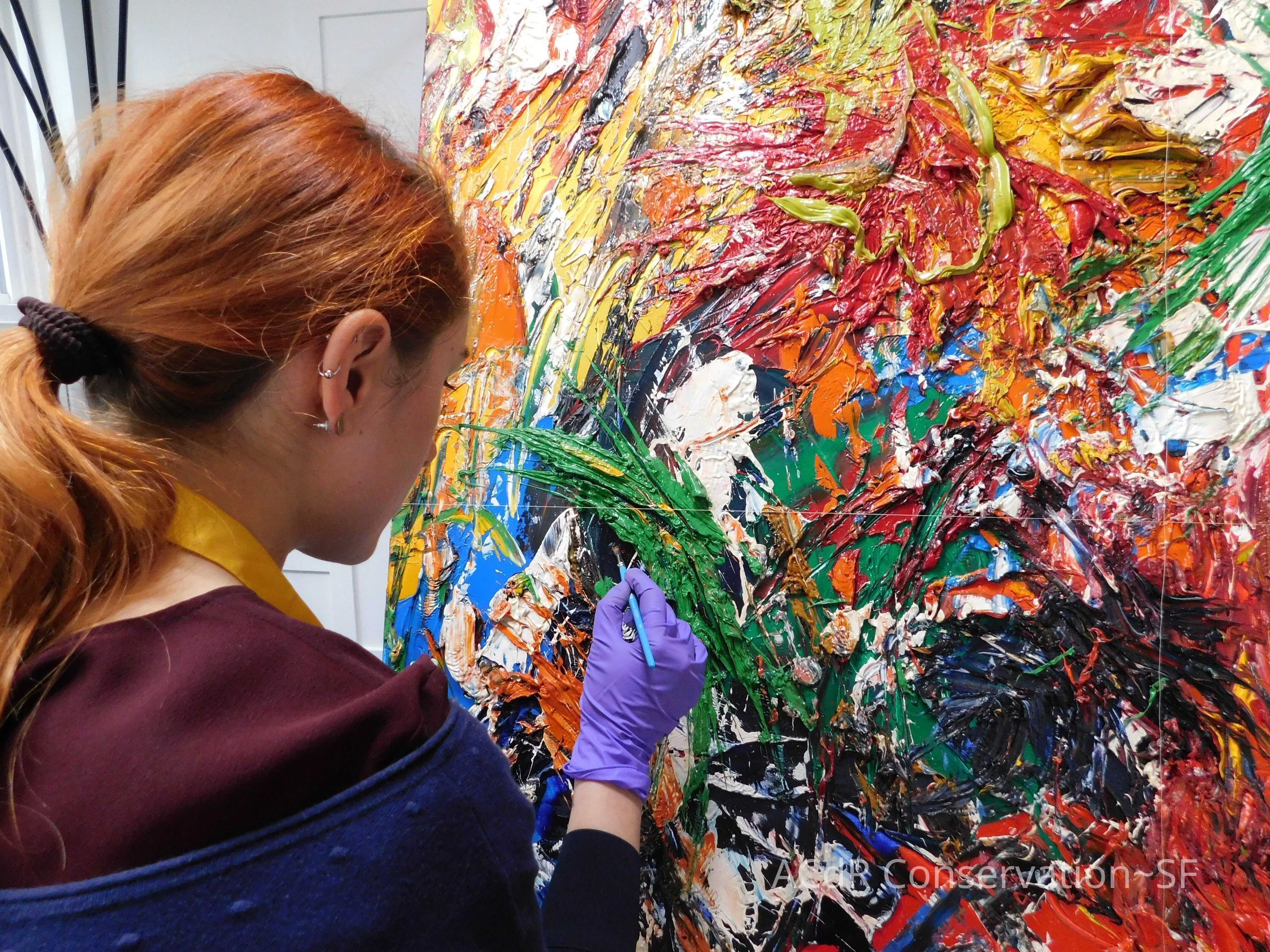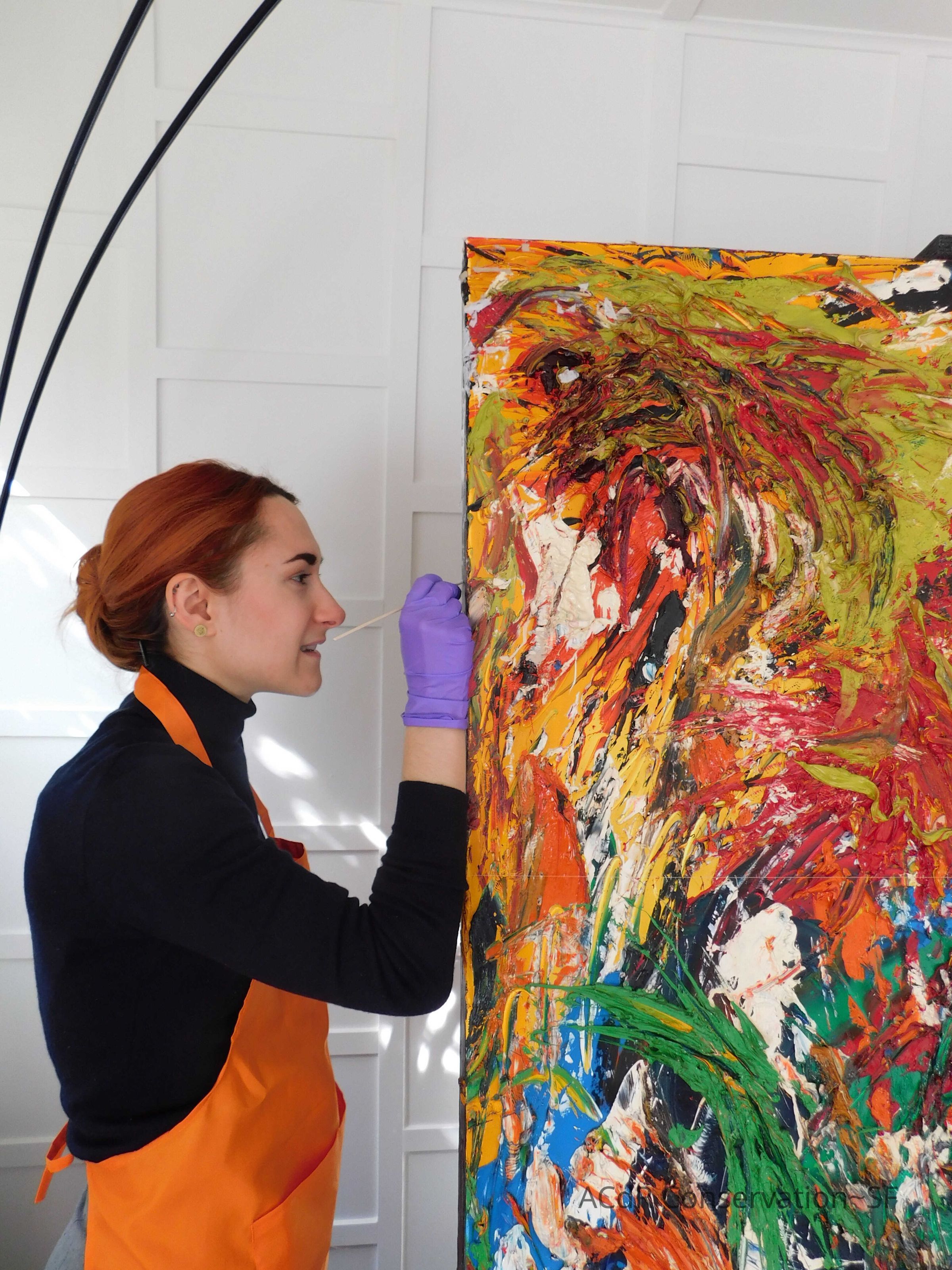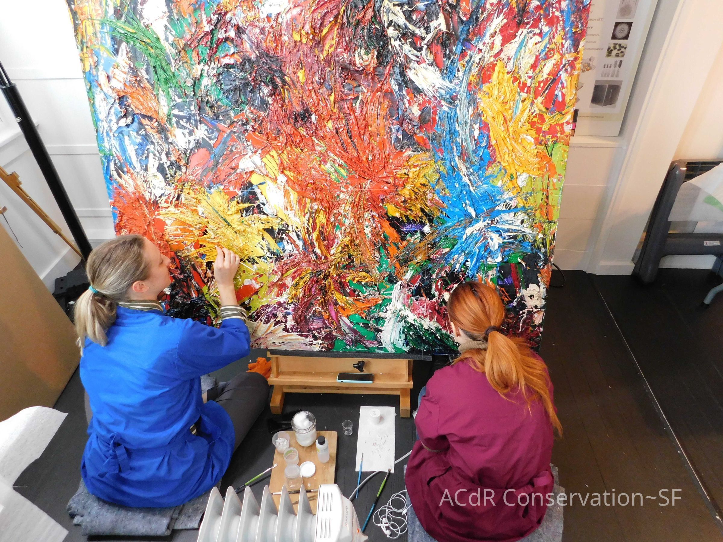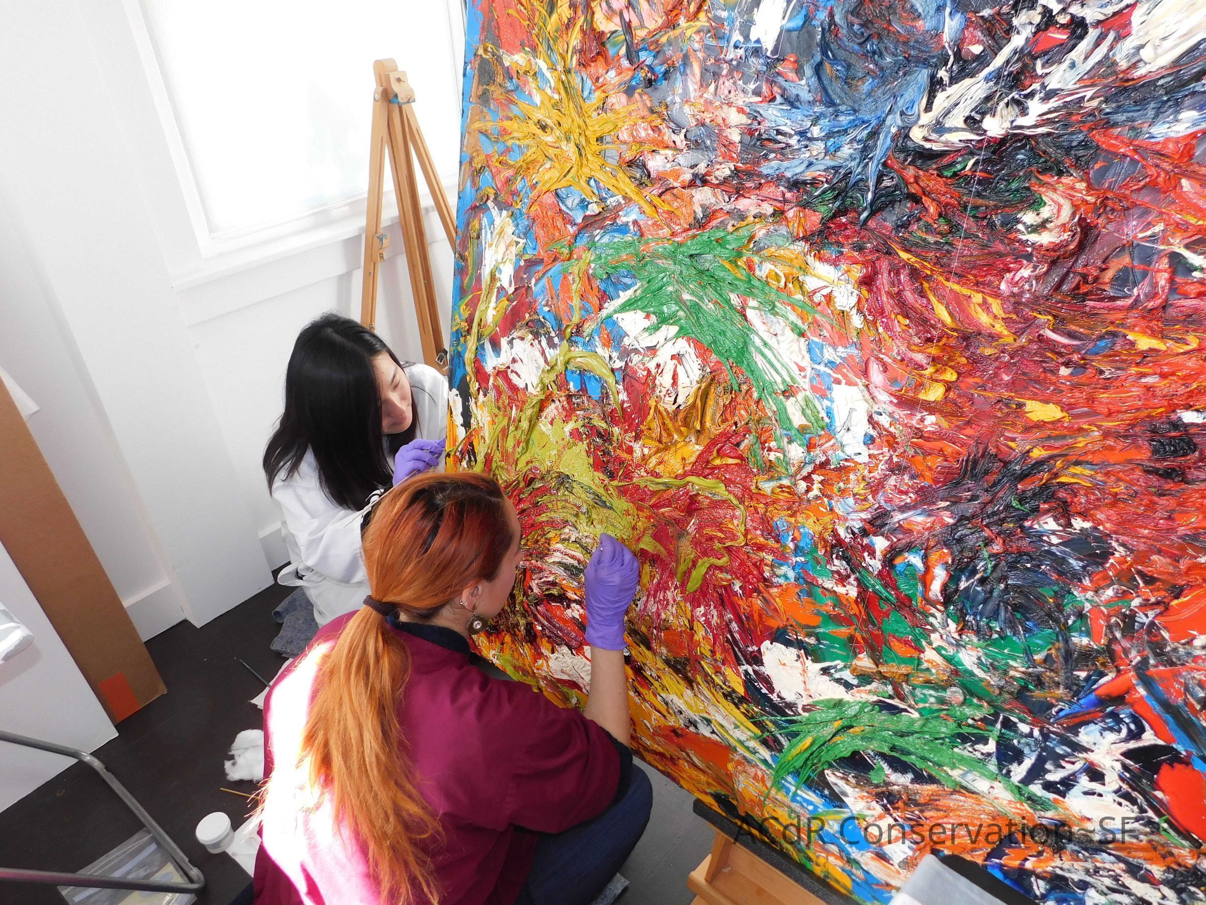 Brush vacuumed front an back of canvas/painting.