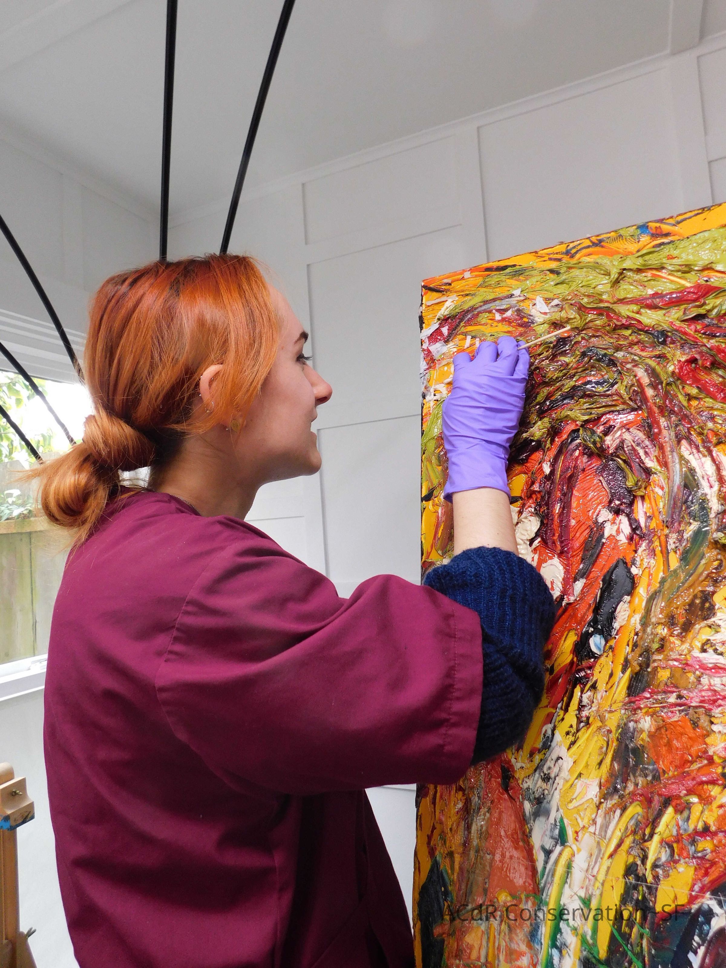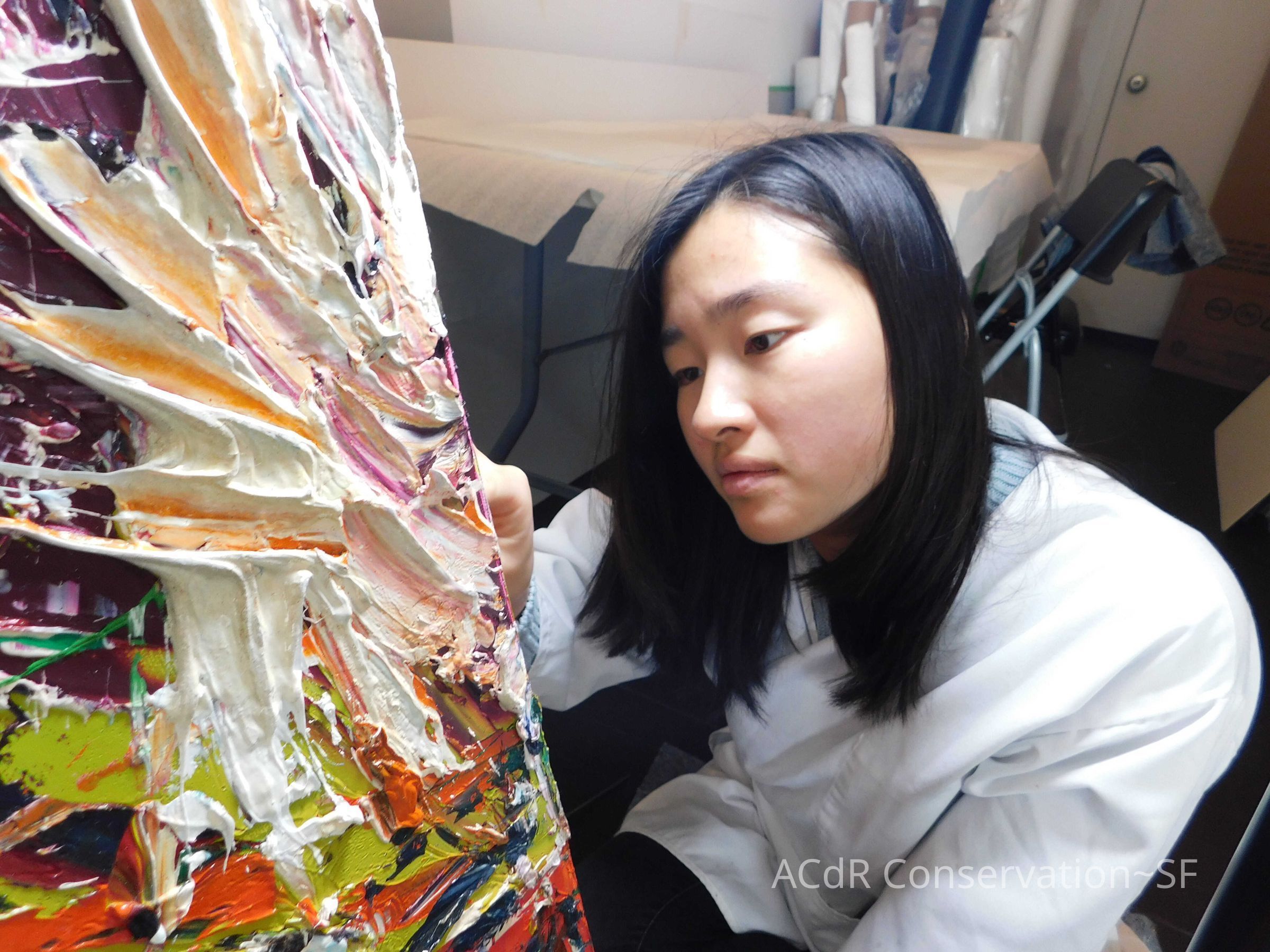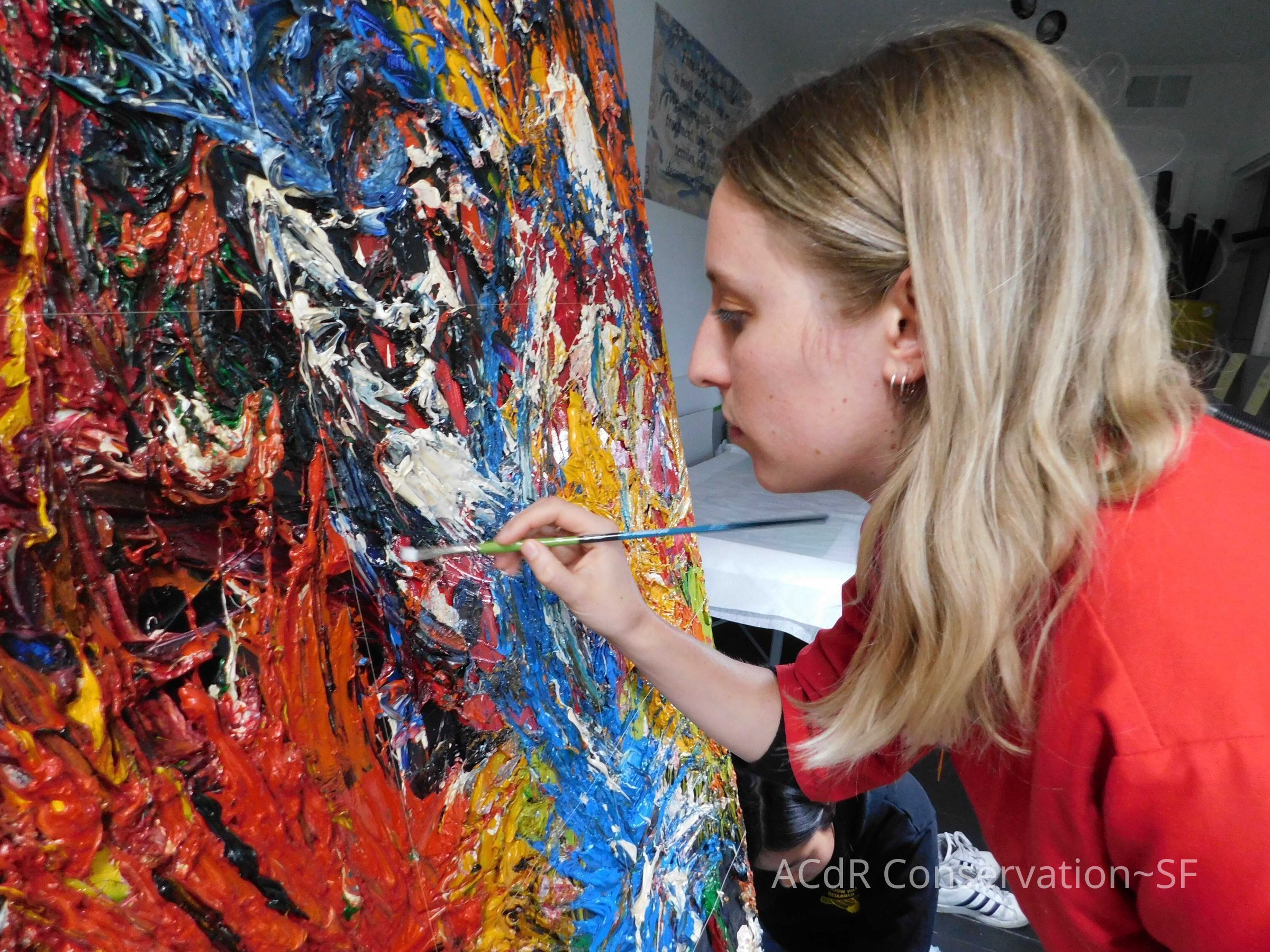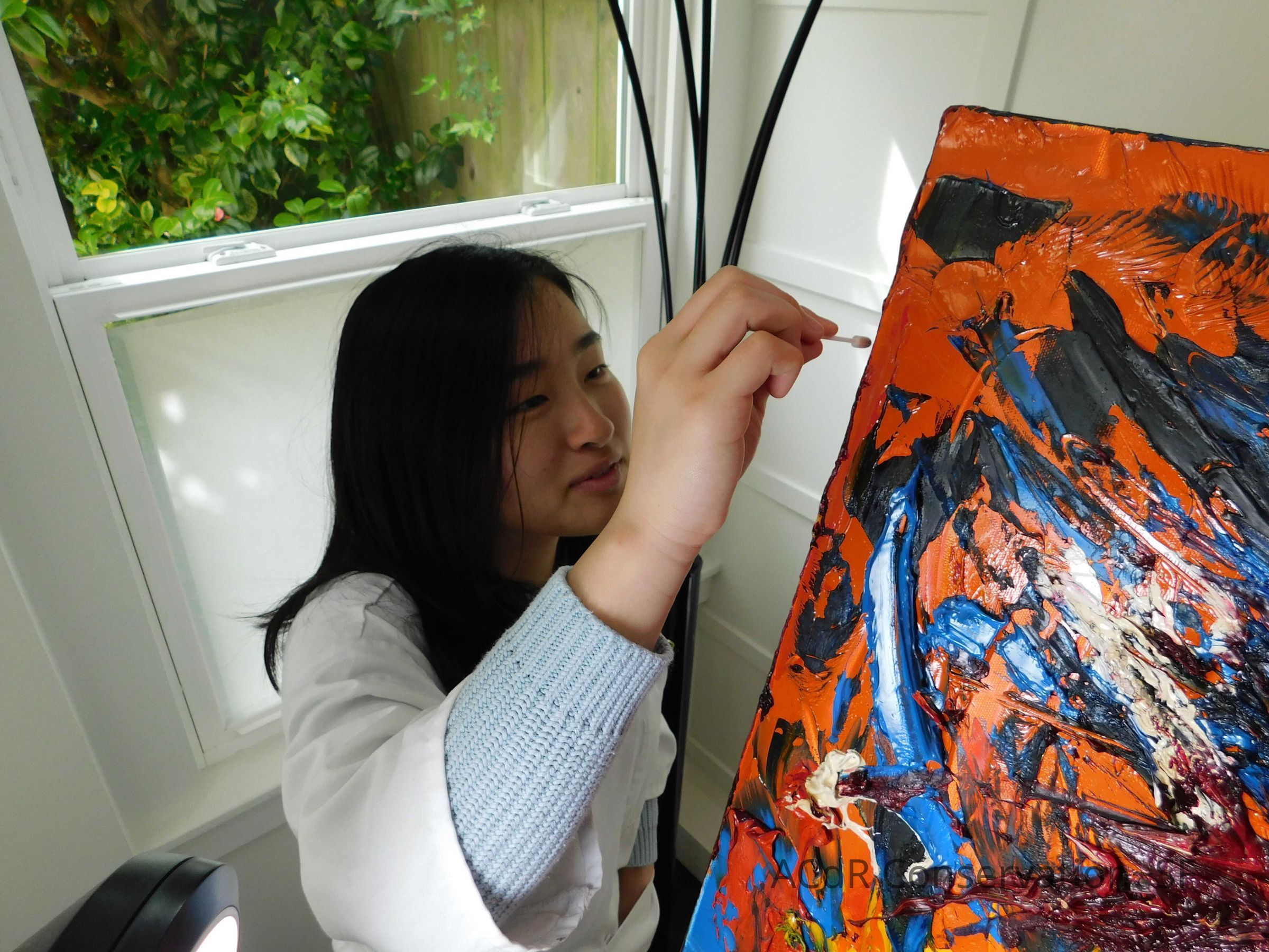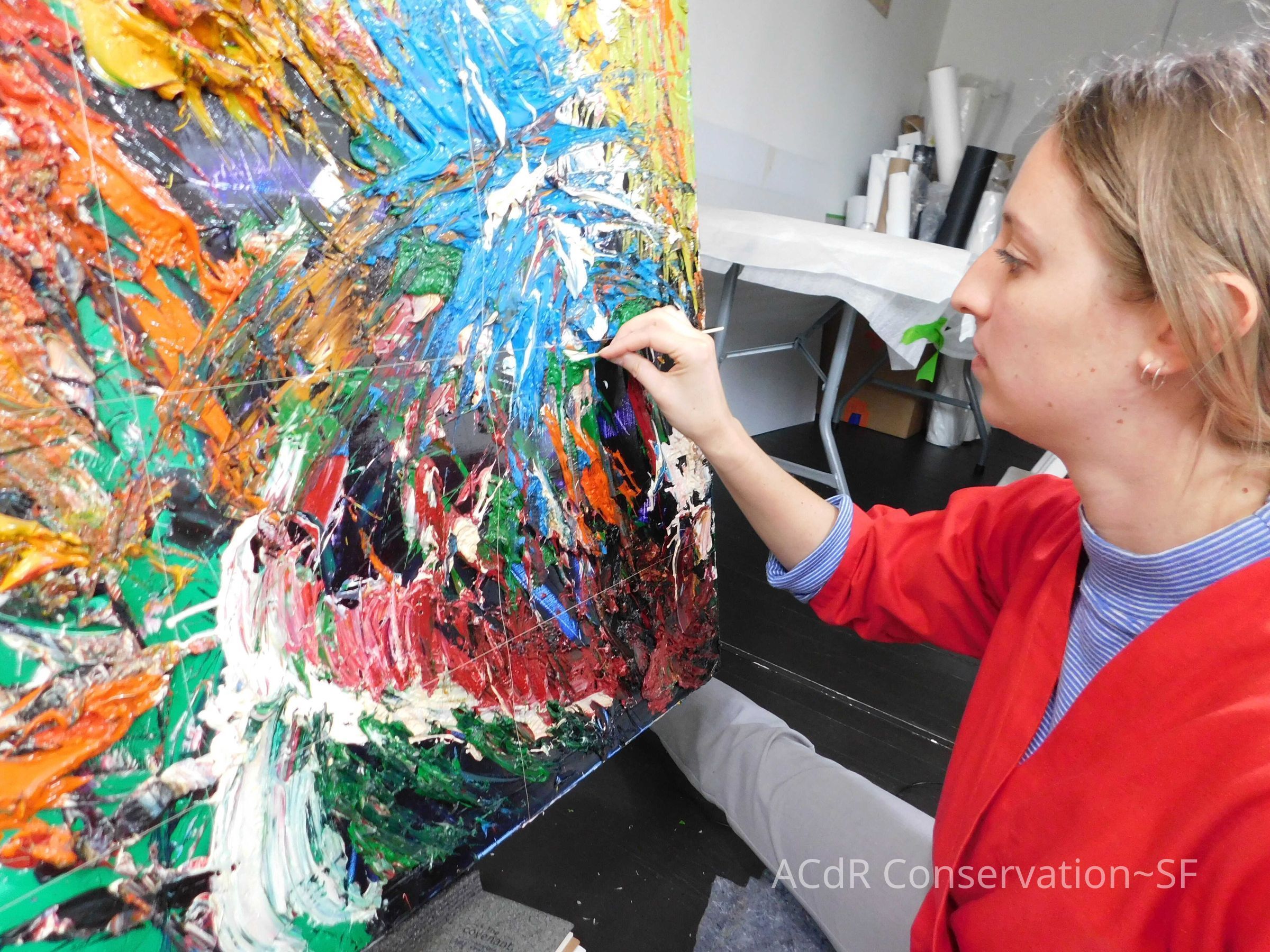 Brush vacuumed front an back of canvas/painting.