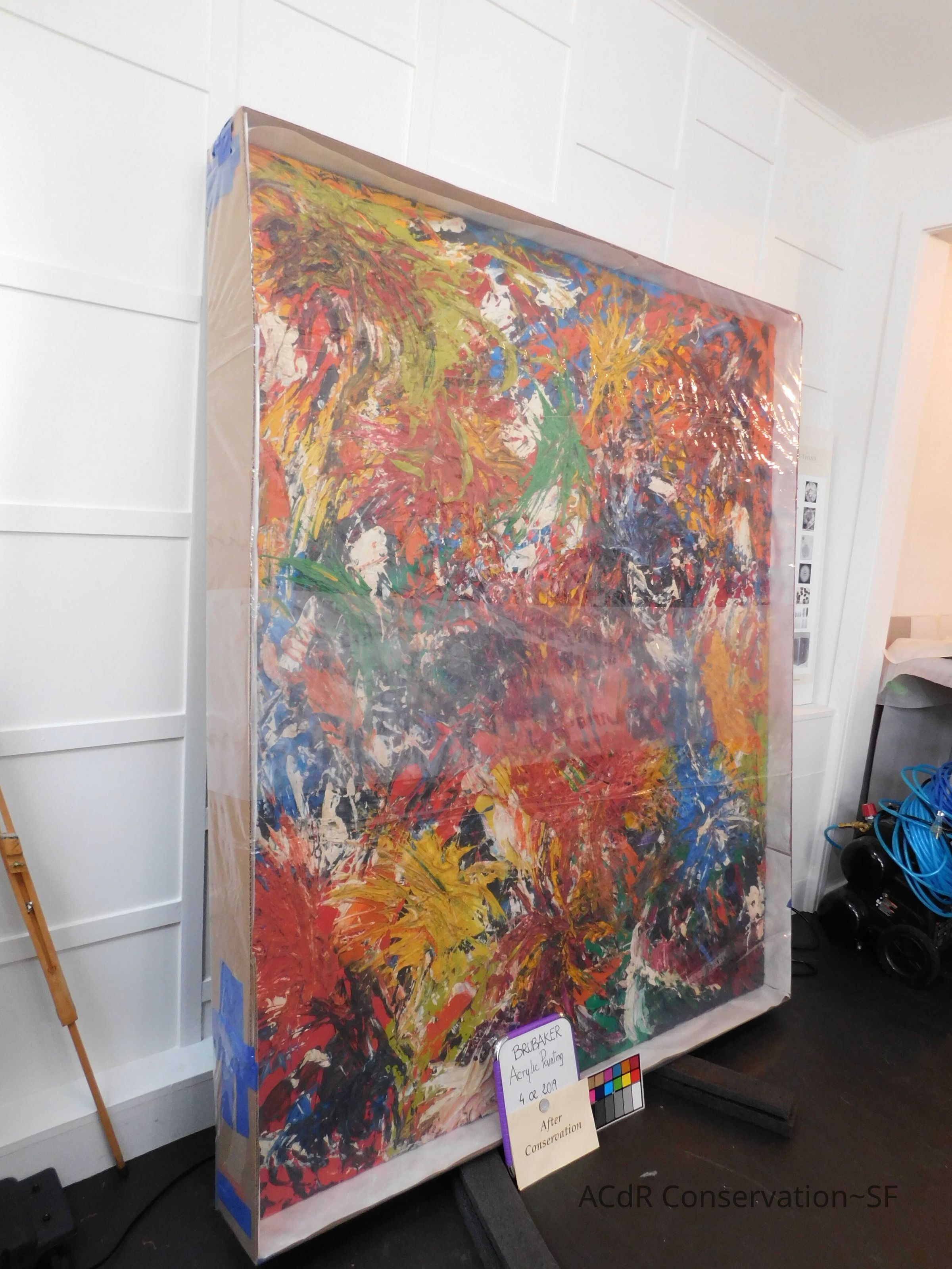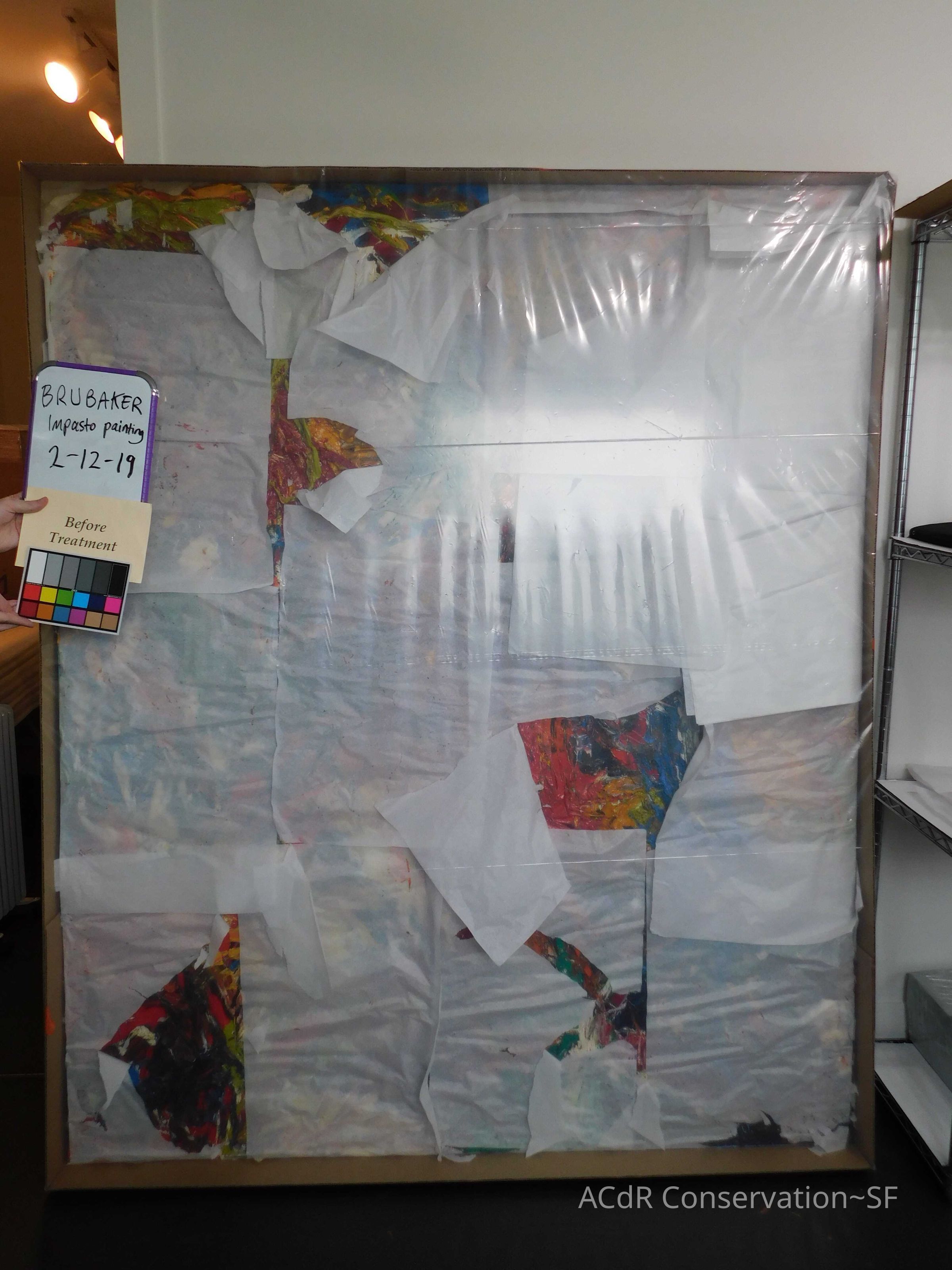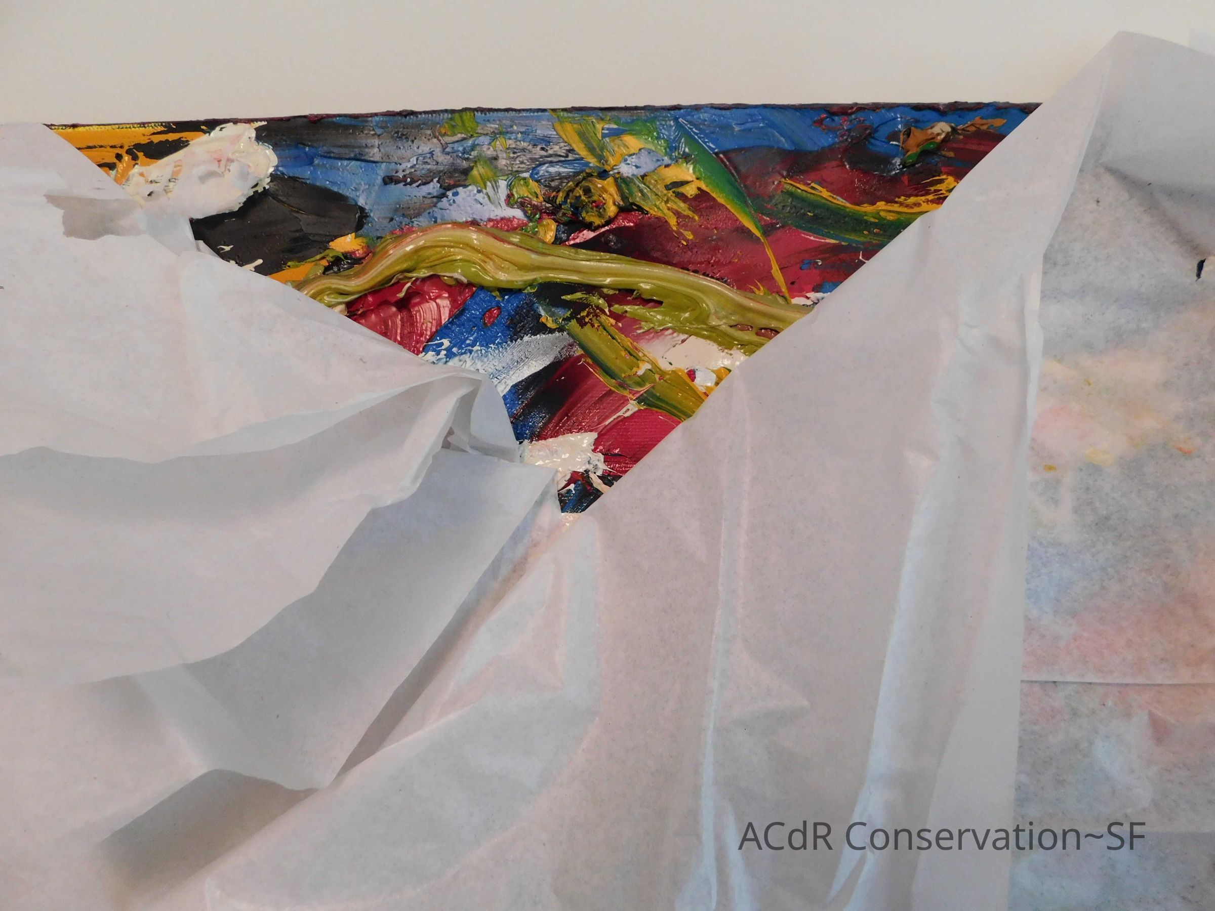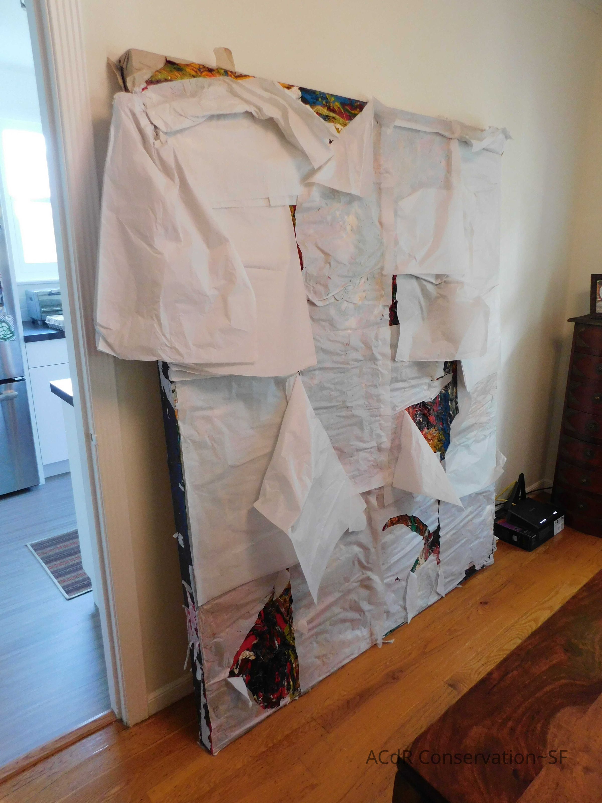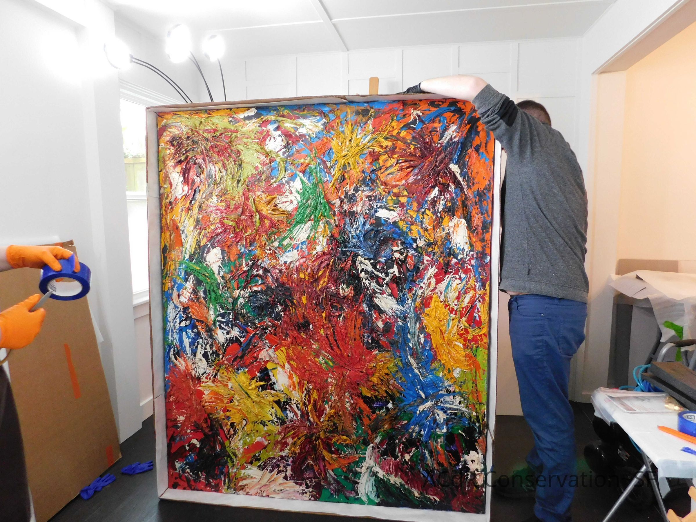 Unpacked painting from packing collar and photographed