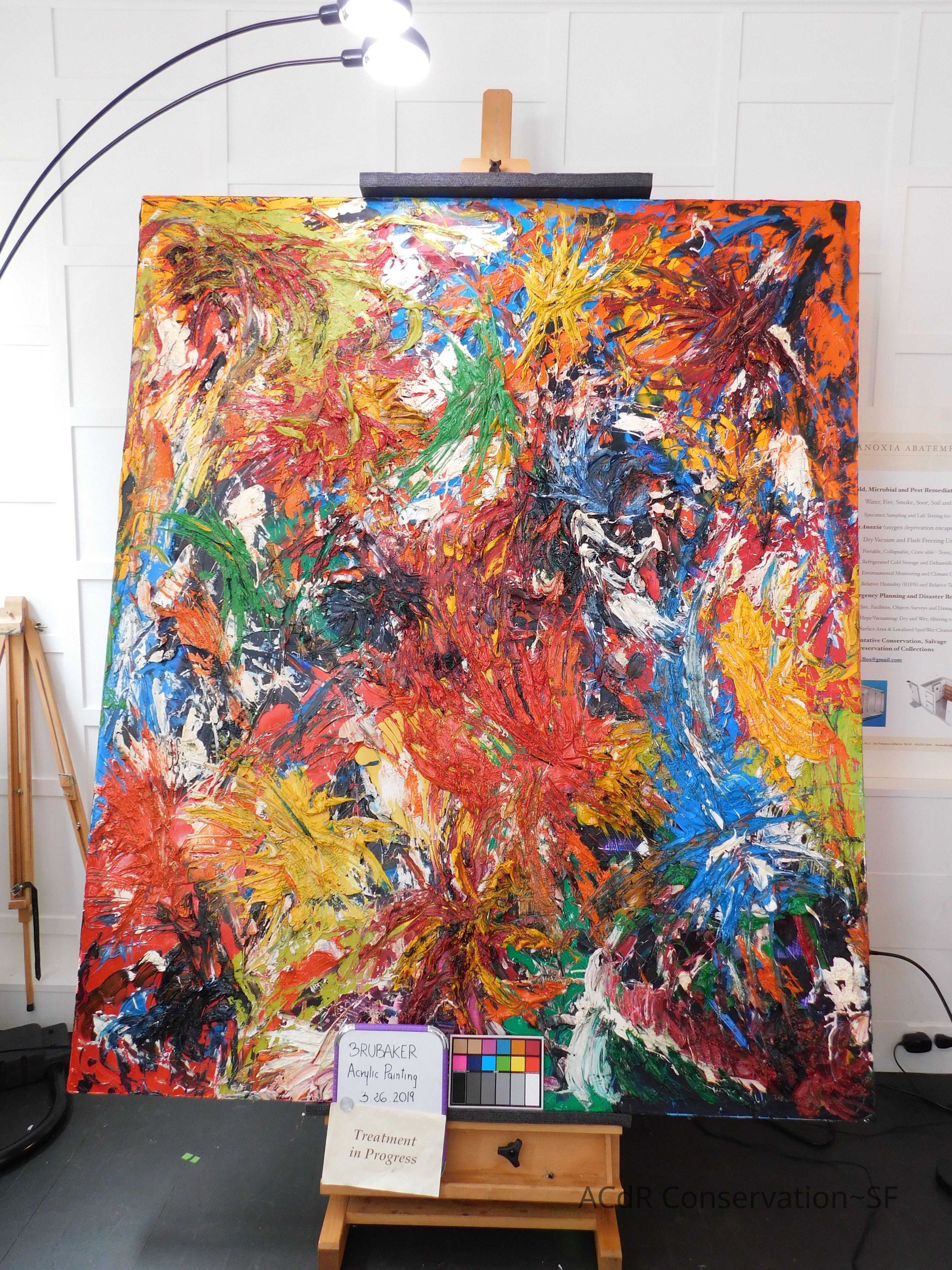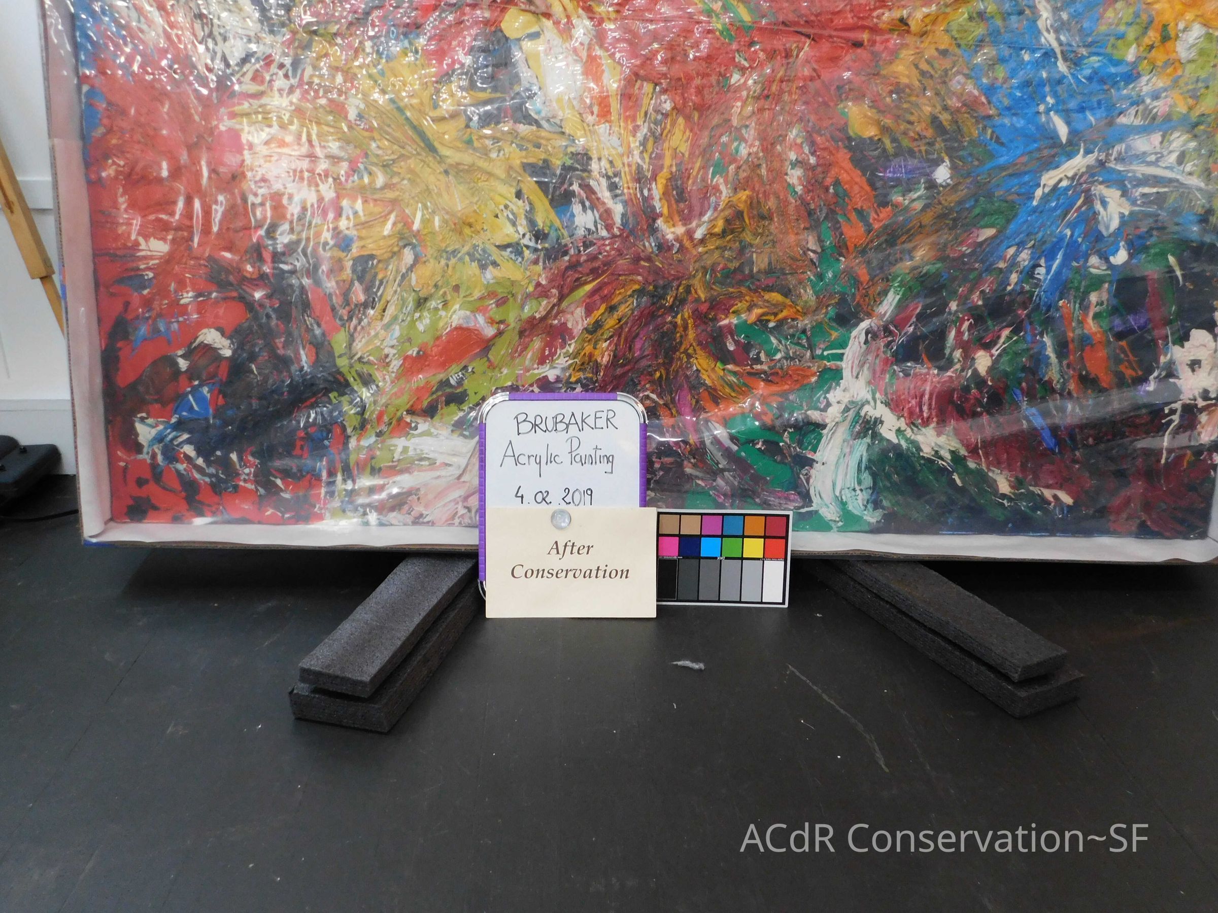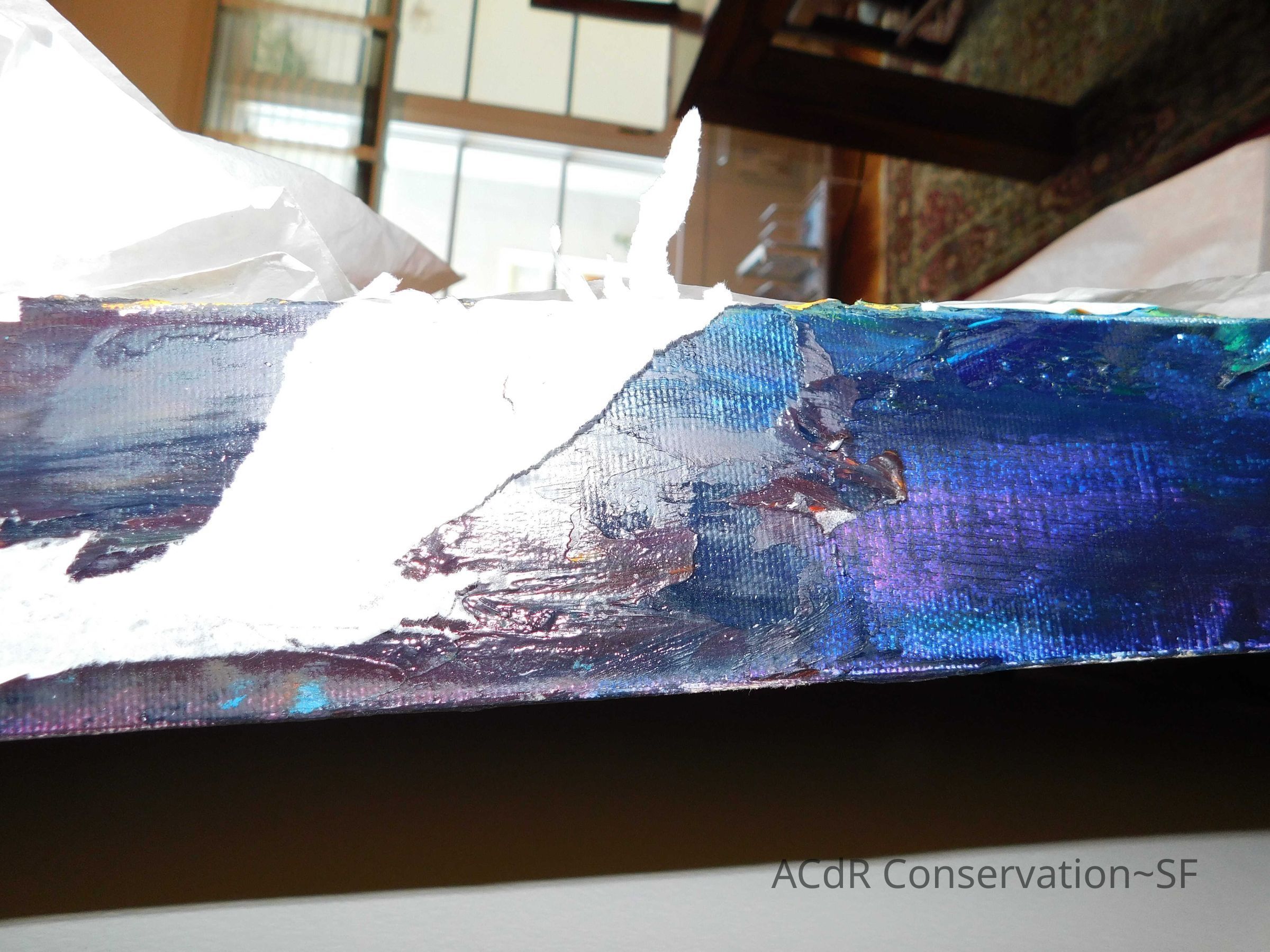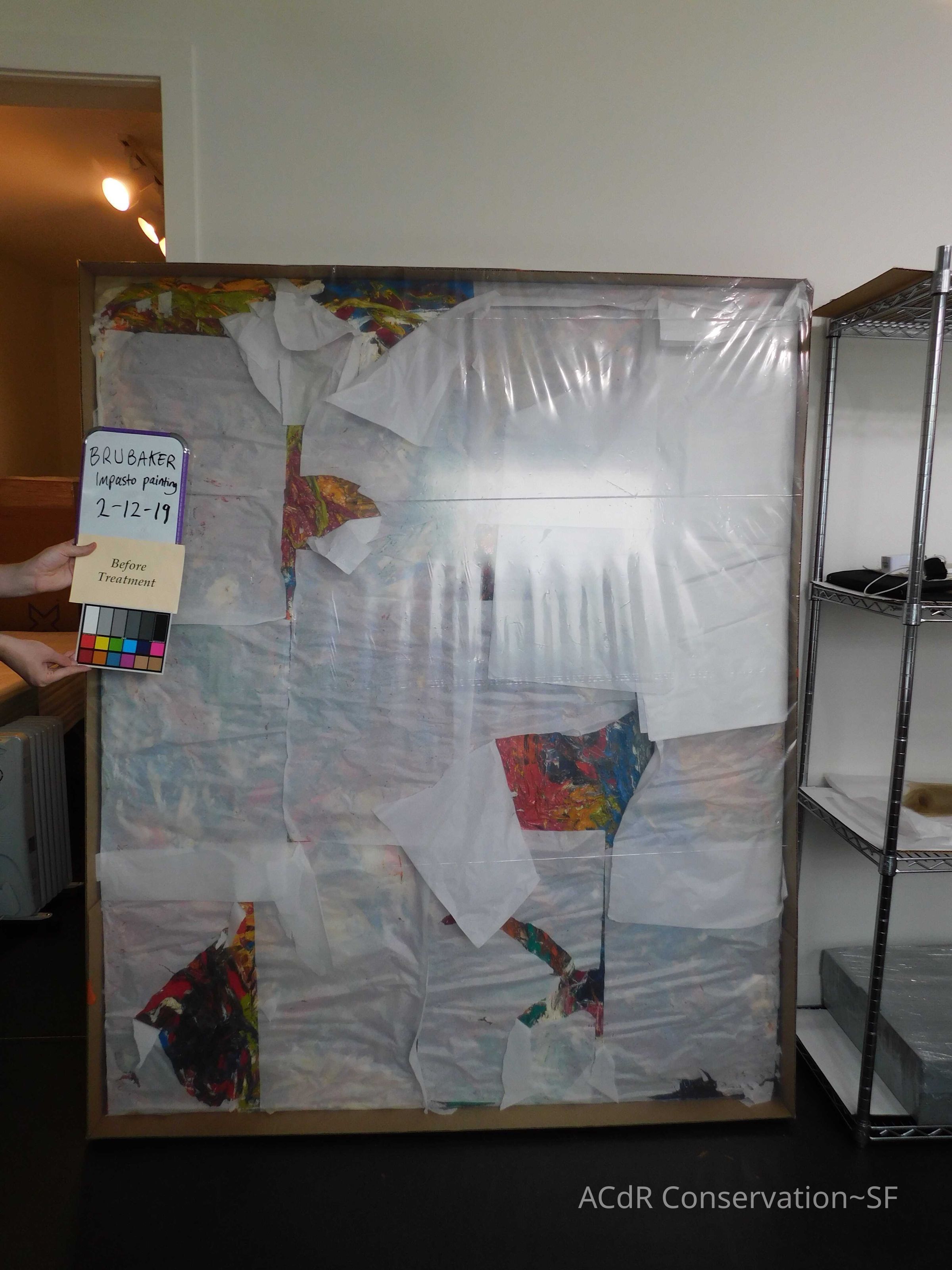 Unpacked painting from packing collar and photographed
