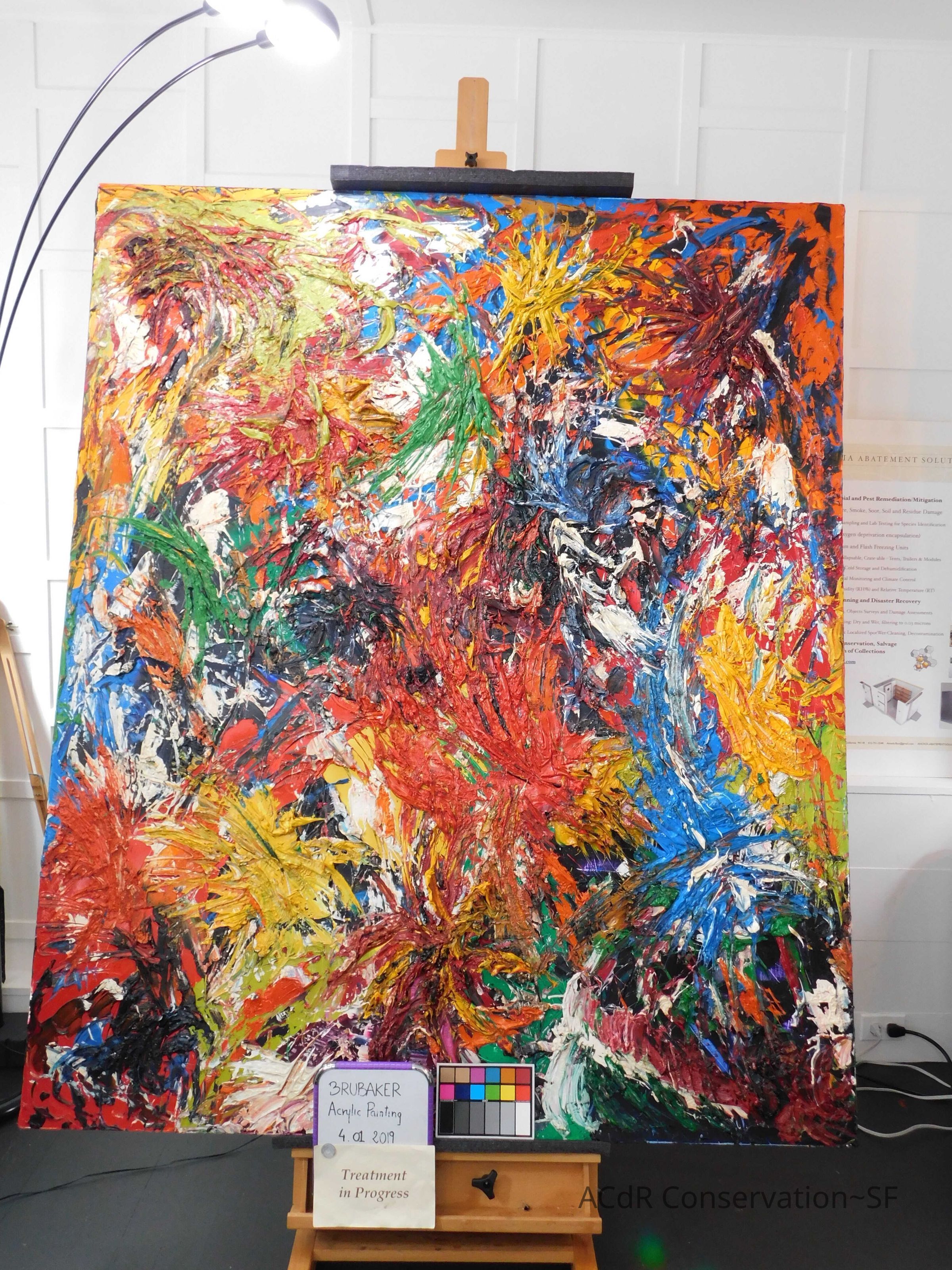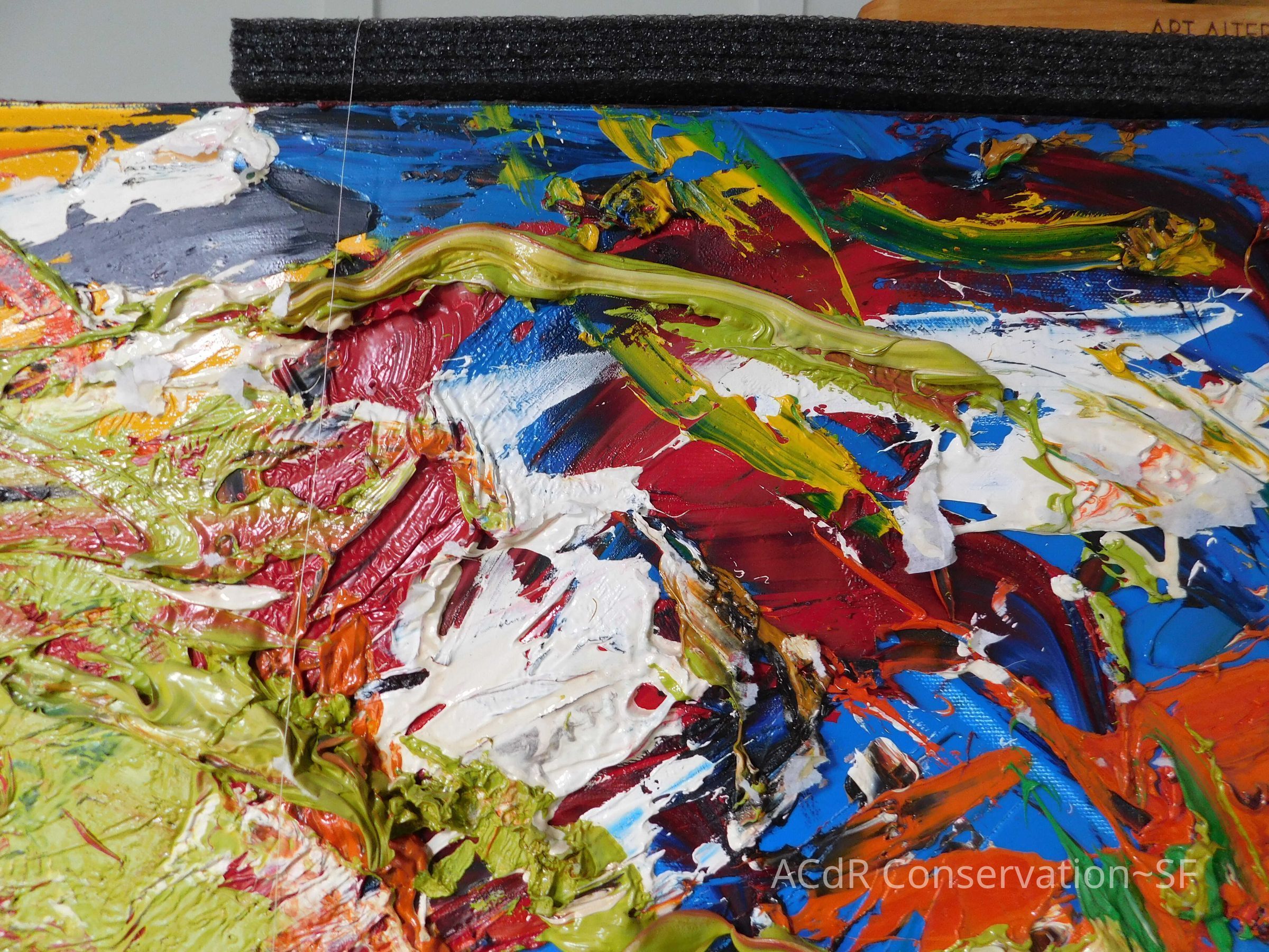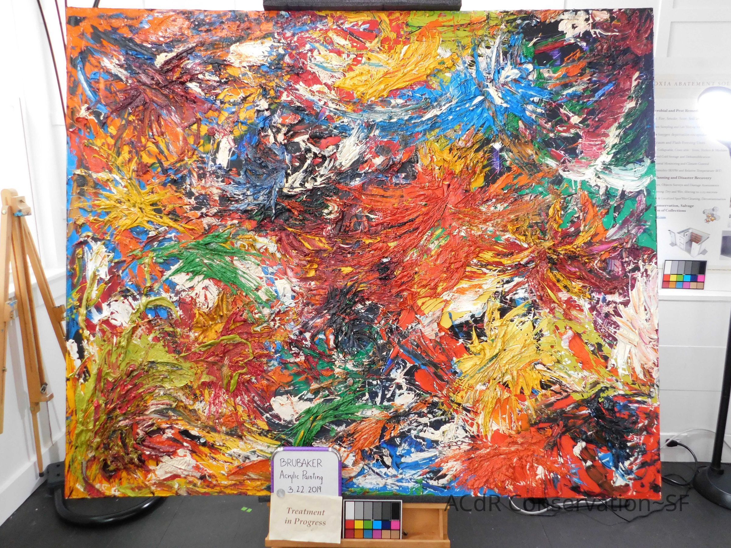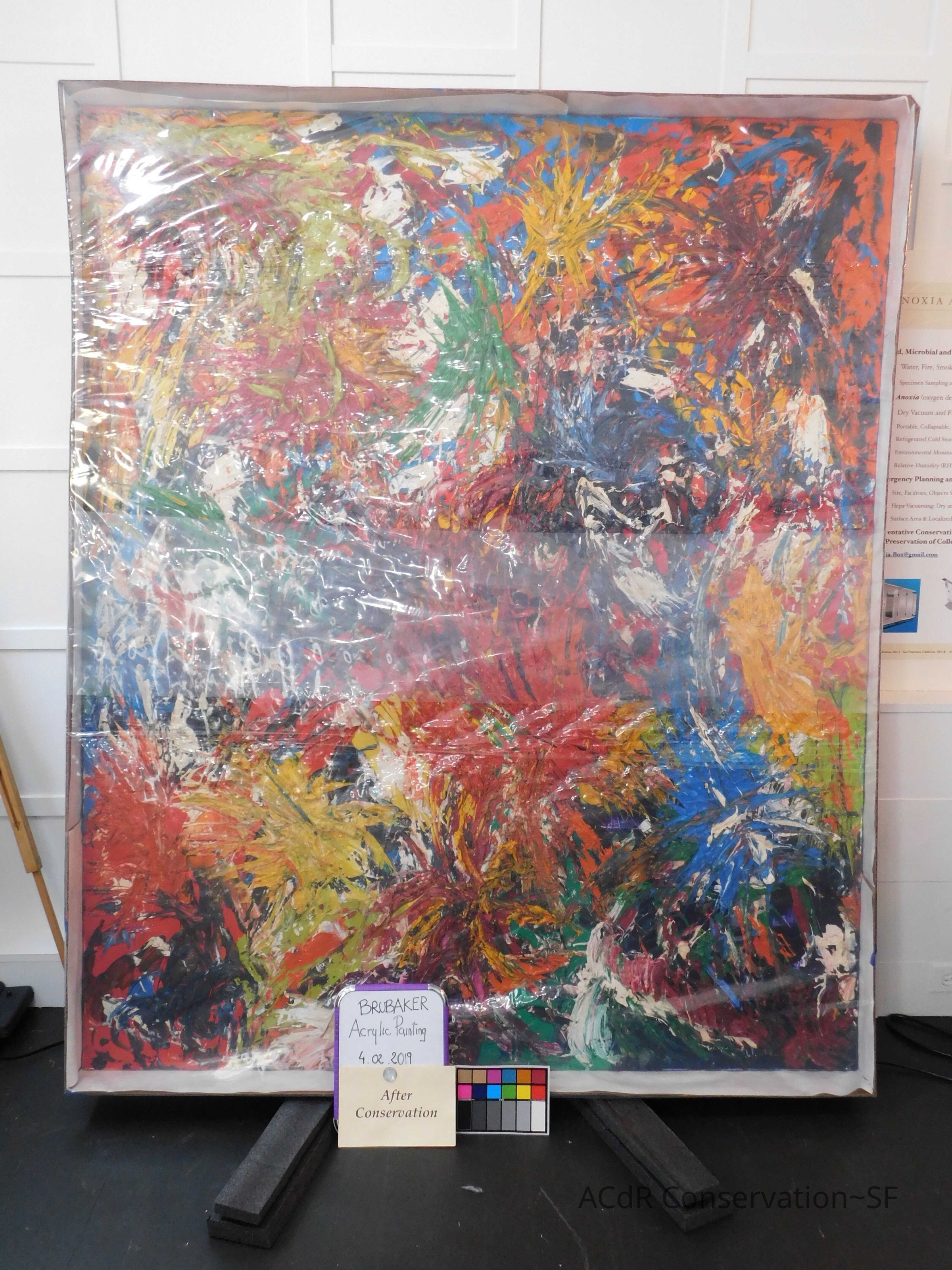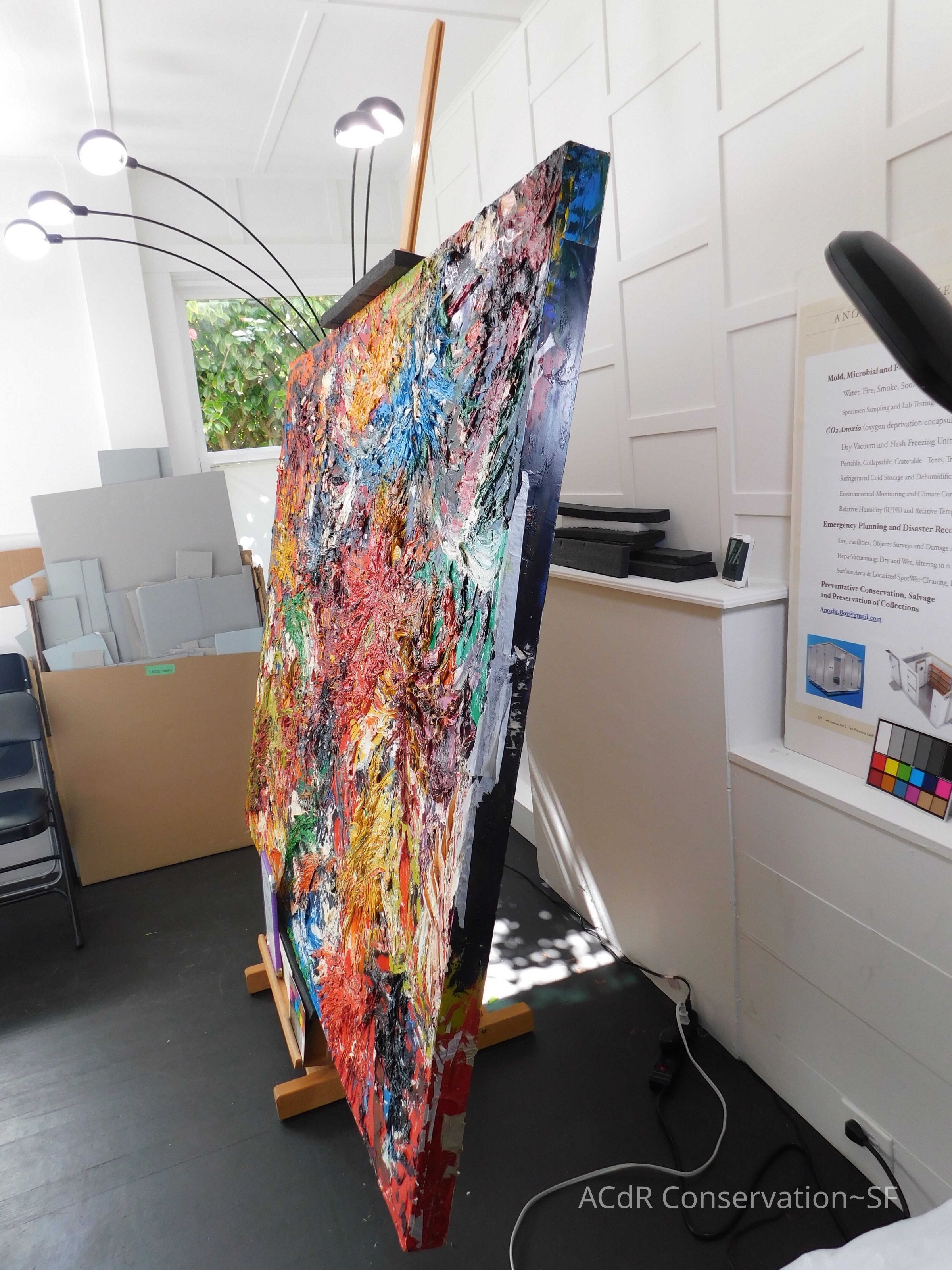 Unpacked painting from packing collar and photographed