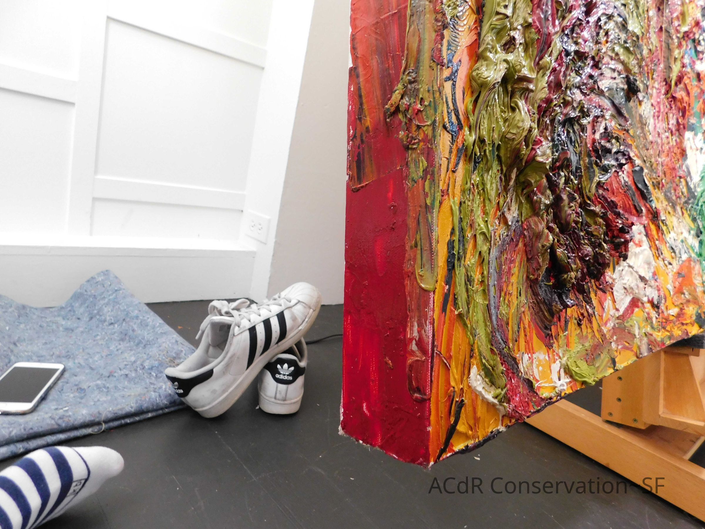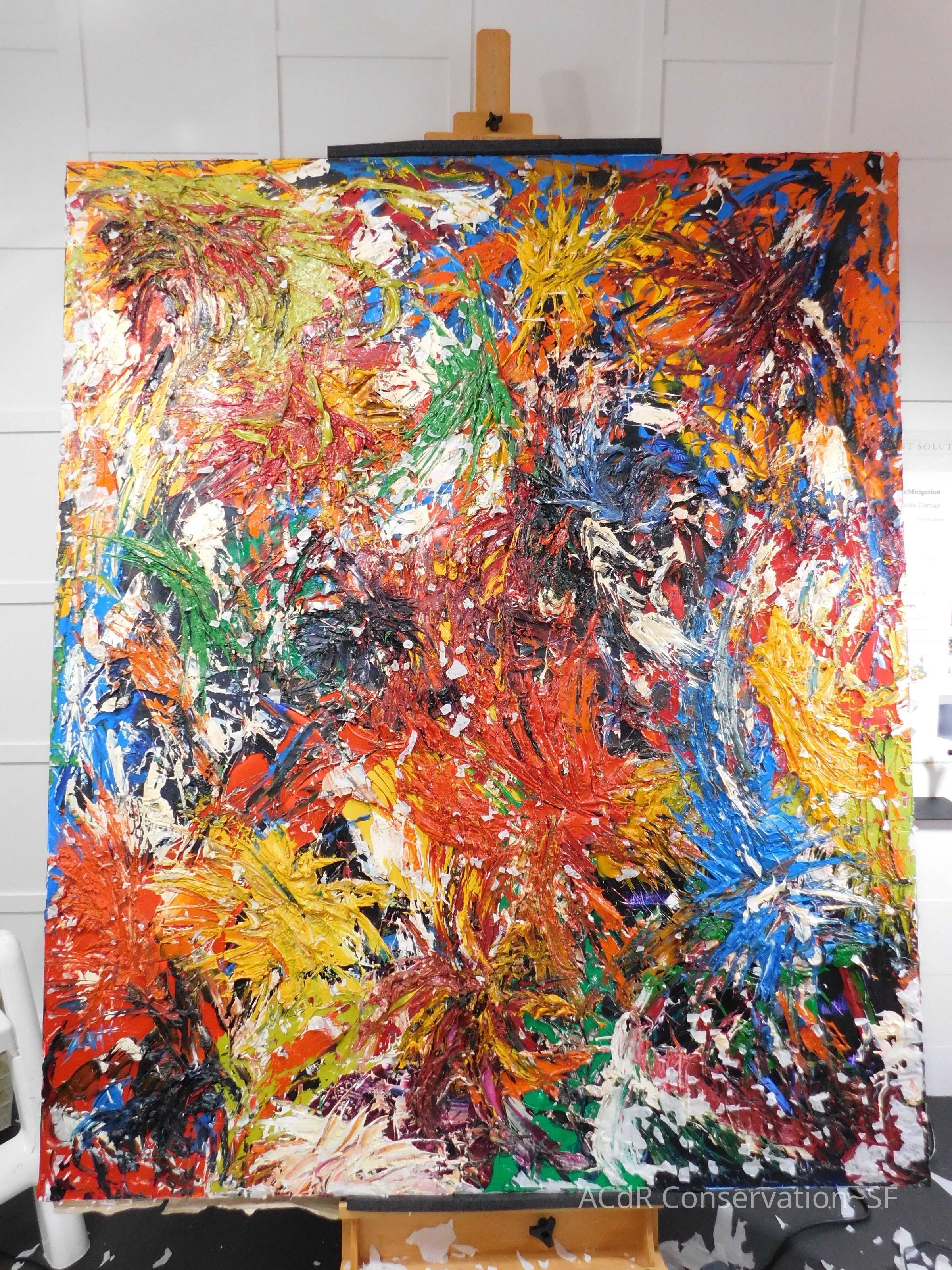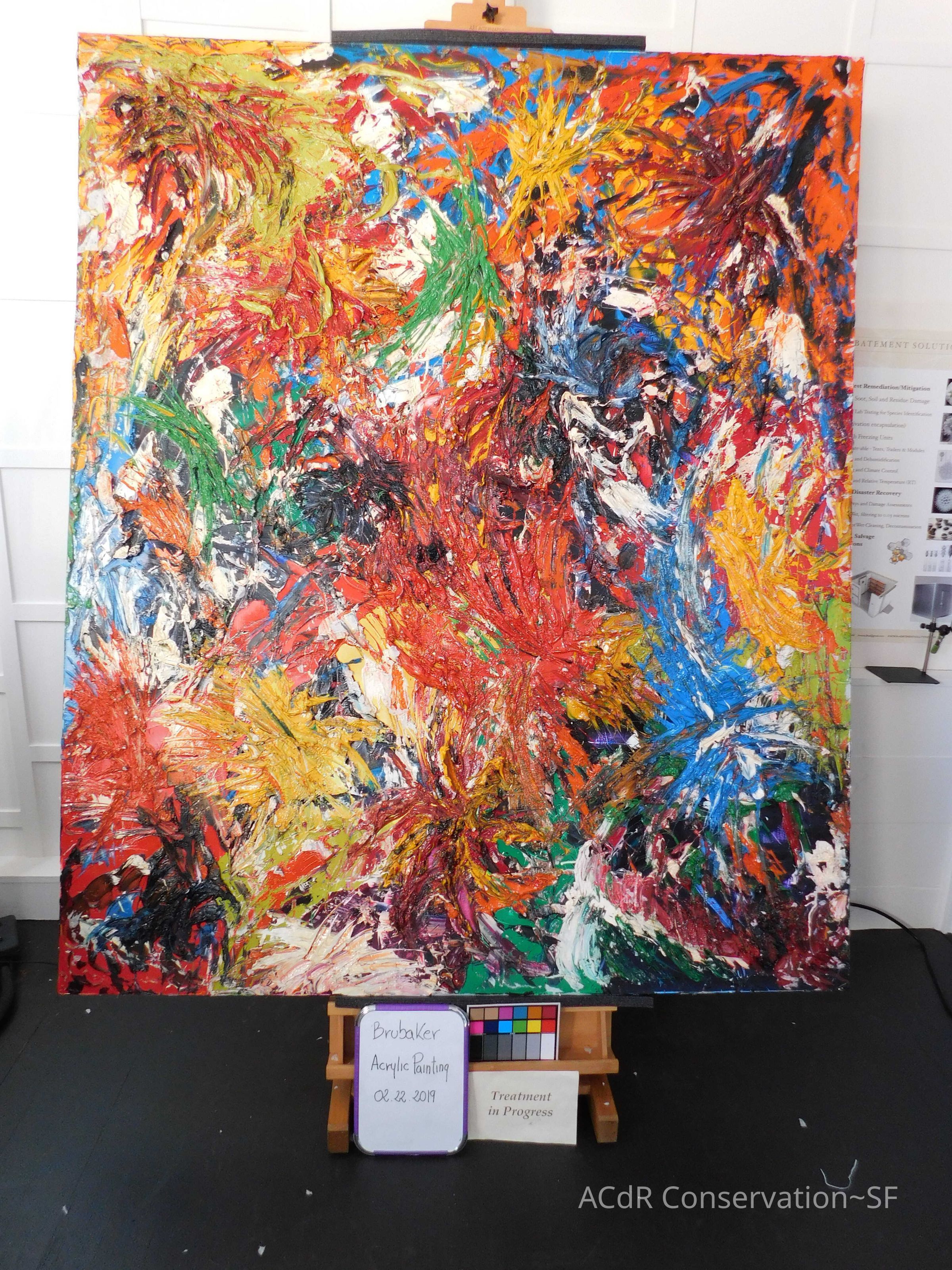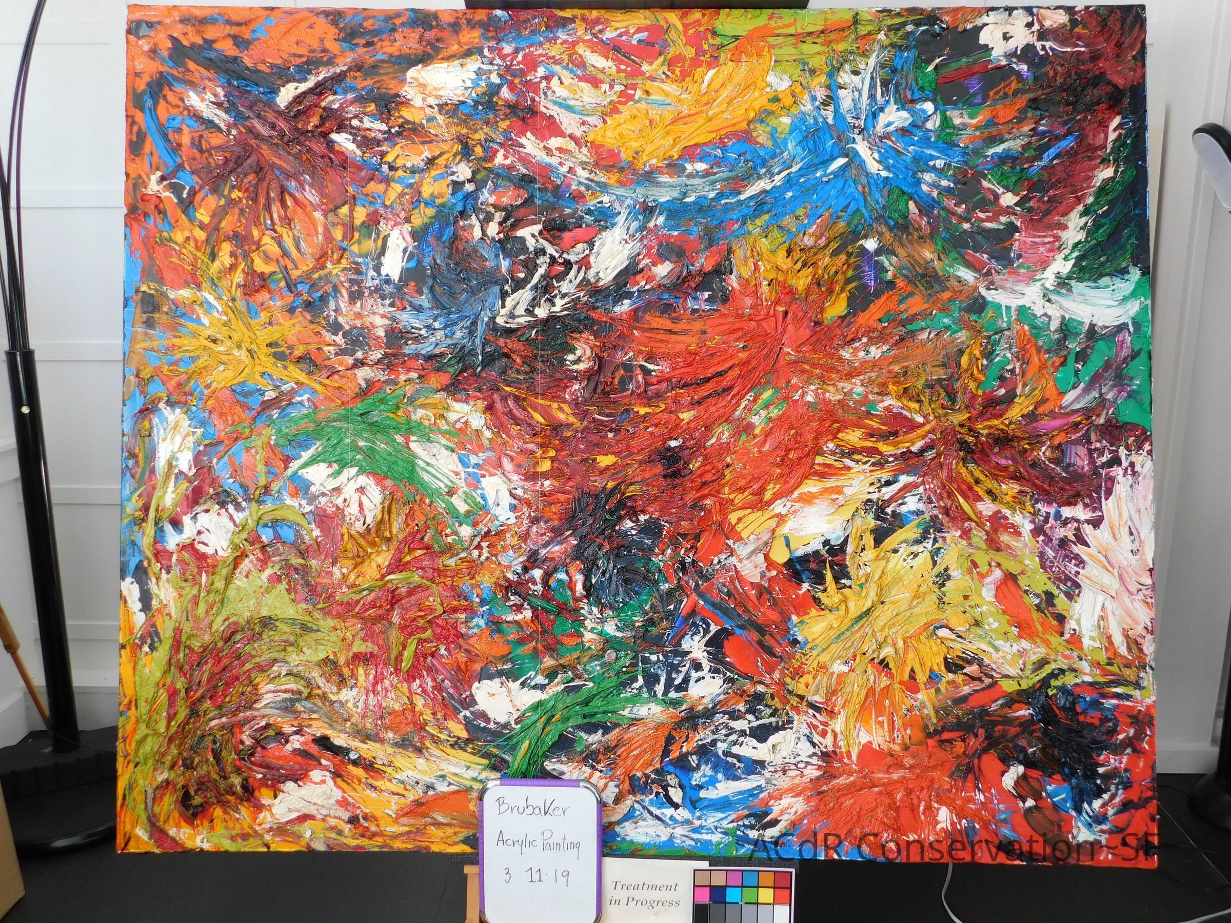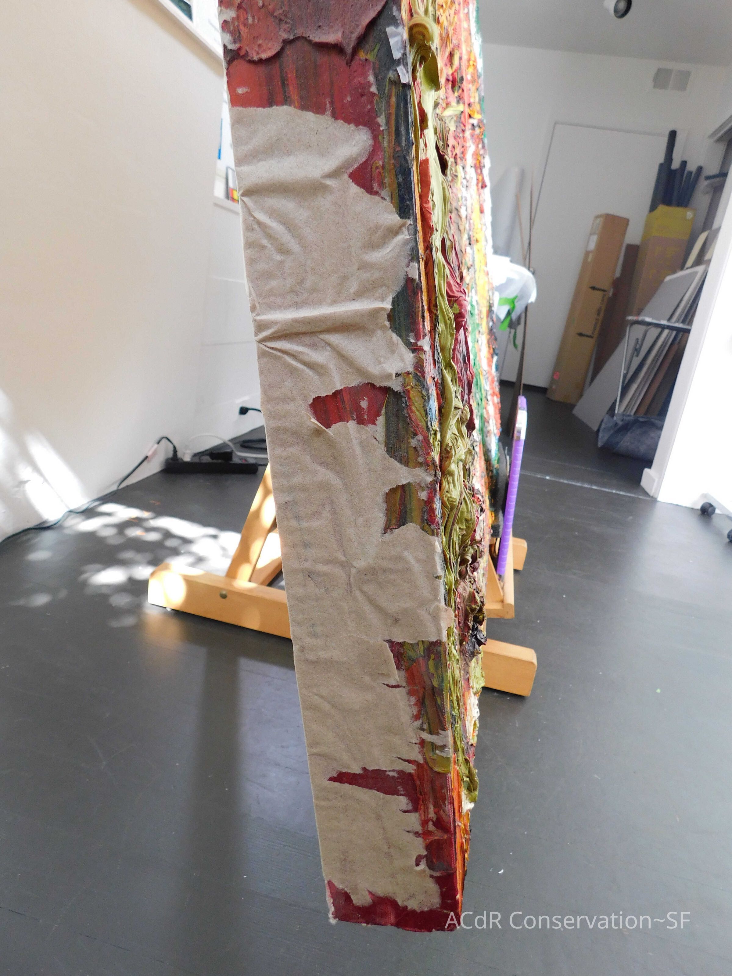 Unpacked painting from packing collar and photographed