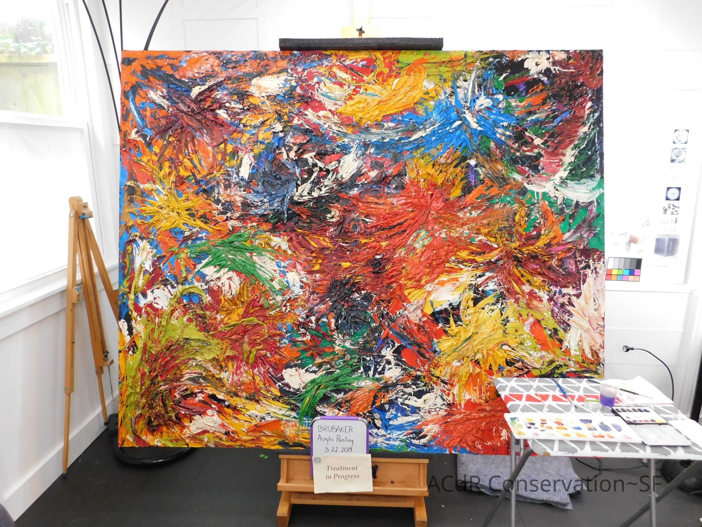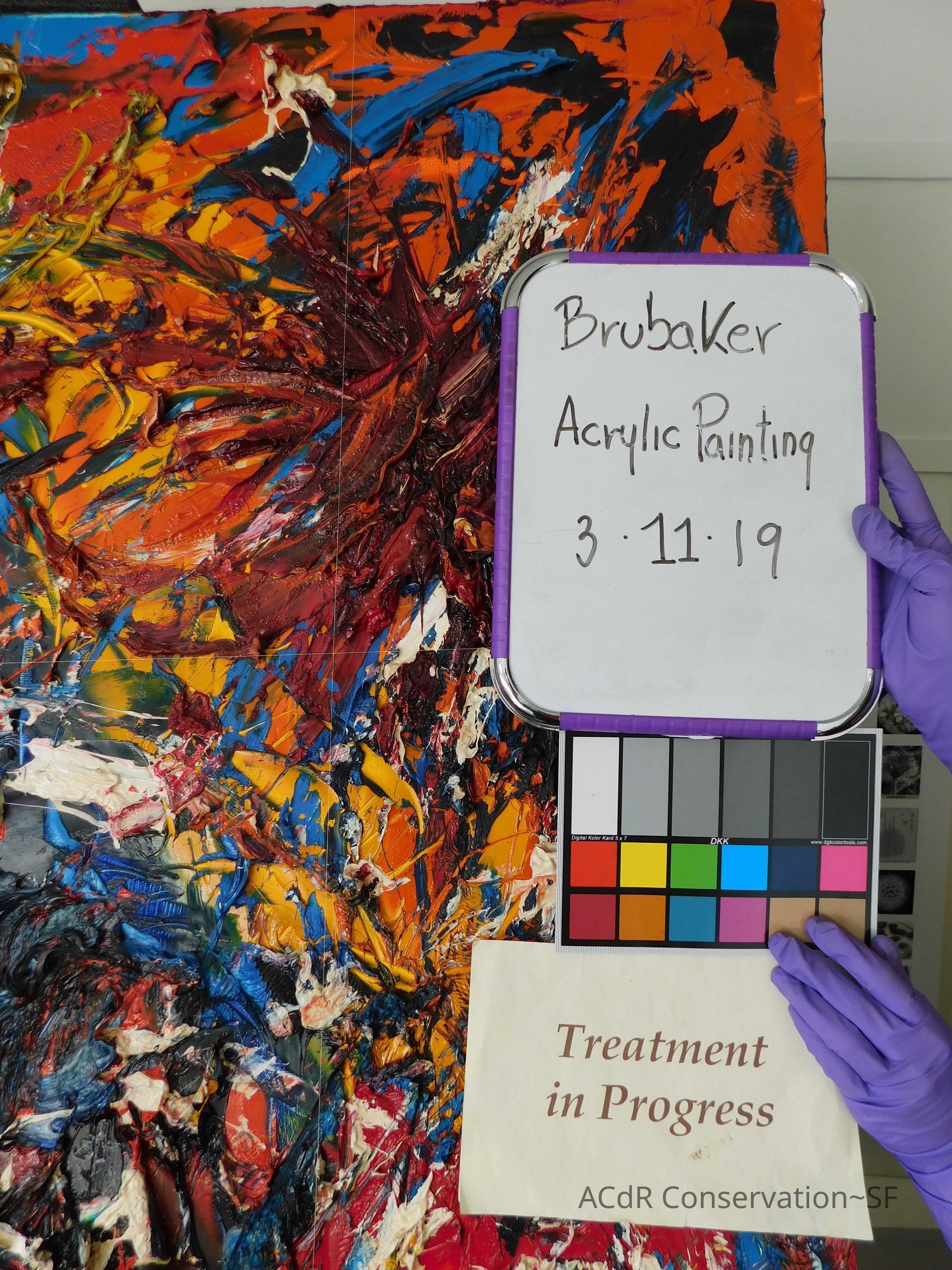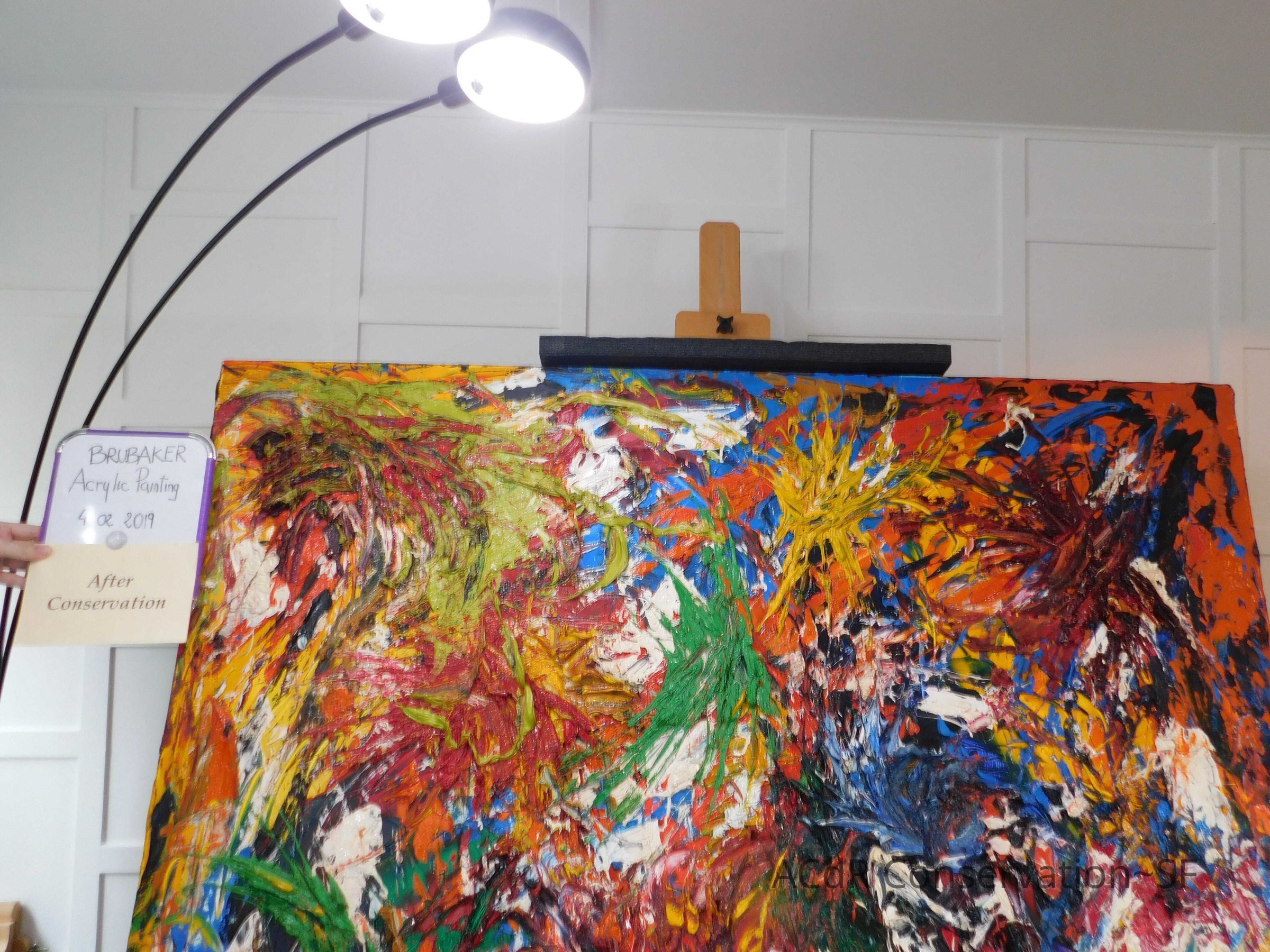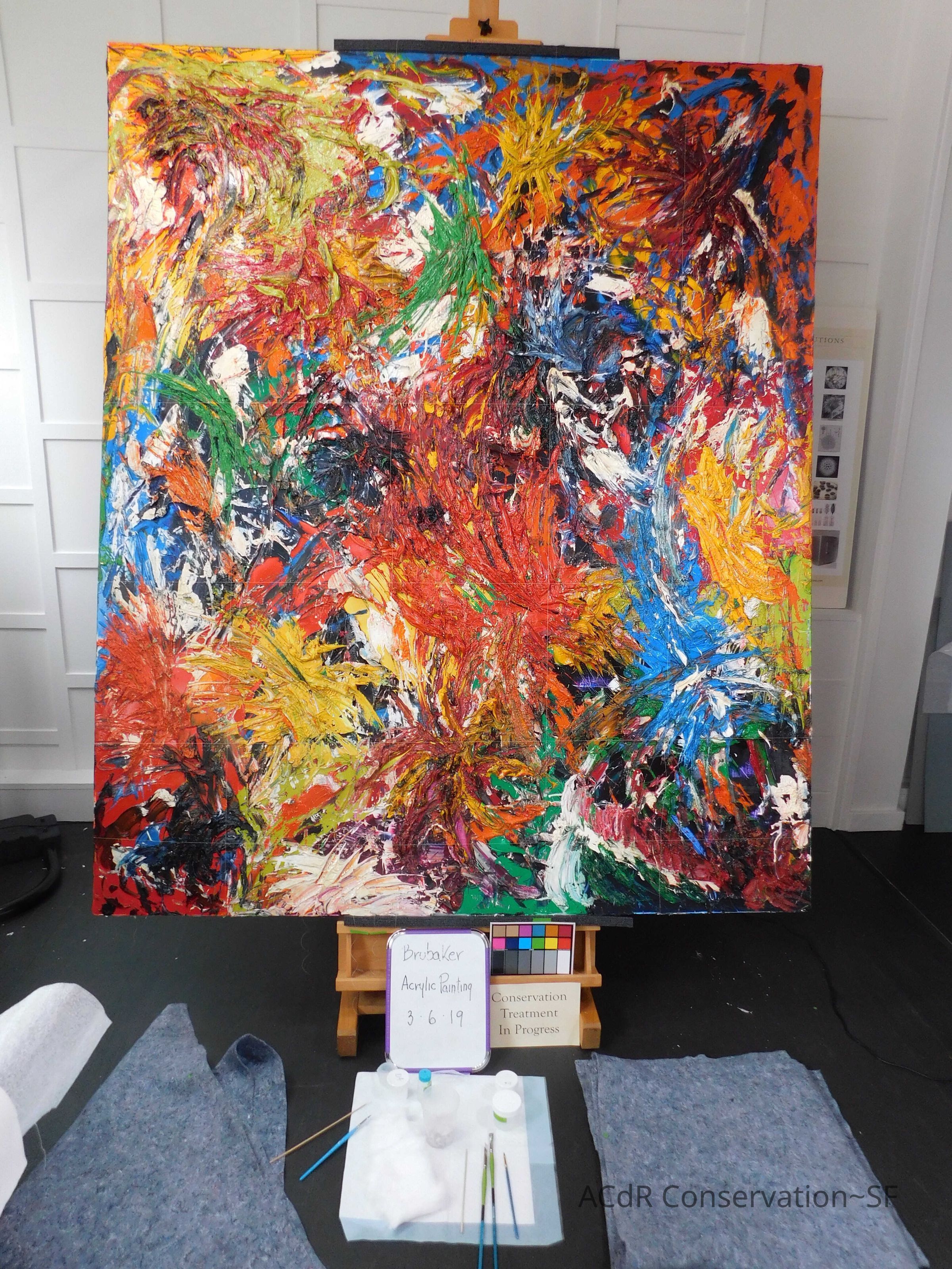Unpacked painting from packing collar and photographed