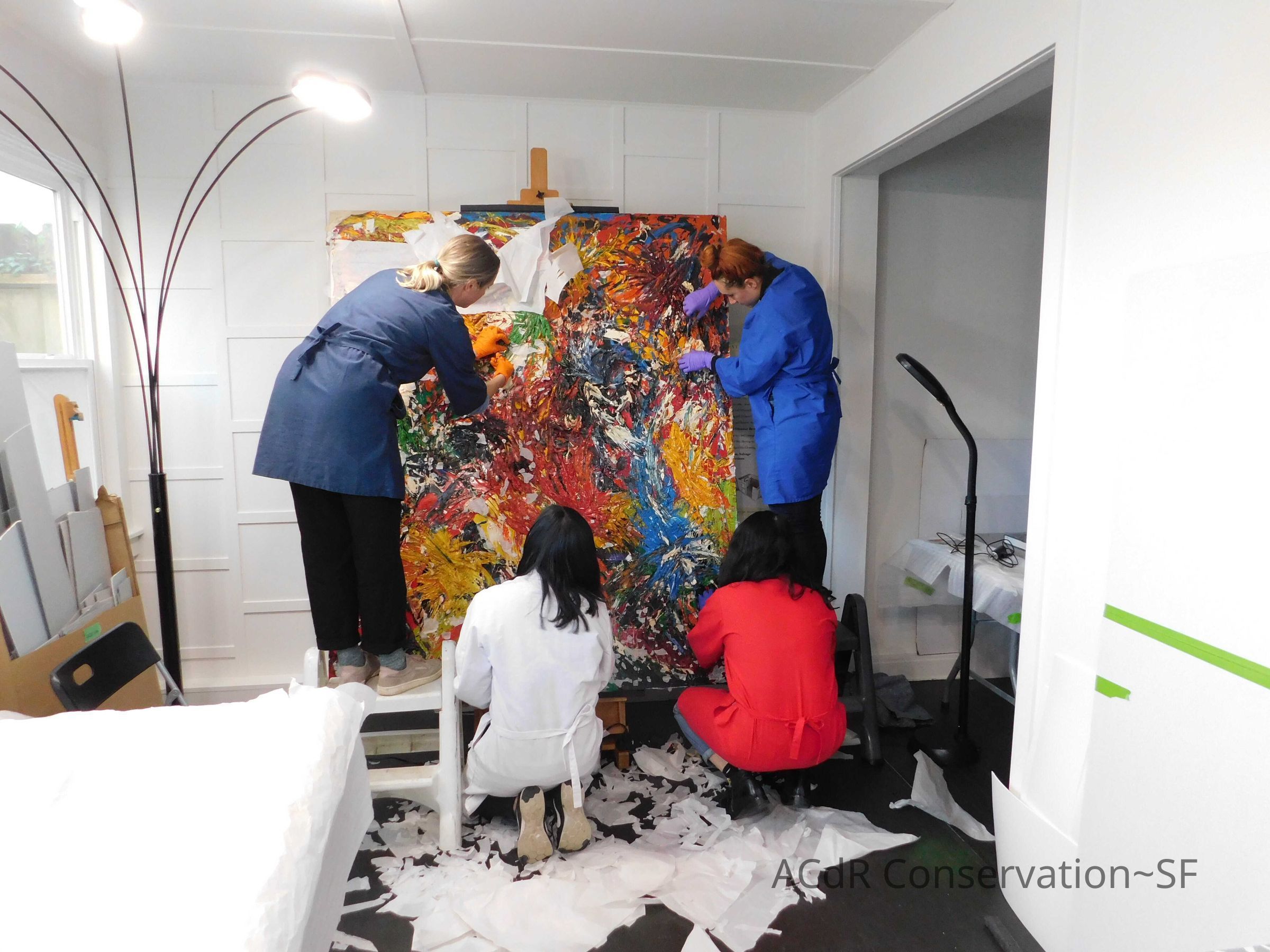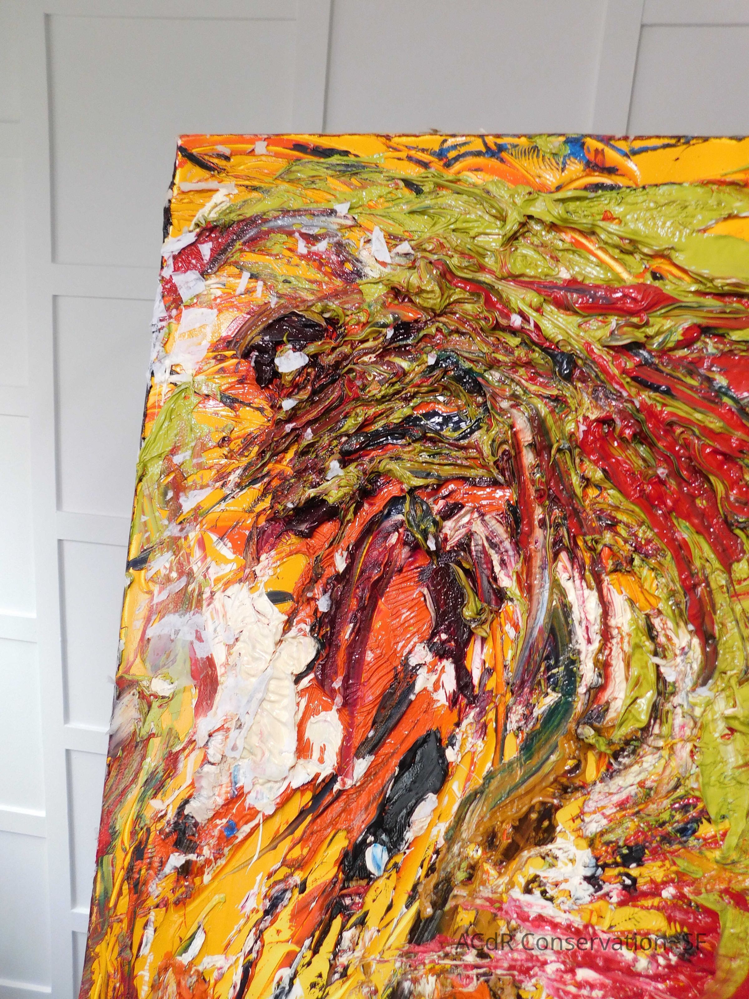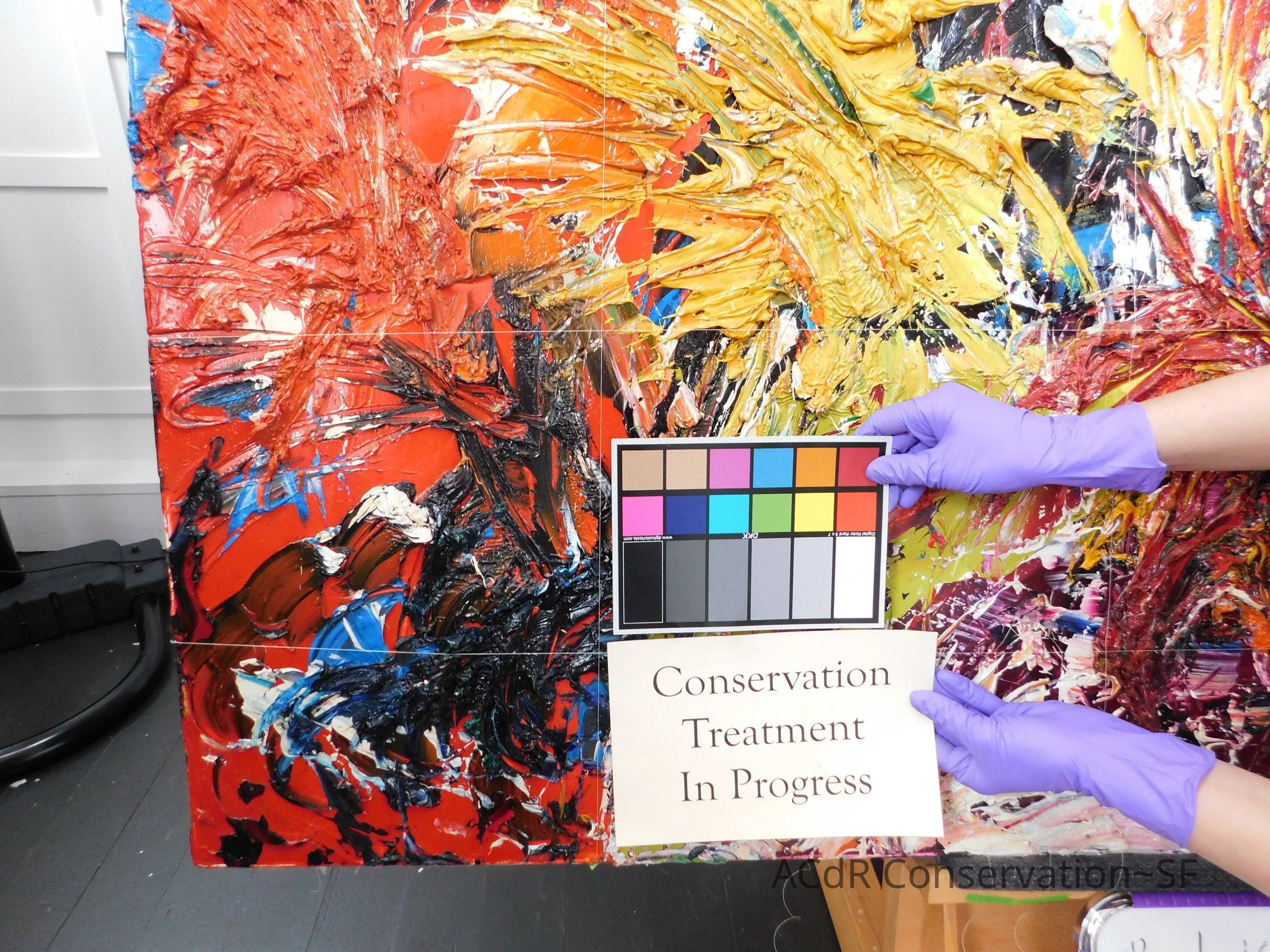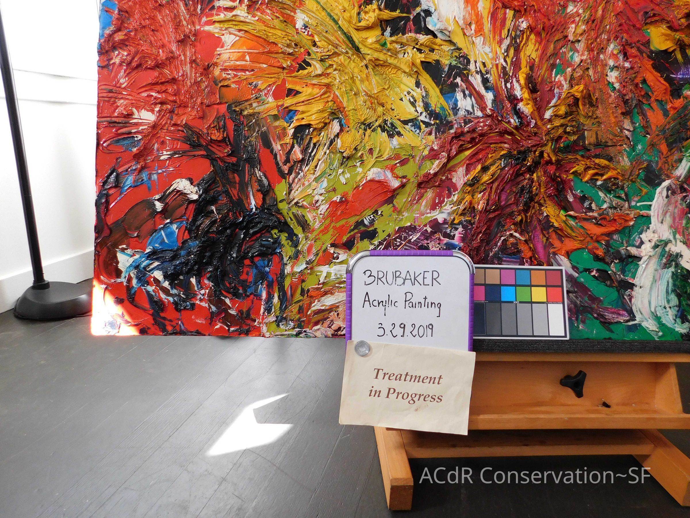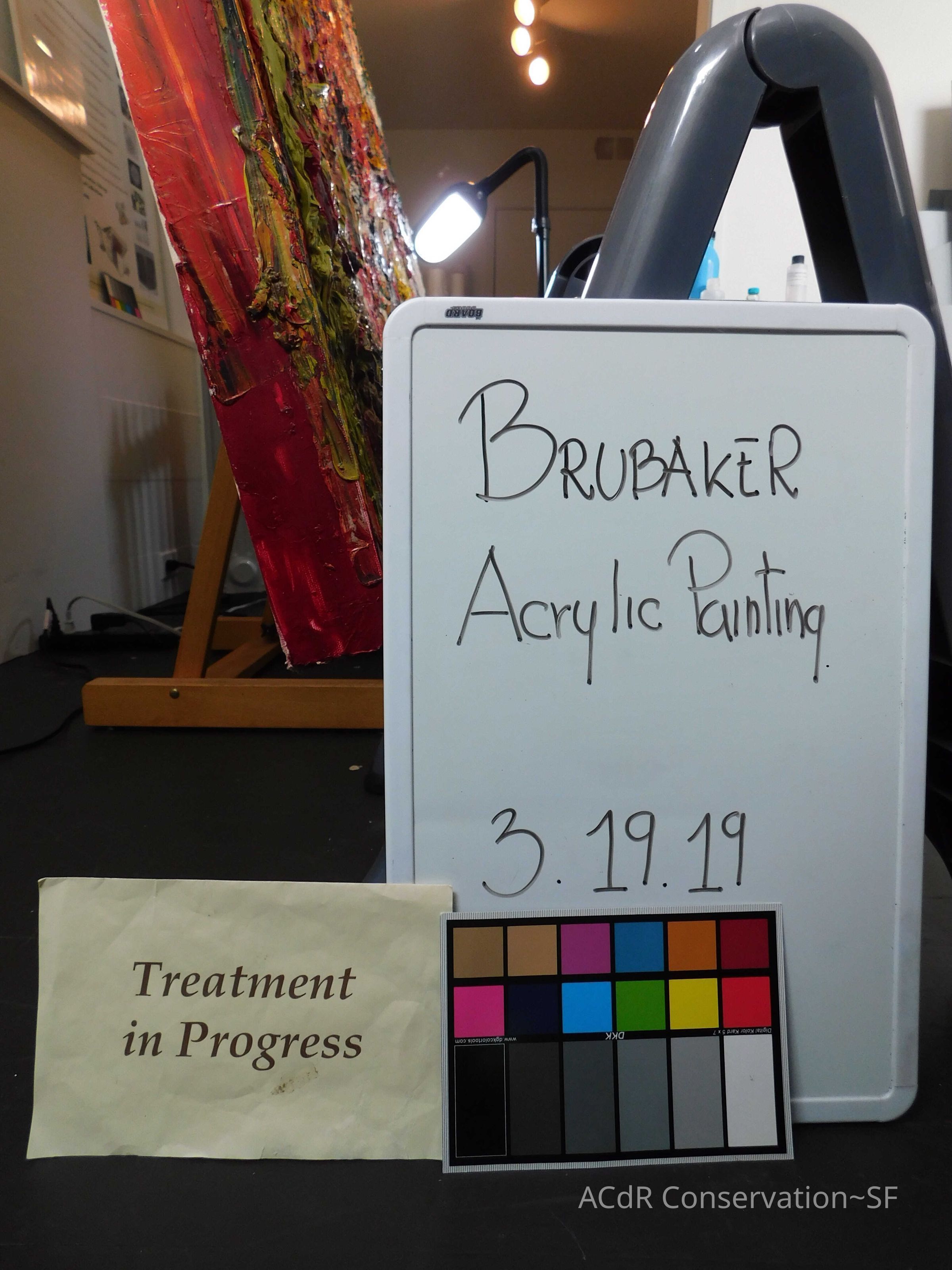 Unpacked painting from packing collar and photographed