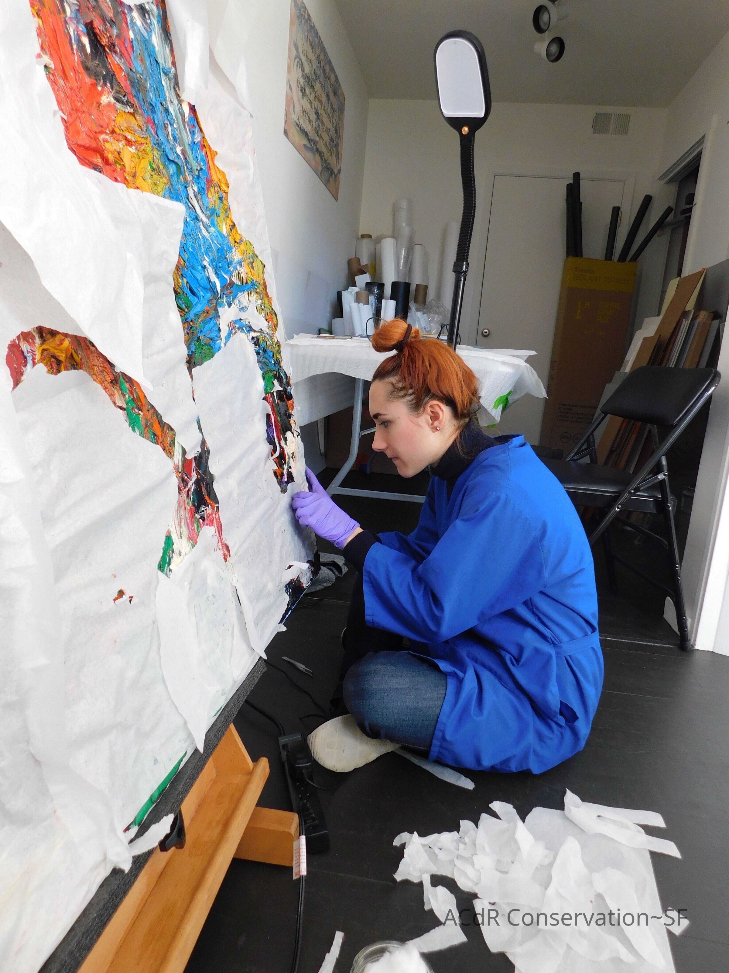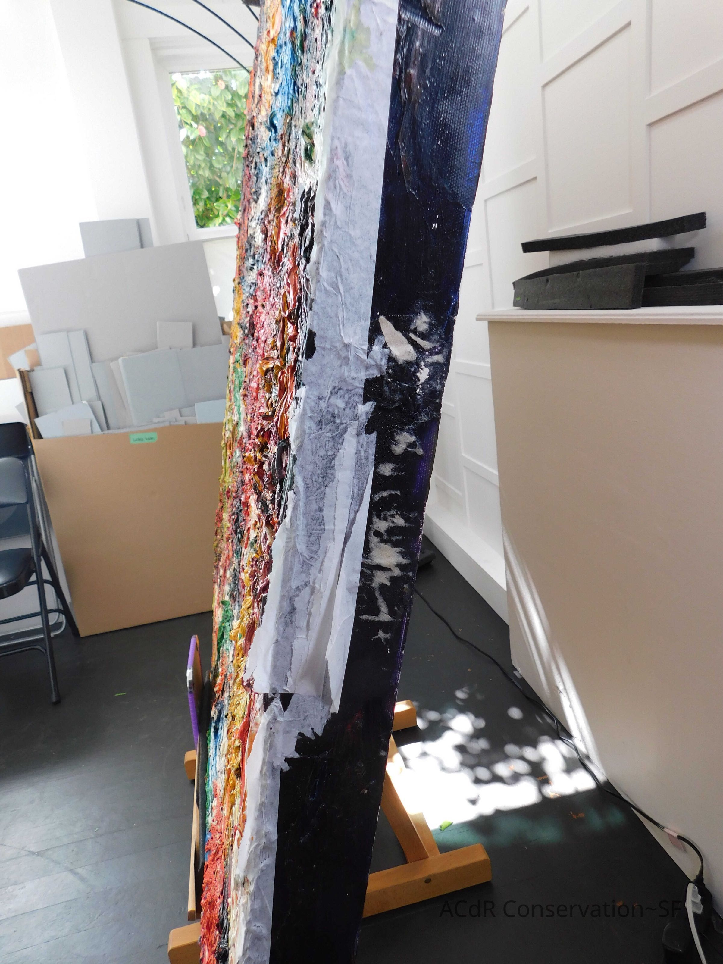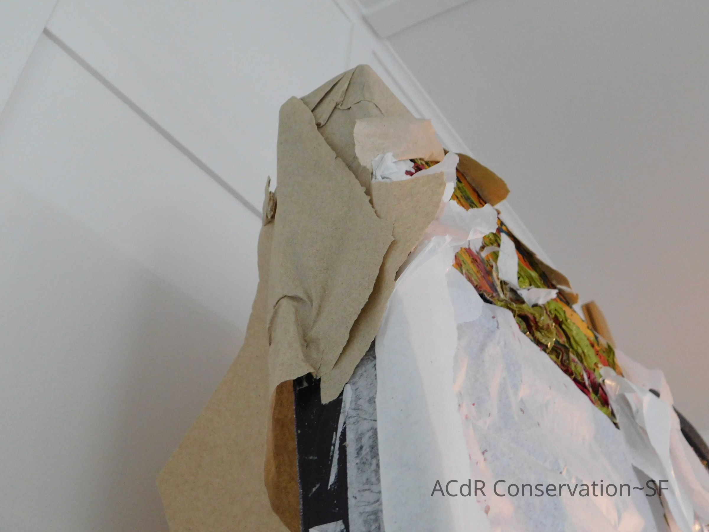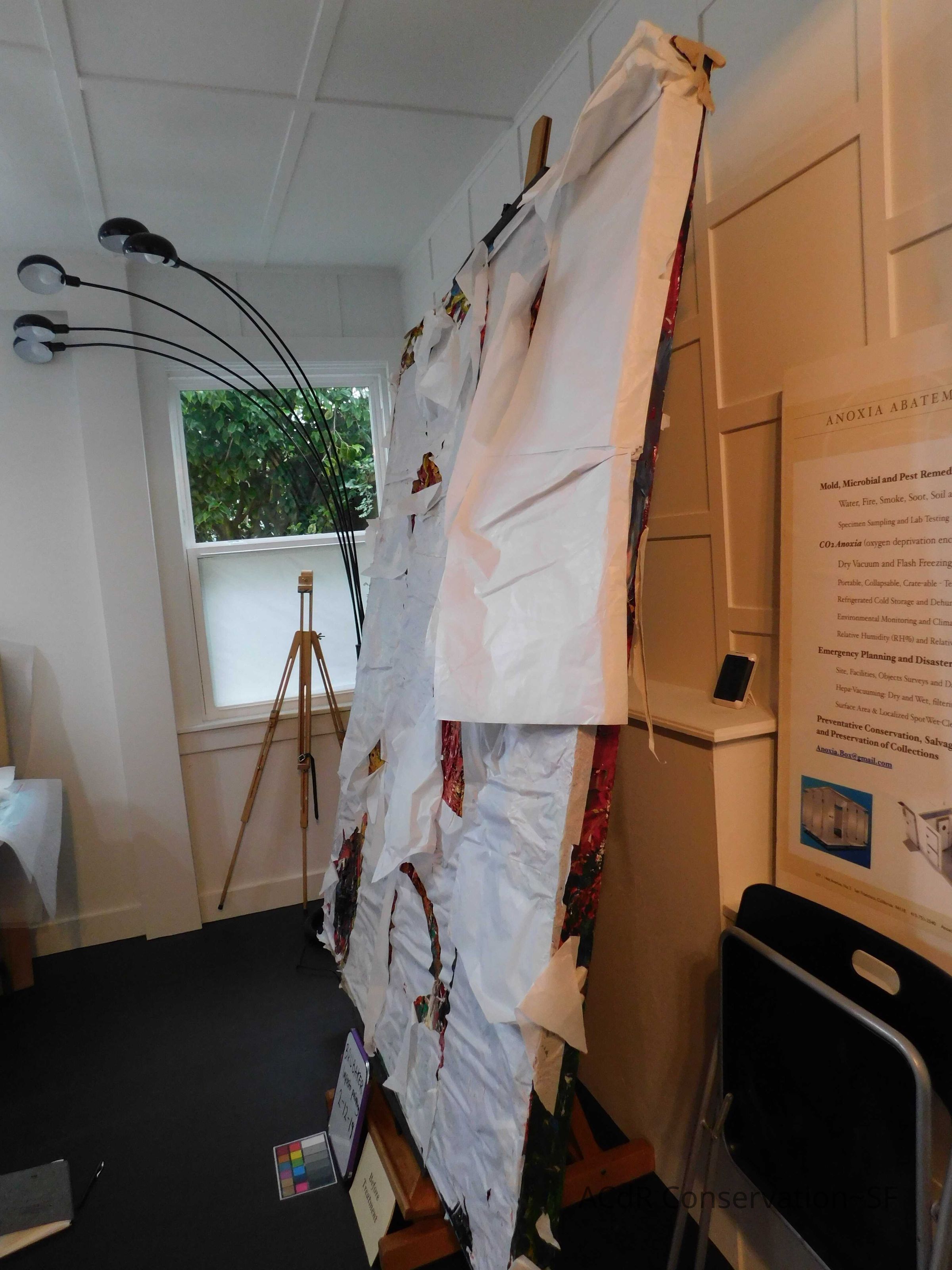 Removed lint with air compressor. Prepared collar paneled with Tyvek. Packed the artwork and took “After Treatment” photos.
