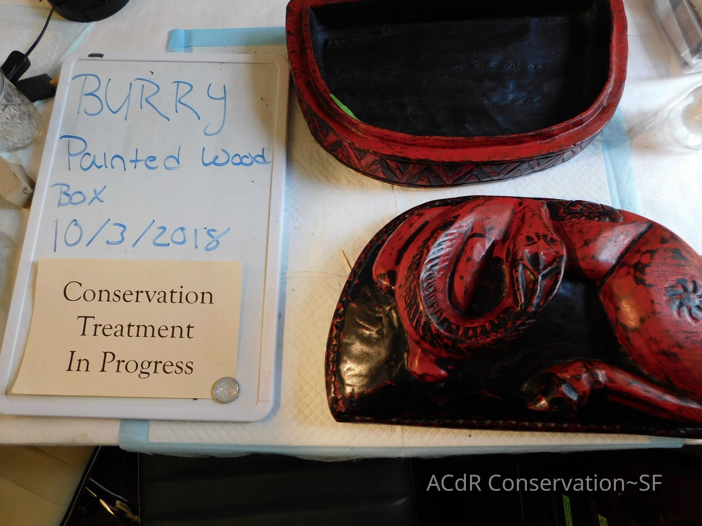 Project Gallery Go back Horse Box with Lid Object/Artifact PDF Viewer Close × Profile Viewer Close × ConservationConservation PurposeDisaster RecoveryTreatmentAcute TreatmentGeneral CleaningDate(s)Sep 17, 2018