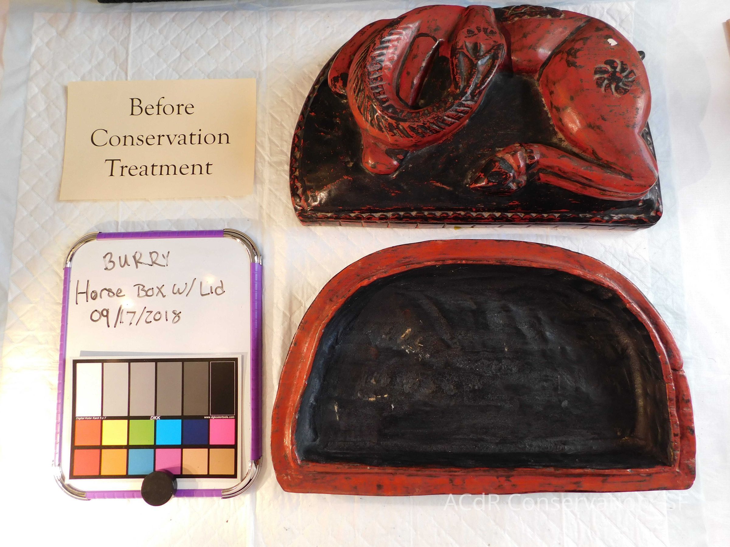 Horse Box with Lid Object/Artifact PDF Viewer Close × Profile Viewer Close × ConservationConservation PurposeDisaster RecoveryTreatmentAcute TreatmentGeneral CleaningDate(s)Sep 17, 2018
