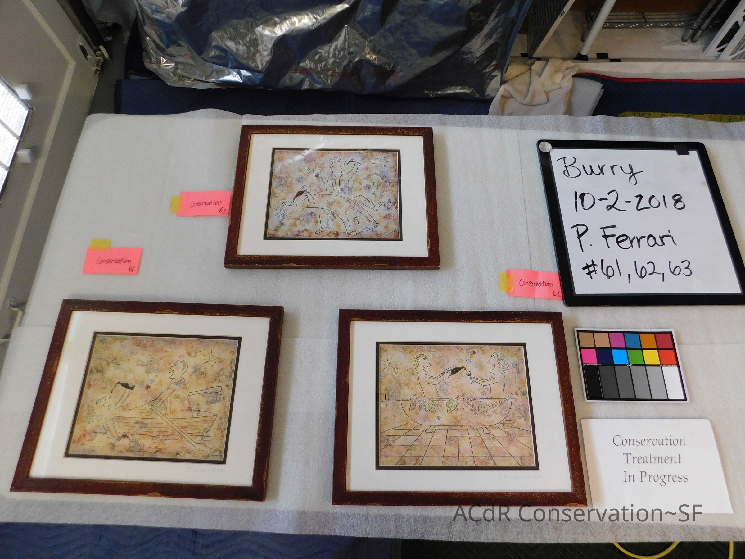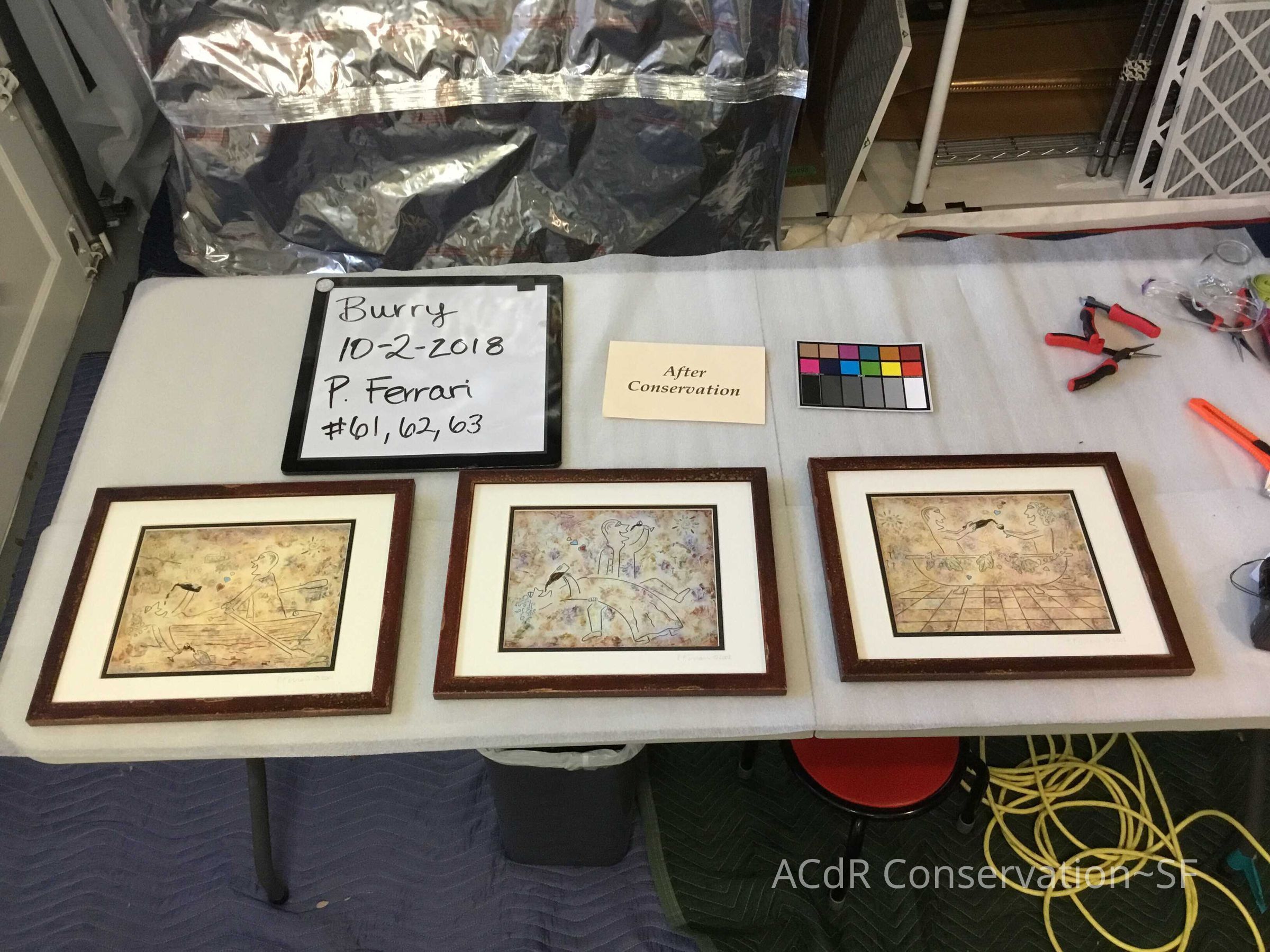P. Ferrari drawn figures Print Description Set of 3 framed prints PDF Viewer Close × Profile Viewer Close × Entry/Object ID#61, 62, 63ConservationConservation PurposeDisaster RecoveryTreatmentAcute TreatmentCO2 AnoxiaDate(s)Jul 10, 2018 - Aug 23, 2018Acute TreatmentGeneral CleaningDate(s)Oct 2, 2018