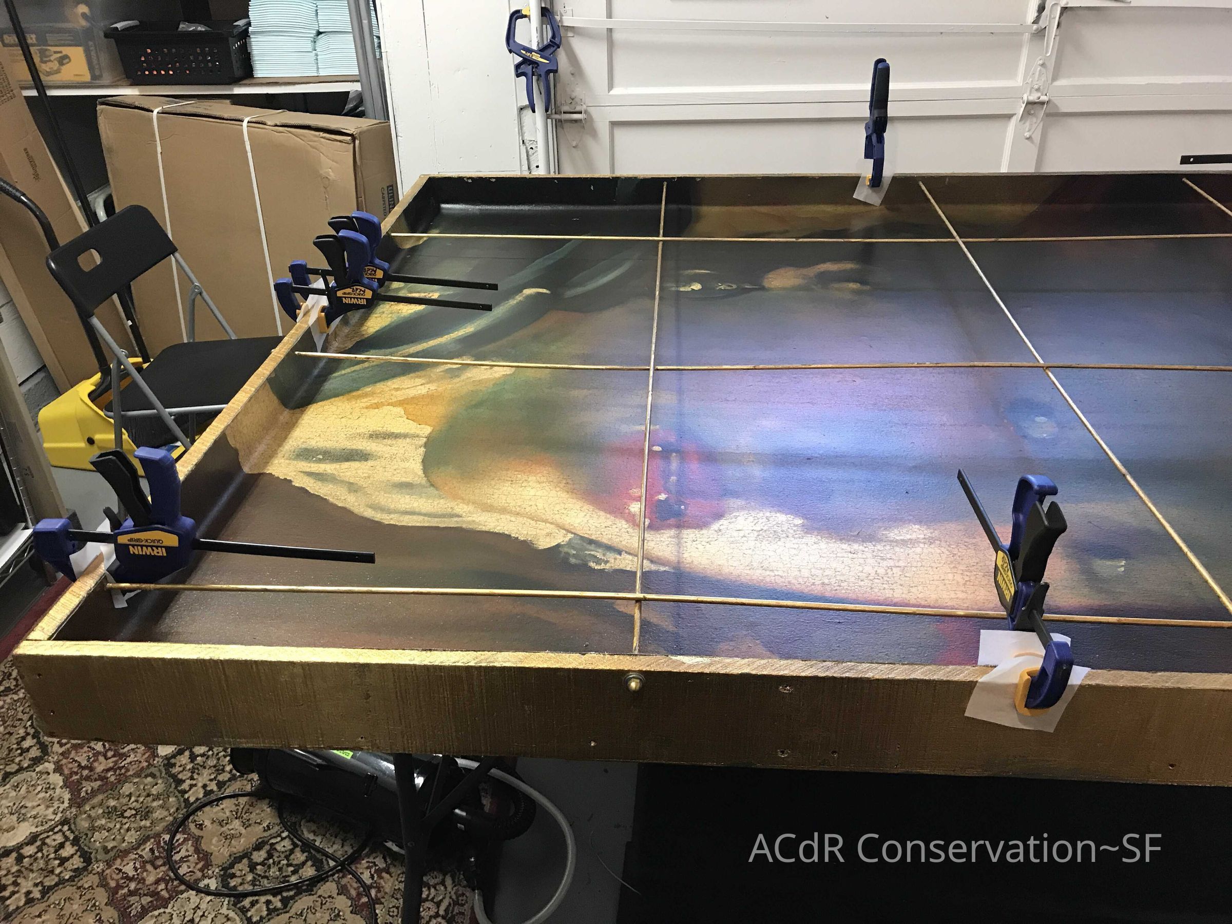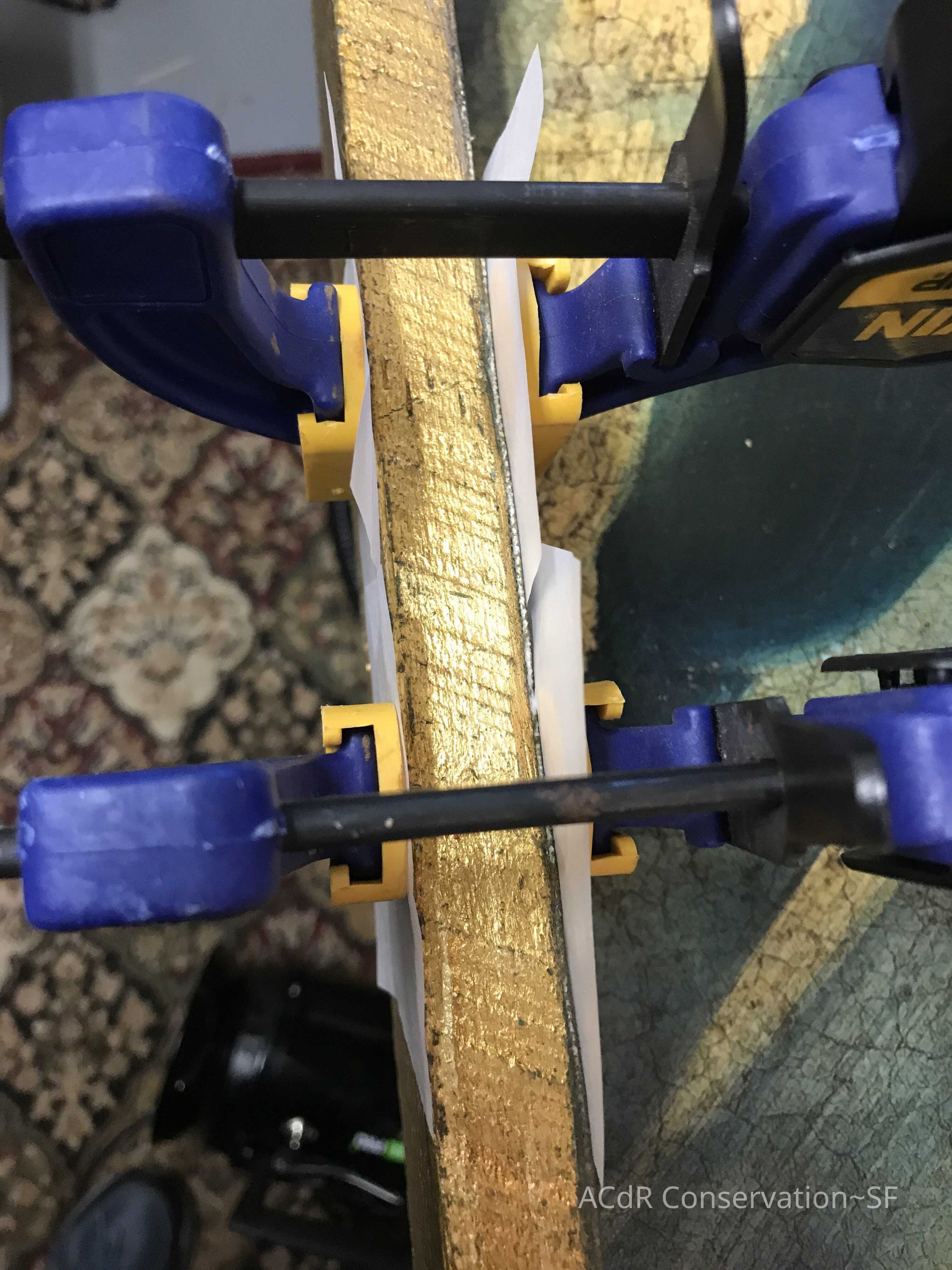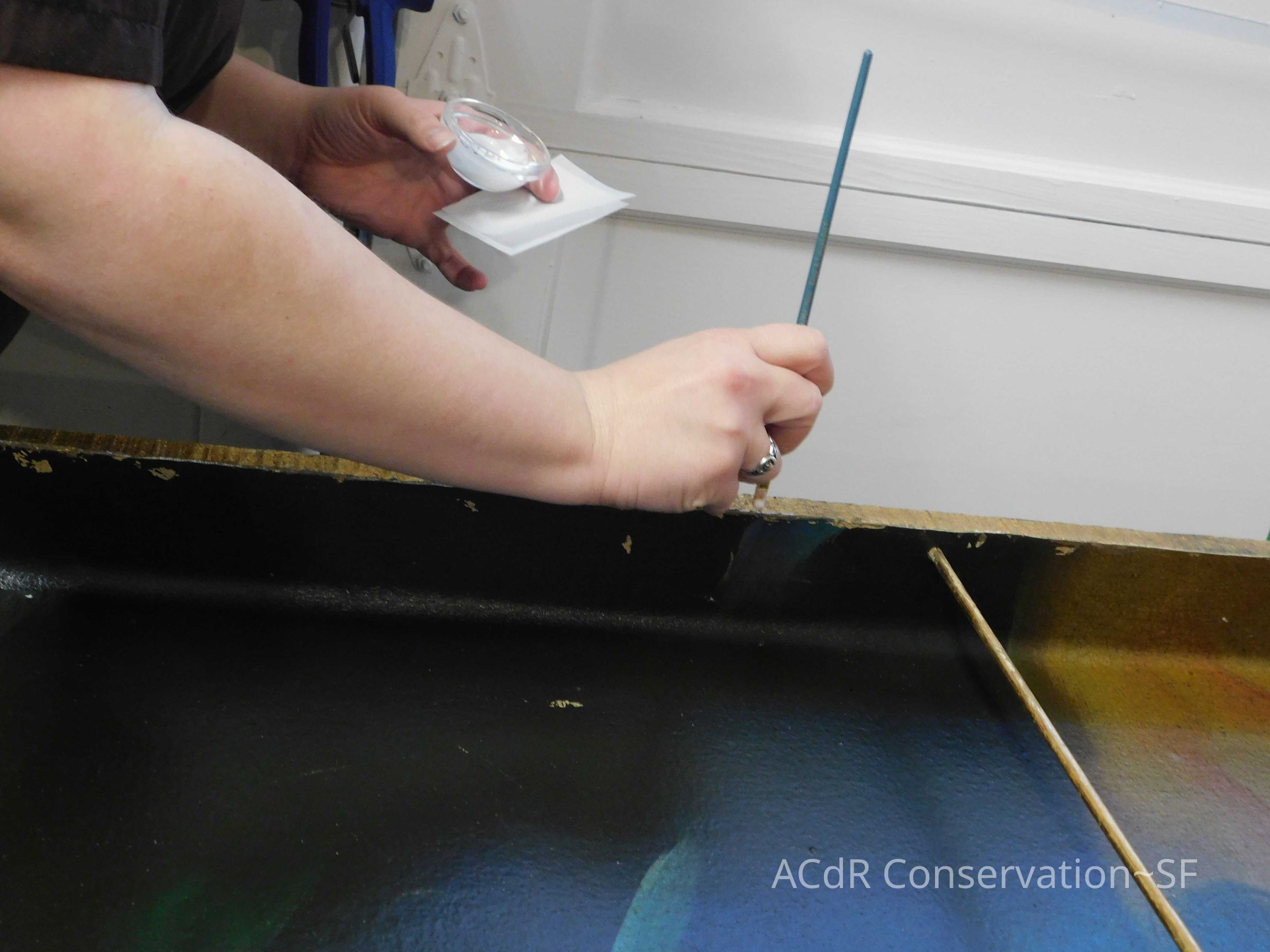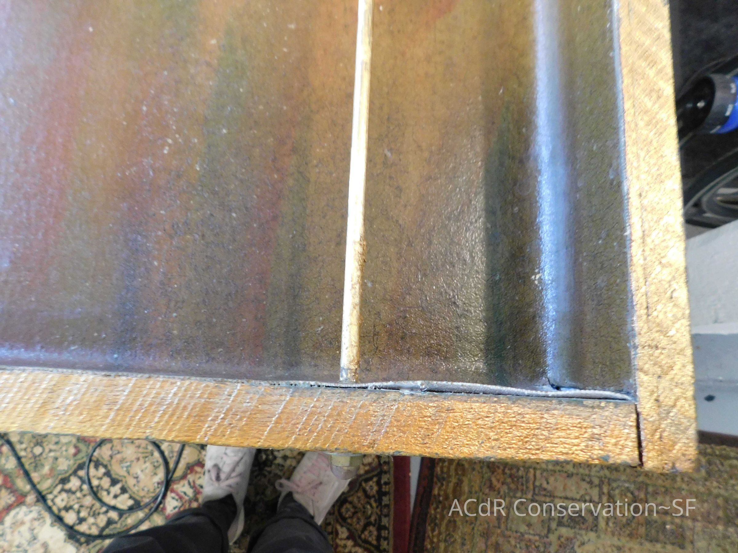 Project Gallery Go back The Gilded Cage Painting PDF Viewer Close × Profile Viewer Close × Entry/Object ID#28ConservationConservation PurposeDisaster RecoveryTreatmentAcute TreatmentHepa-VacuumDate(s)Nov 20, 2018Acute TreatmentGeneral CleaningDate(s)Nov 20, 2018Acute TreatmentStabilizationDate(s)Nov 26, 2018Treatment NotesRe-adhere painted surface with Jade R. Clamped to dry.
