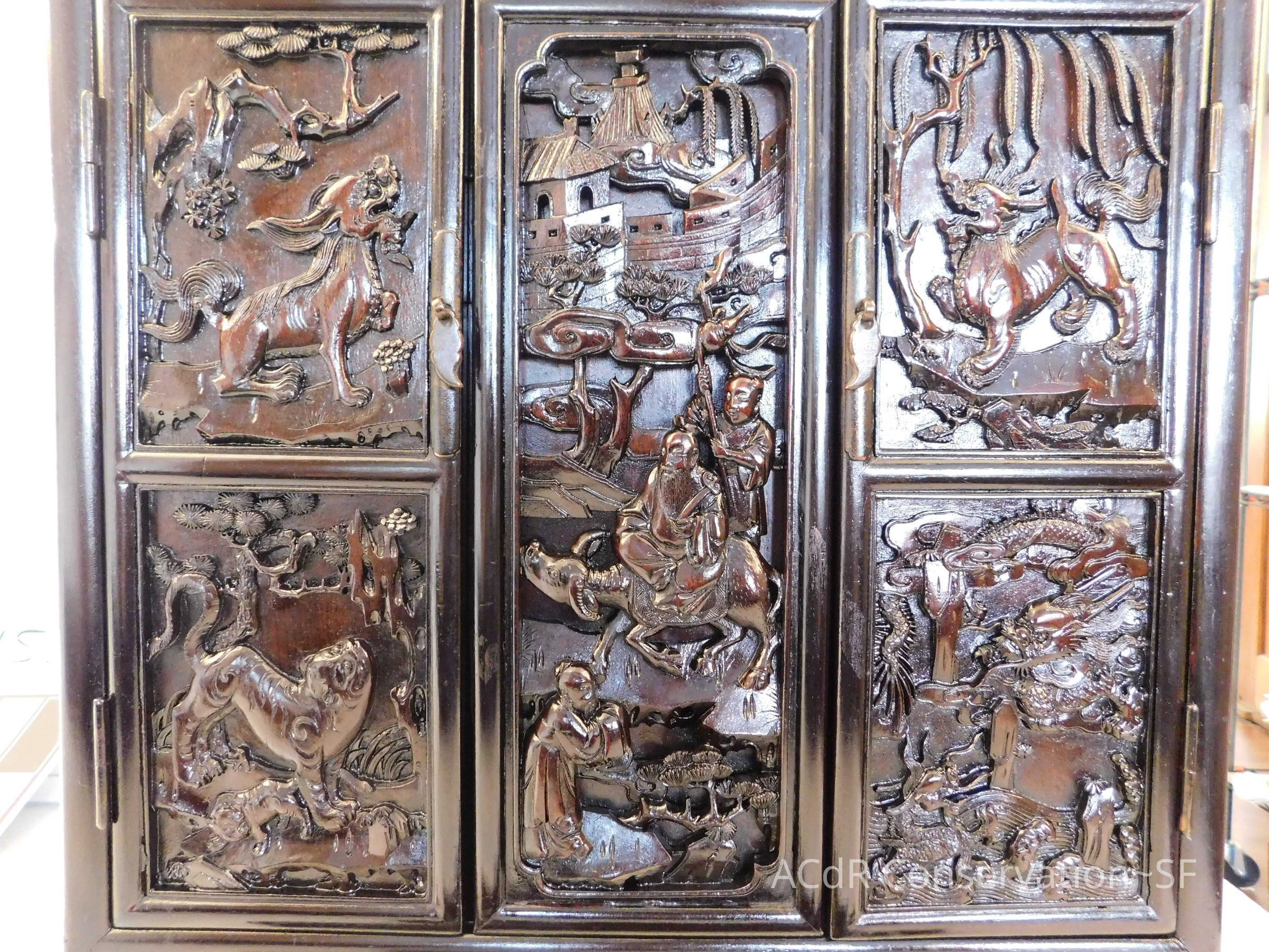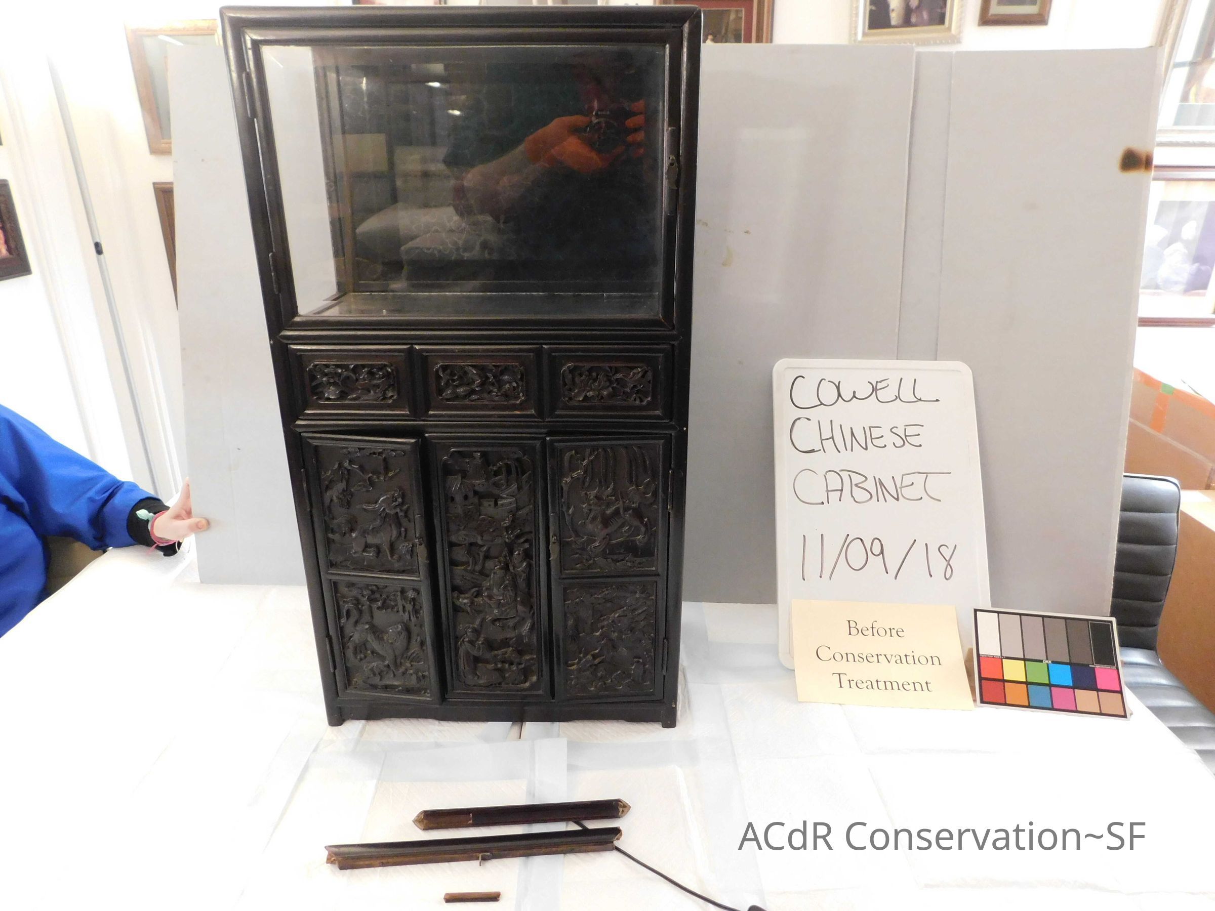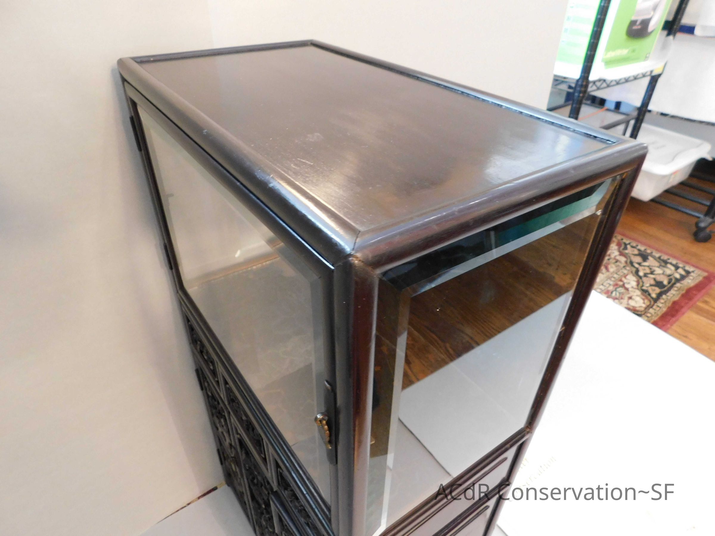 Reattached top bar of cabinet and glued in place. Filled with wood putty.