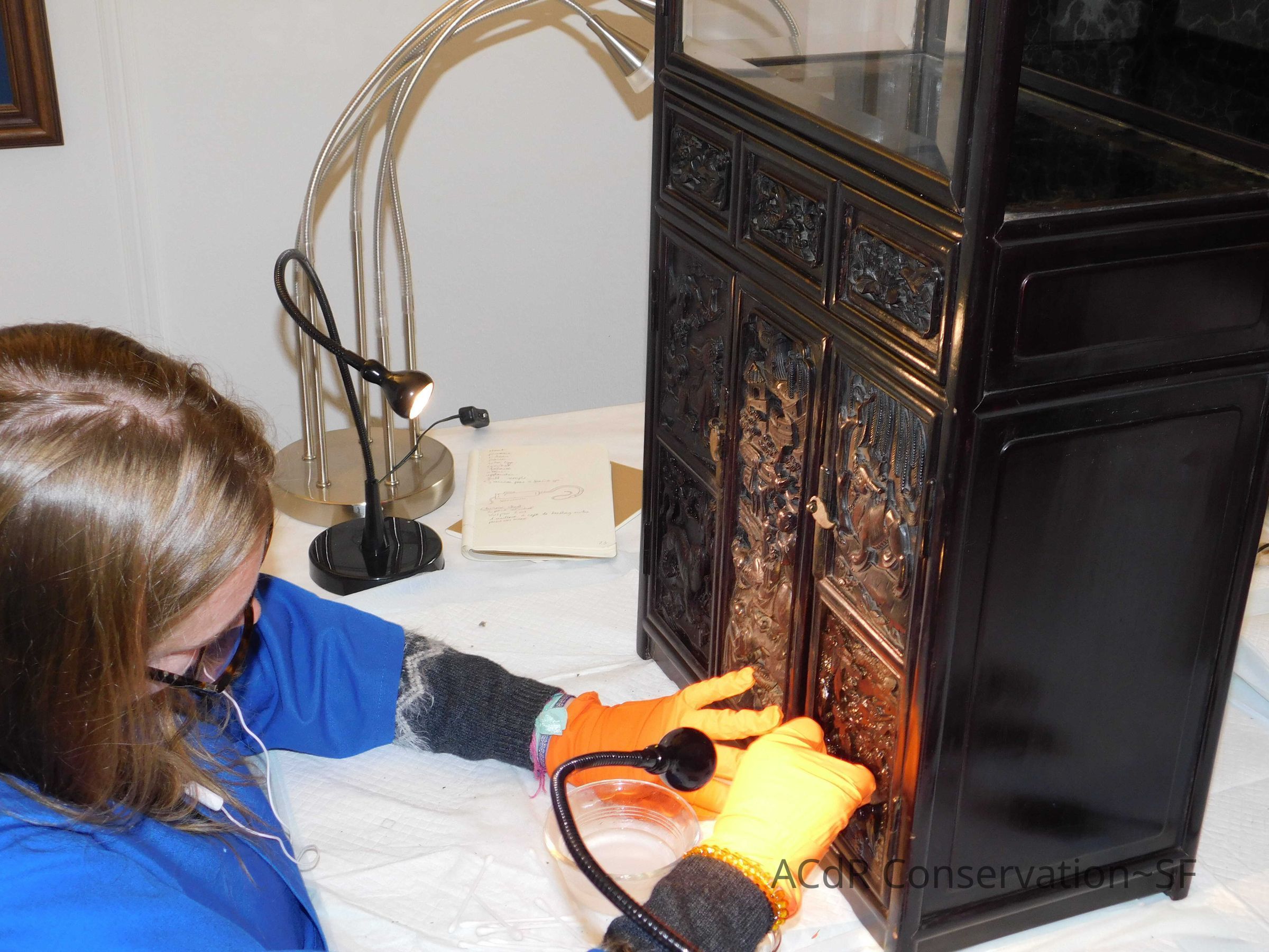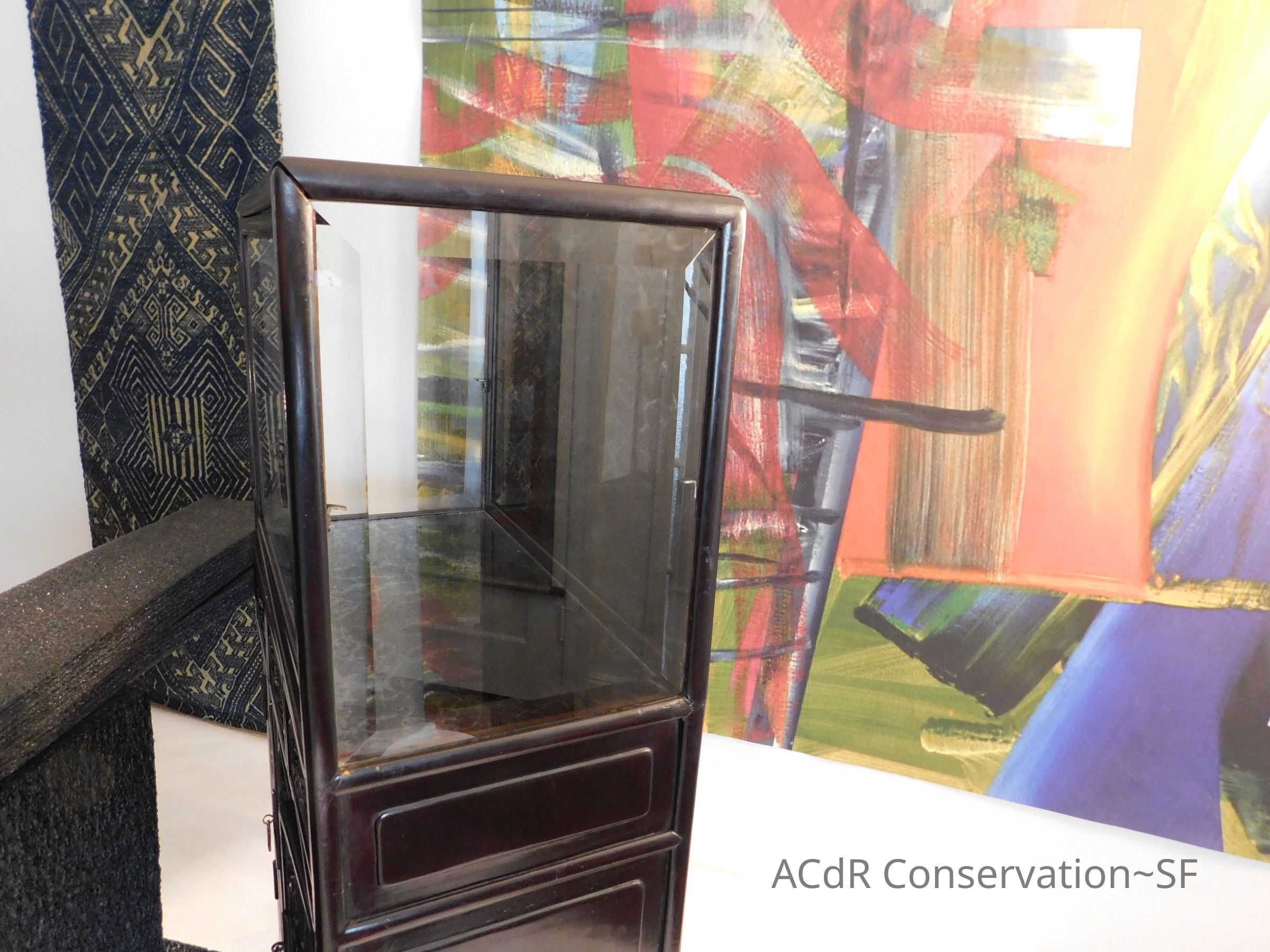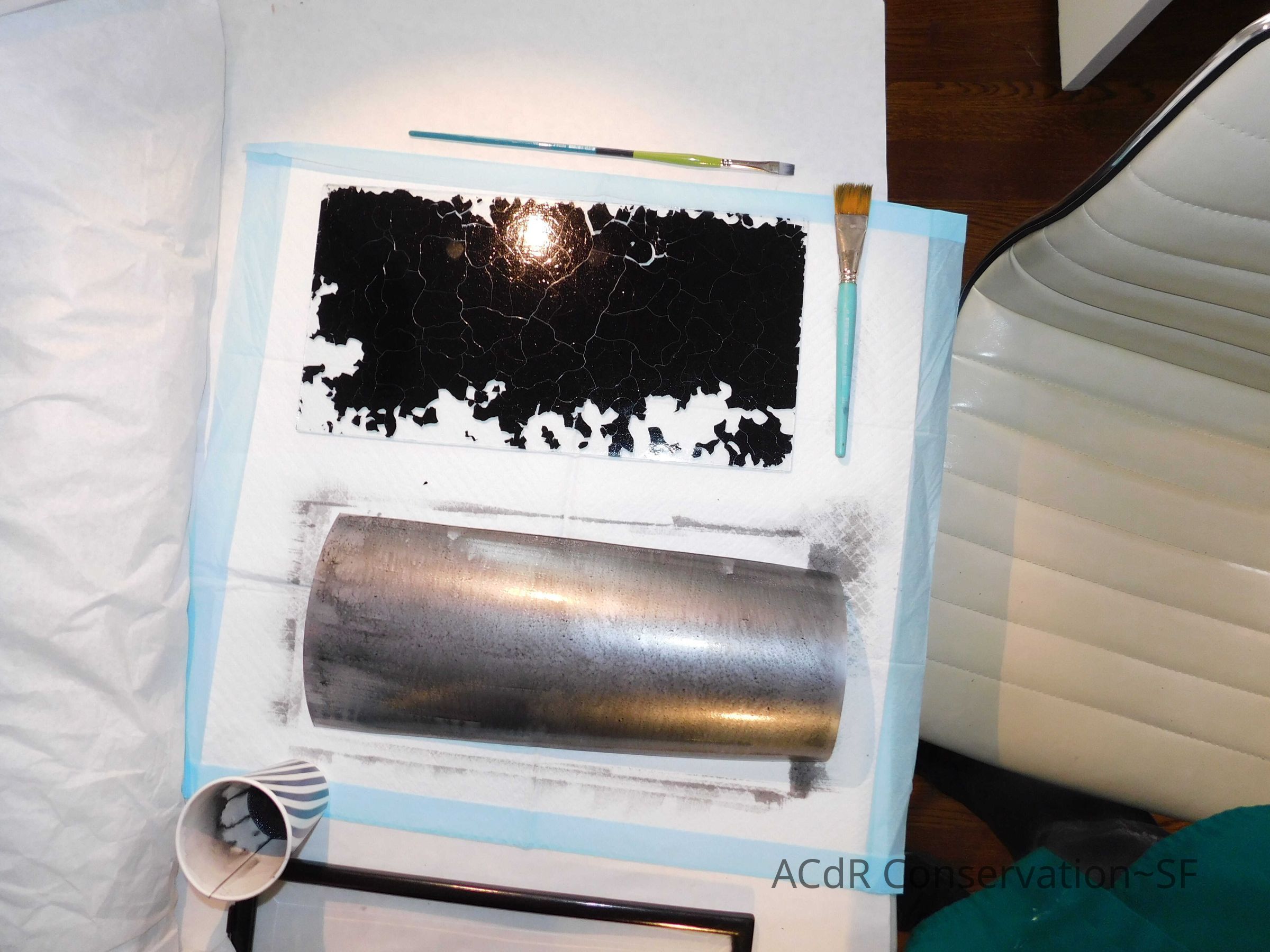 Coated reverse of glass in UVS Beva Gloss varnish to consolidate mirror
