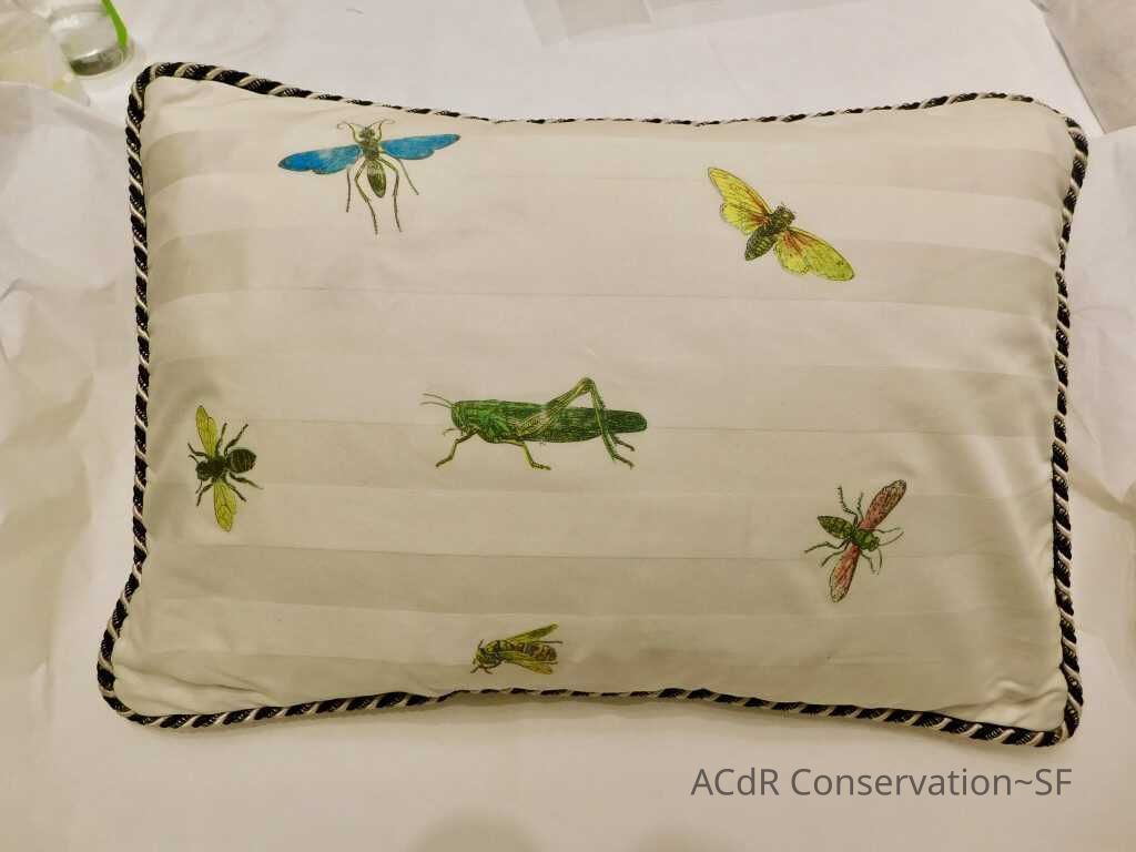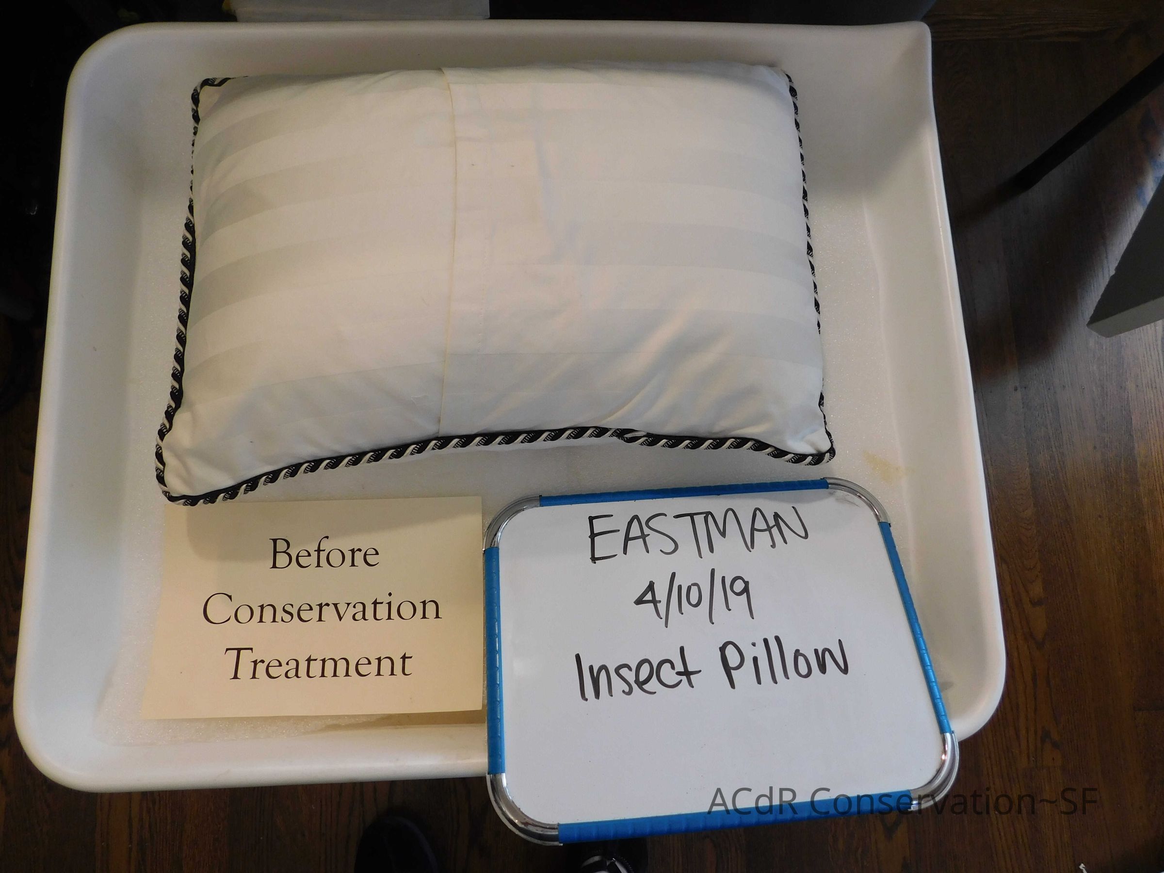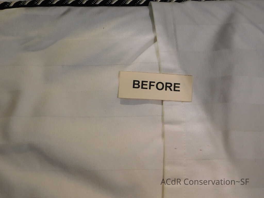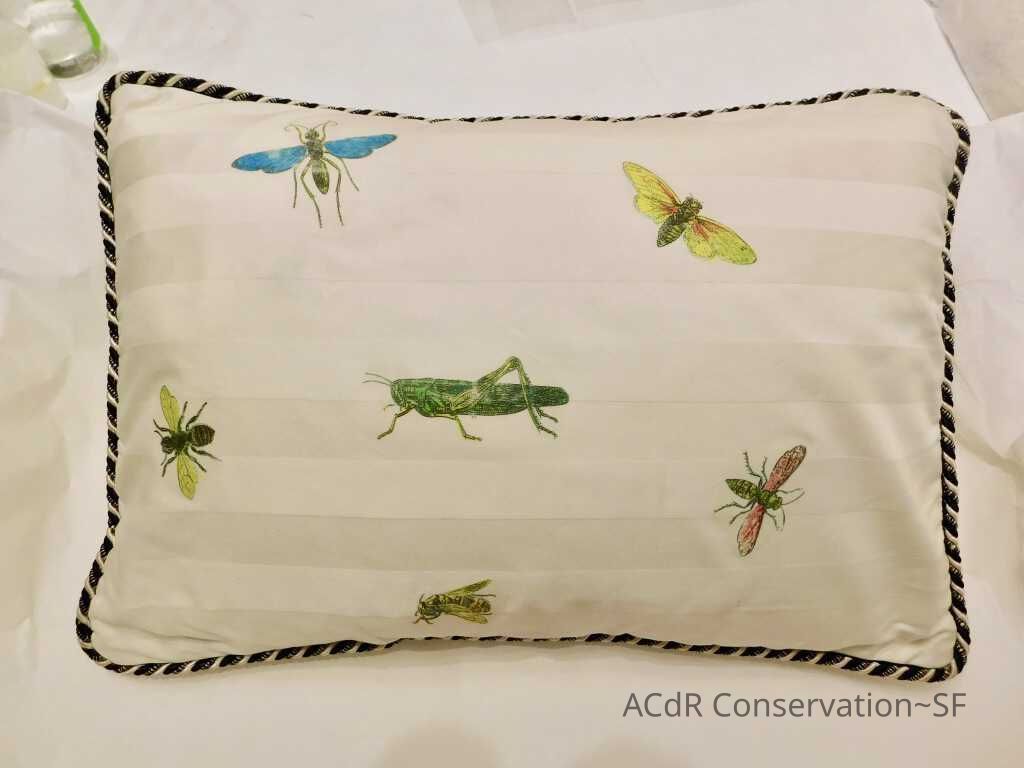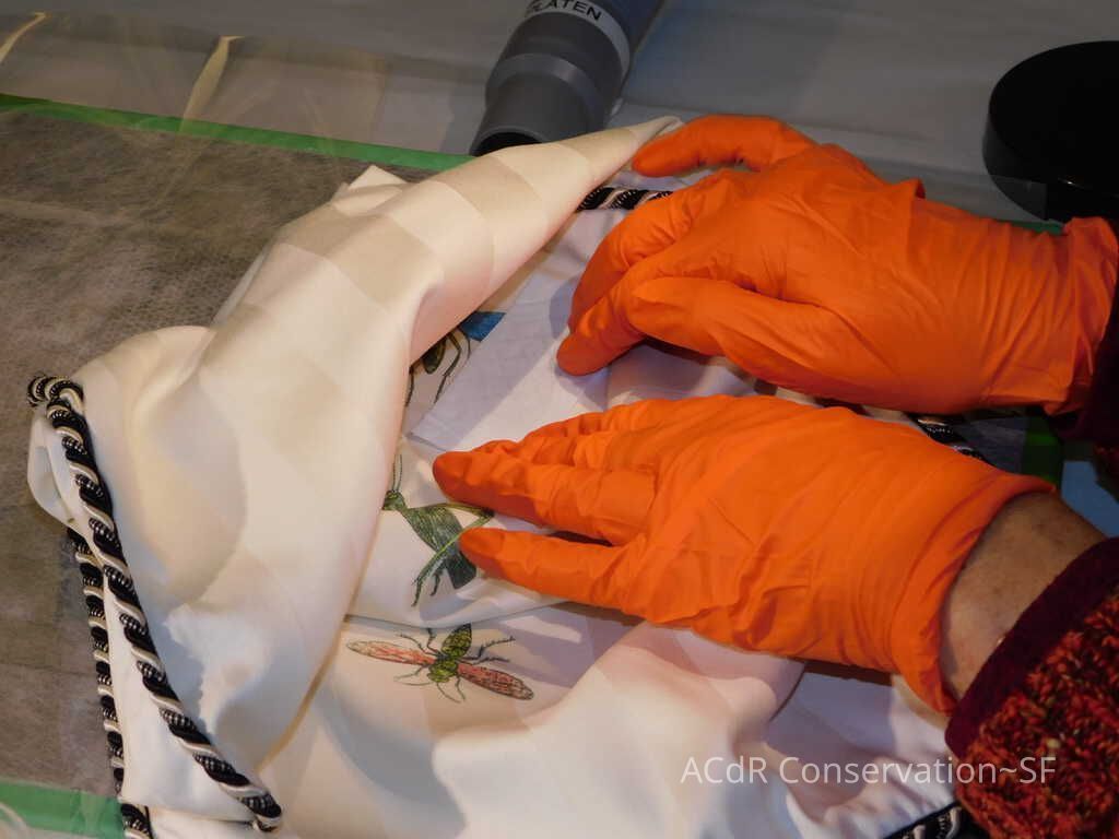 Insect Pillow Textile PDF Viewer Close × Profile Viewer Close × ConditionOverall ConditionVery GoodCondition AssessmentStainsFoxingDate ExaminedApr 16, 2019Examined ByAbby WangConservationConservation PurposeCleaningTreatmentAcute TreatmentHepa-VacuumDate(s)Nov 14, 2019Treatment NotesVacuumedAcute TreatmentWet-CleanDate(s)Nov 14, 2019Treatment NotesSpot cleaning using suction platten. Bleach gel + 1:1 Isopropyl alcohol and distilled water + Cyclomethicone. Applied Cyclomethicone over bug embroidery