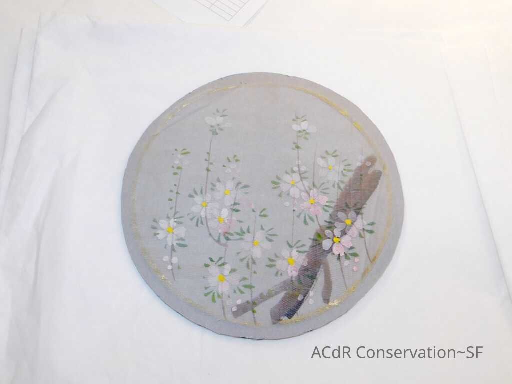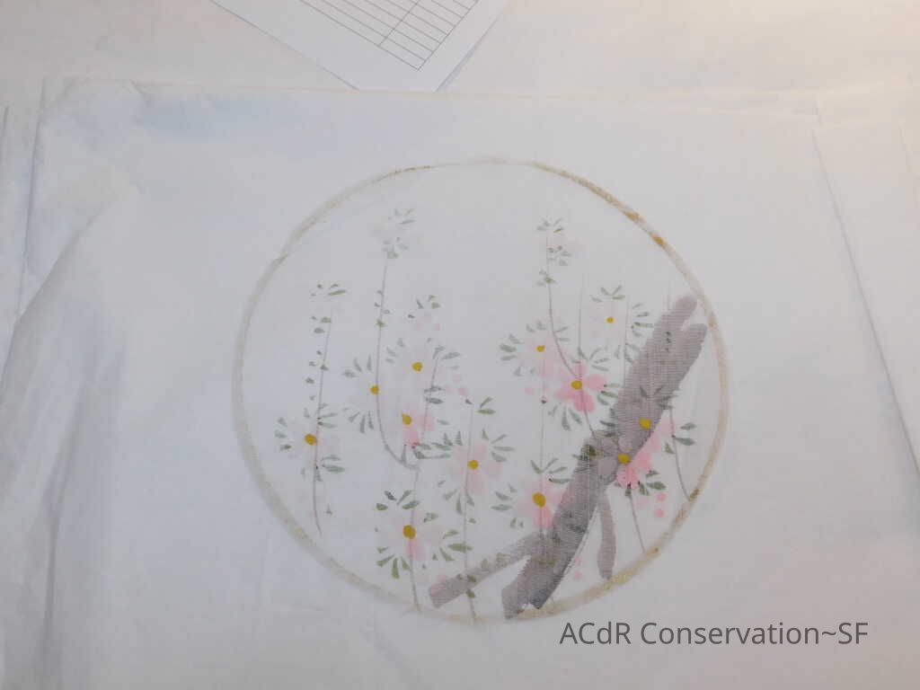 Project Gallery Go back Chinese Fan Scrim Object/Artifact PDF Viewer Close × Profile Viewer Close × ConditionCondition AssessmentFrayed / FrayingLiftingNotesLoss of silk around the edge; varying amount of folding and creasing over surface