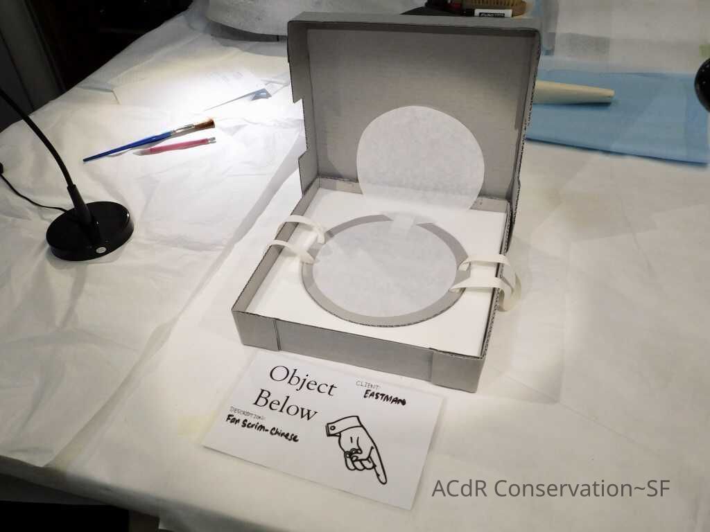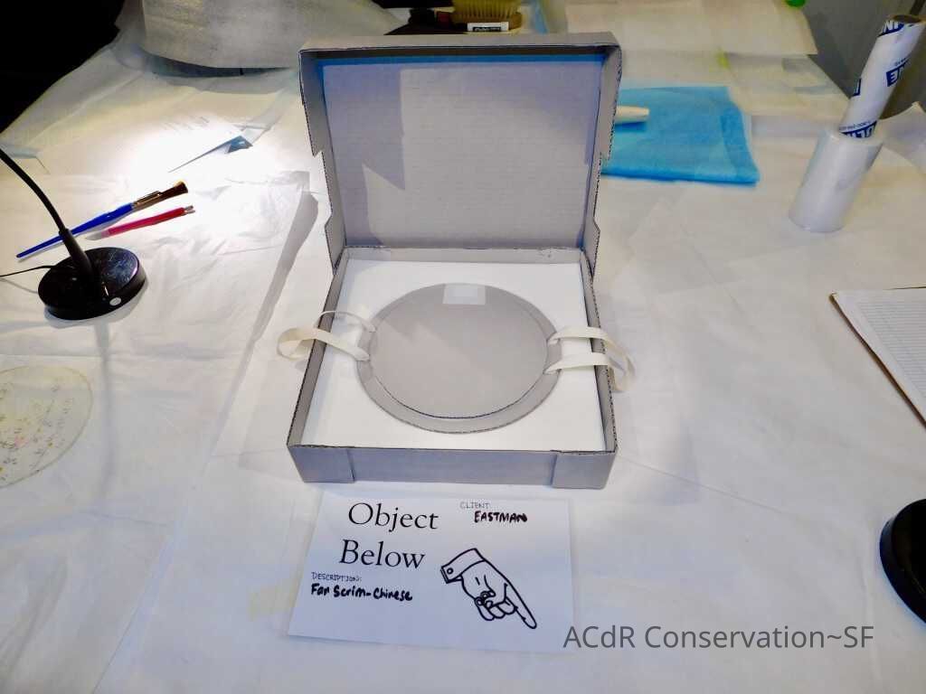 Chinese Fan Scrim Object/Artifact PDF Viewer Close × Profile Viewer Close × ConditionCondition AssessmentFrayed / FrayingLiftingNotesLoss of silk around the edge; varying amount of folding and creasing over surface