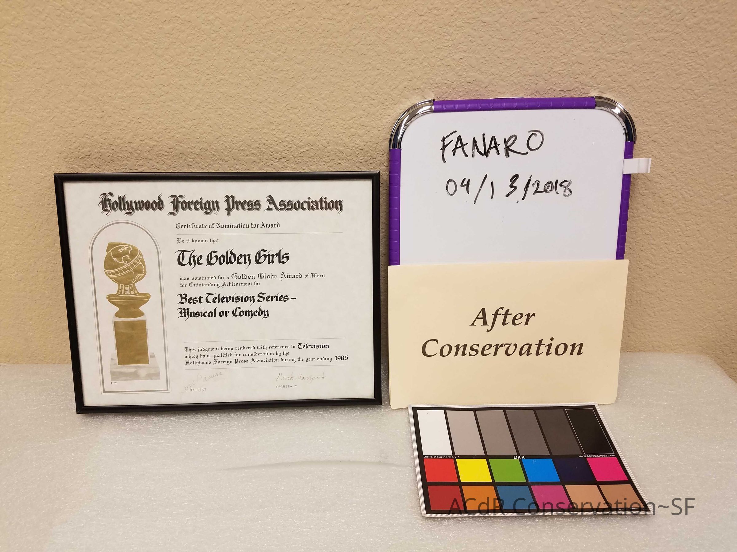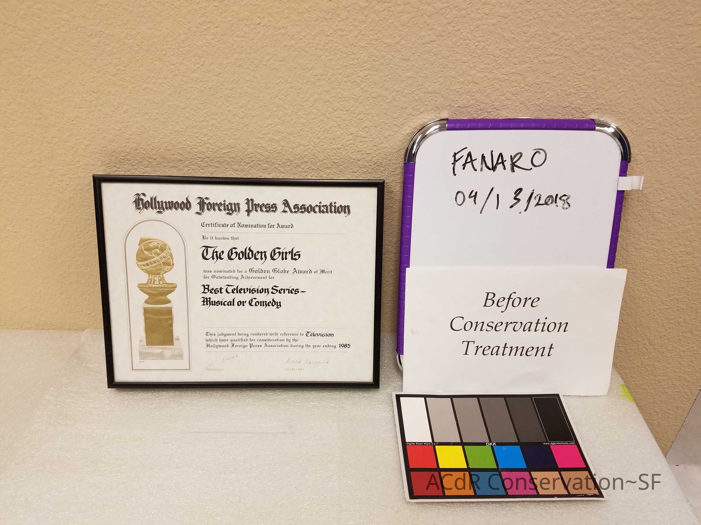 Project Gallery Go back Hollywood foreign press association Object/Artifact PDF Viewer Close × Profile Viewer Close × ConservationConservation PurposeDisaster RecoveryTreatmentAcute TreatmentGeneral CleaningDate(s)Apr 13, 2018