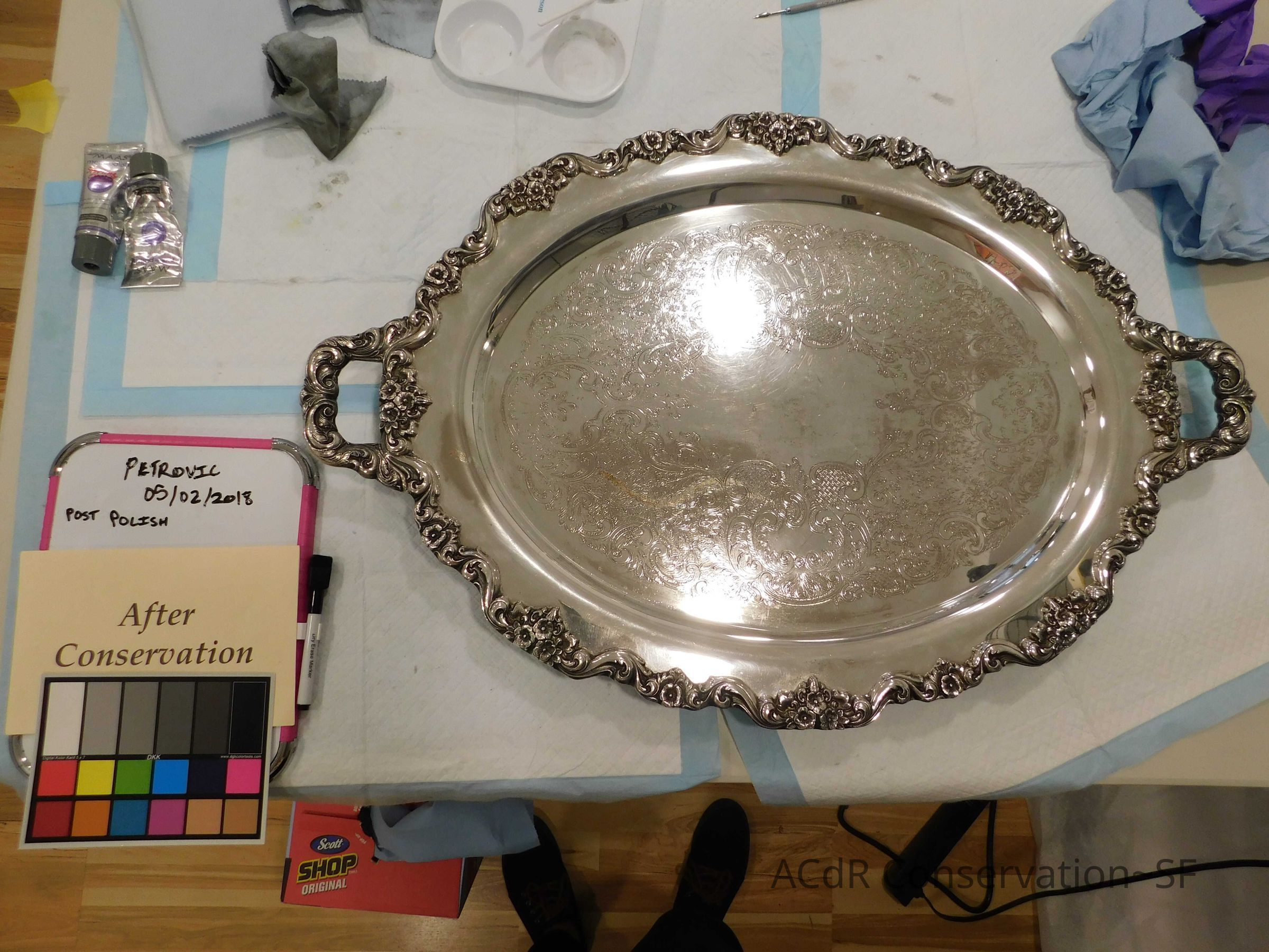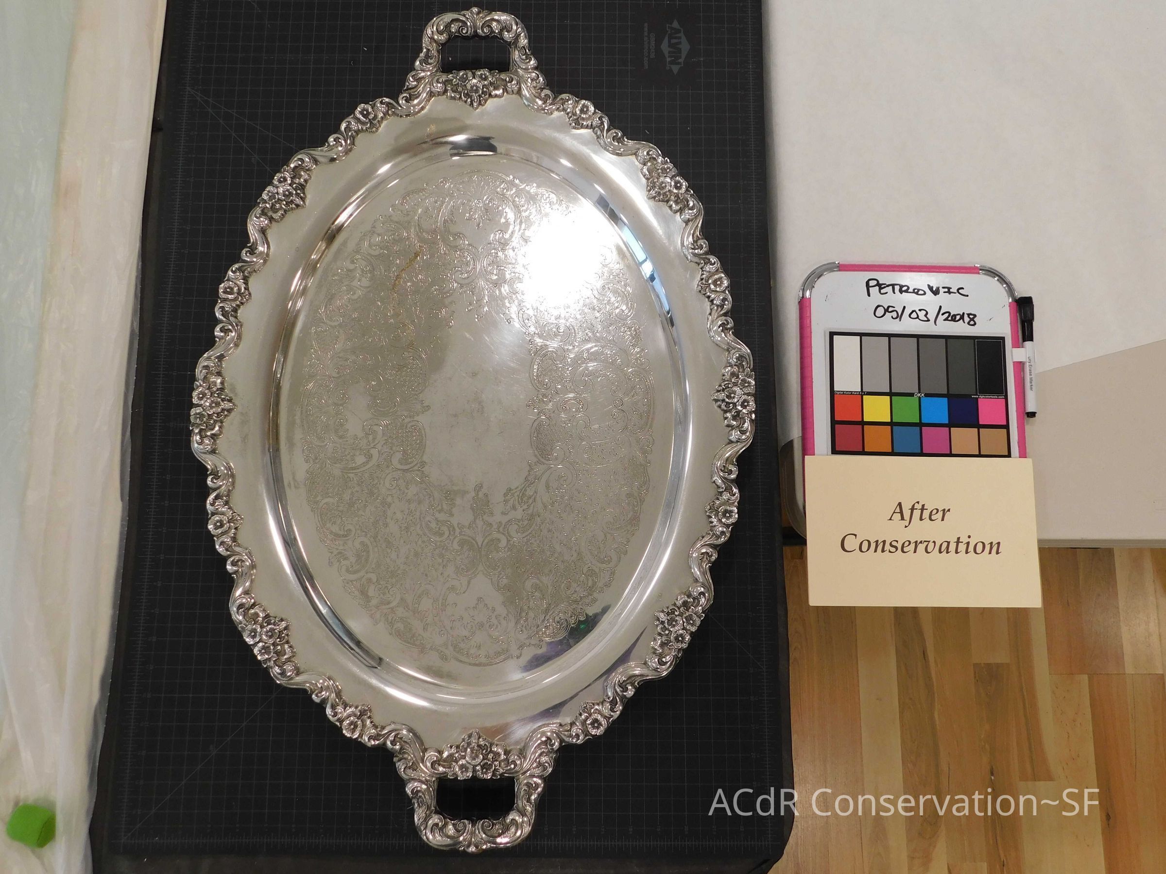 Silver Tray Object/Artifact PDF Viewer Close × Profile Viewer Close × ConservationConservation PurposeDisaster RecoveryTreatmentAcute TreatmentSurface CleanDate(s)May 1, 2018 - May 3, 2018