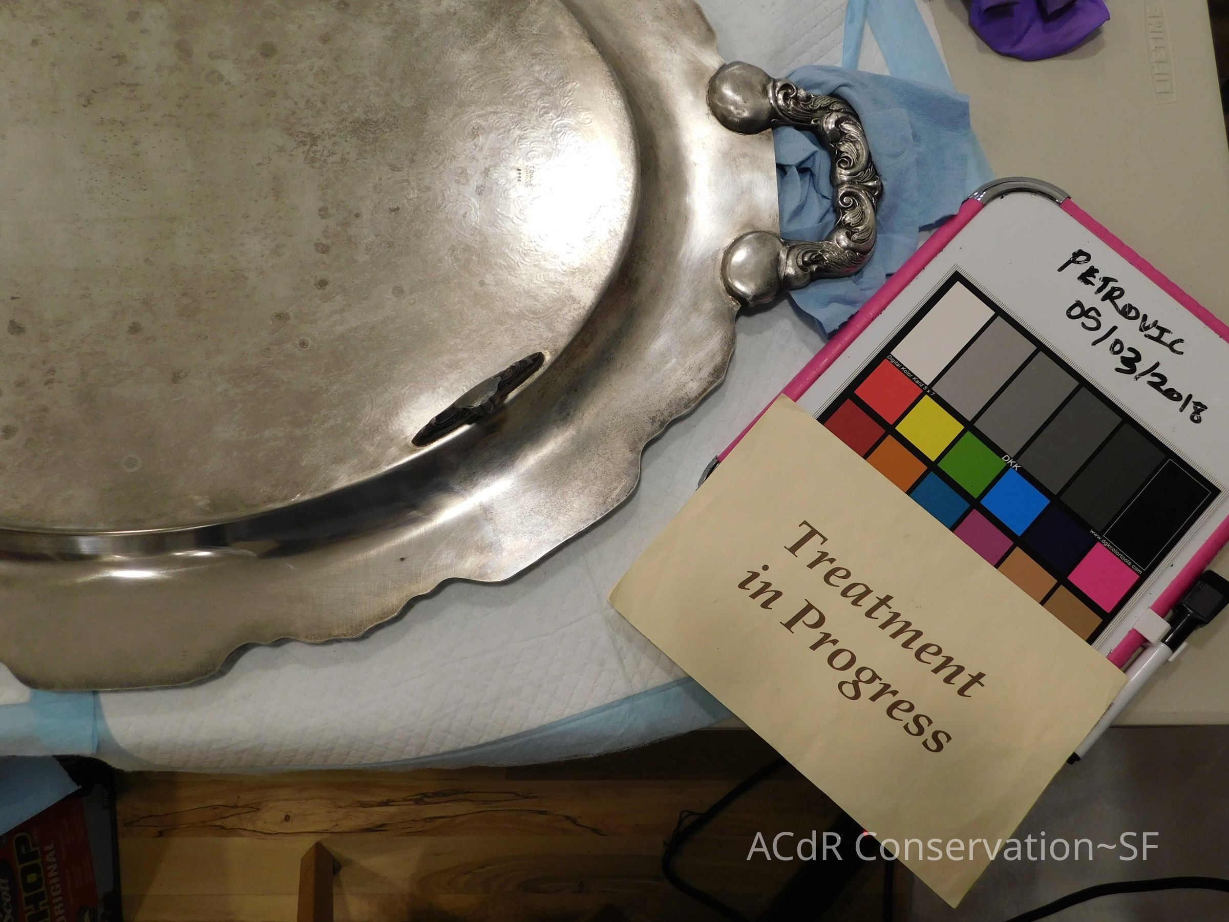 Project Gallery Go back Silver Tray Object/Artifact PDF Viewer Close × Profile Viewer Close × ConservationConservation PurposeDisaster RecoveryTreatmentAcute TreatmentSurface CleanDate(s)May 1, 2018 - May 3, 2018